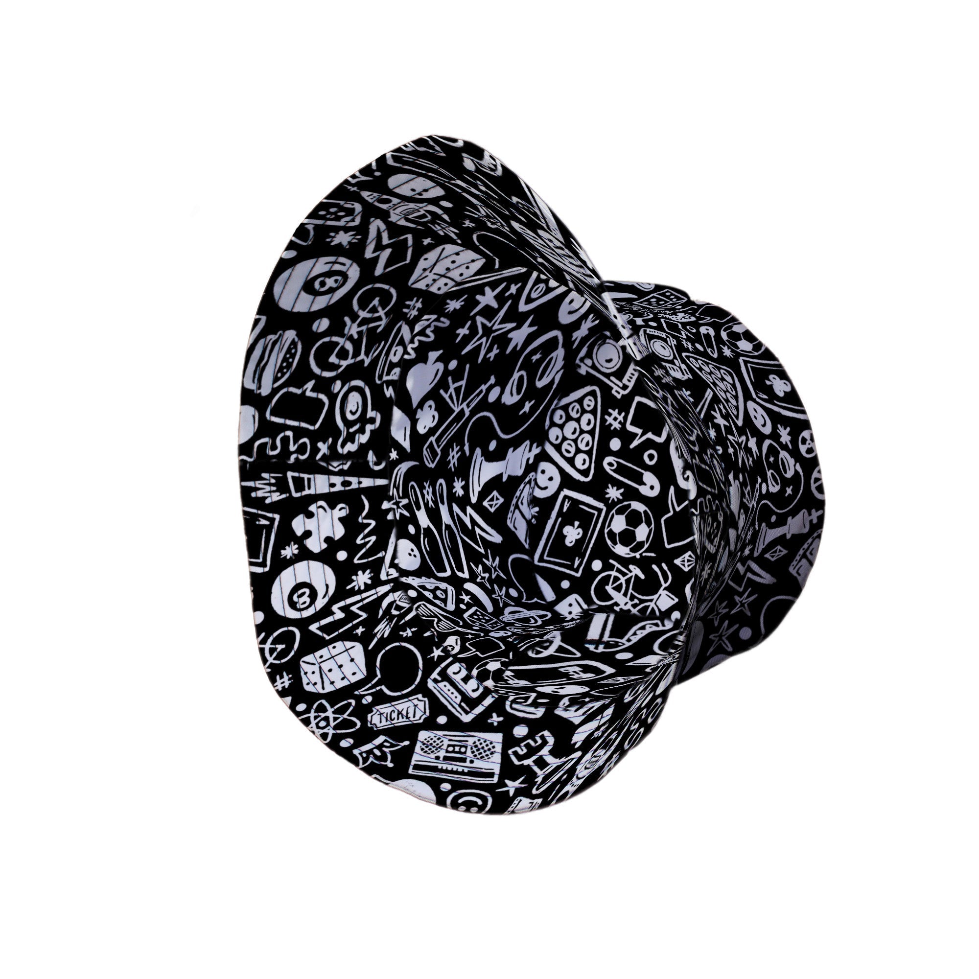 The Nerdy Doodles Black Bucket Hat turns everyday shade into a fandom mashup. A field of crisp, hand-drawn doodles spans board games, Dnd and rpg, outer space, science, and retro arcade motifs, all-over and uninterrupted. Designed by Zirkus Design and artist-backed, it flips inside-out with the same print, packs flat for quests, and delivers easy, breezy coverage with geek swagger.