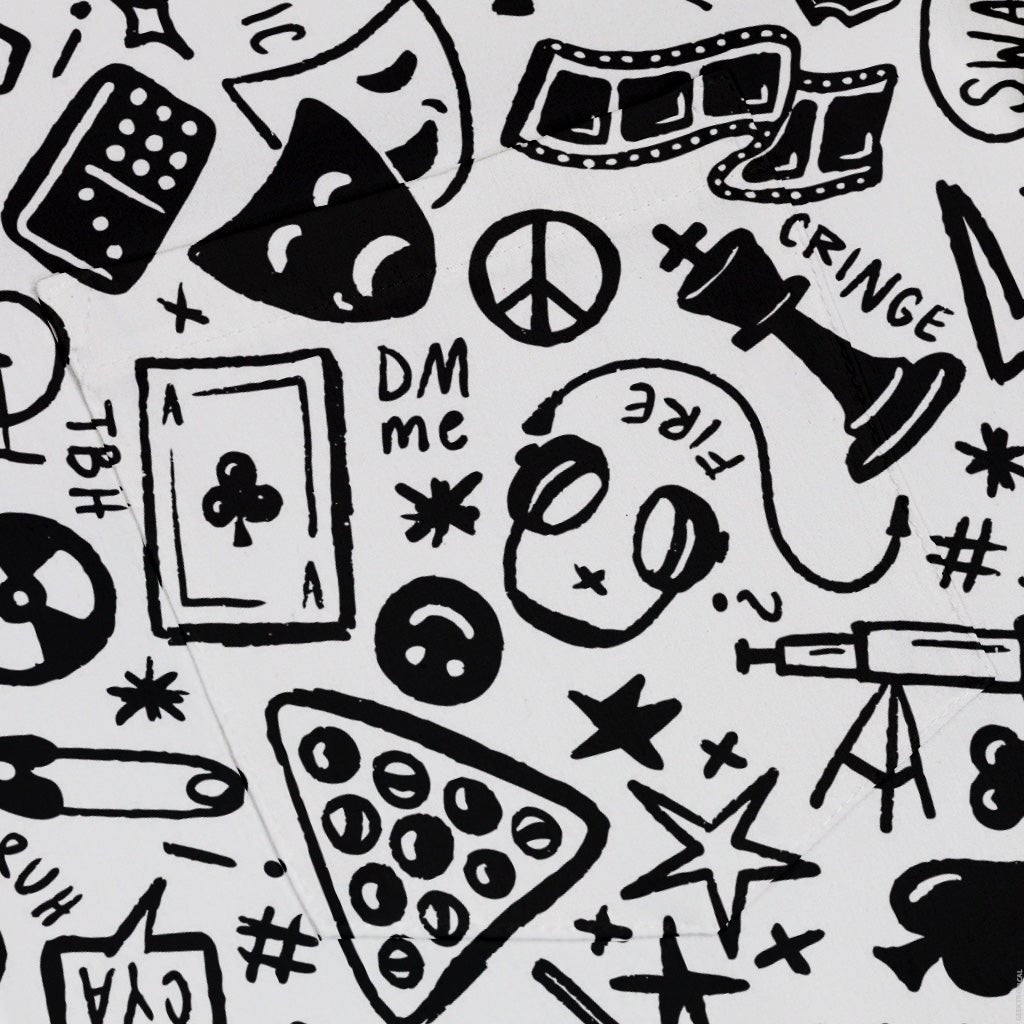 Nerdy Doodles Swag Button Up Shirt is your wearable mash-up of everything you geek out about. An all-over collage of hand-drawn doodles riffs on board games, Dnd, retro arcades, science, and deep-space exploration, rendered as a seamless, edge-to-edge print. Designed by Zirkus Design, it’s an artist-backed statement layer for game night, casual Fridays, and any quest between.