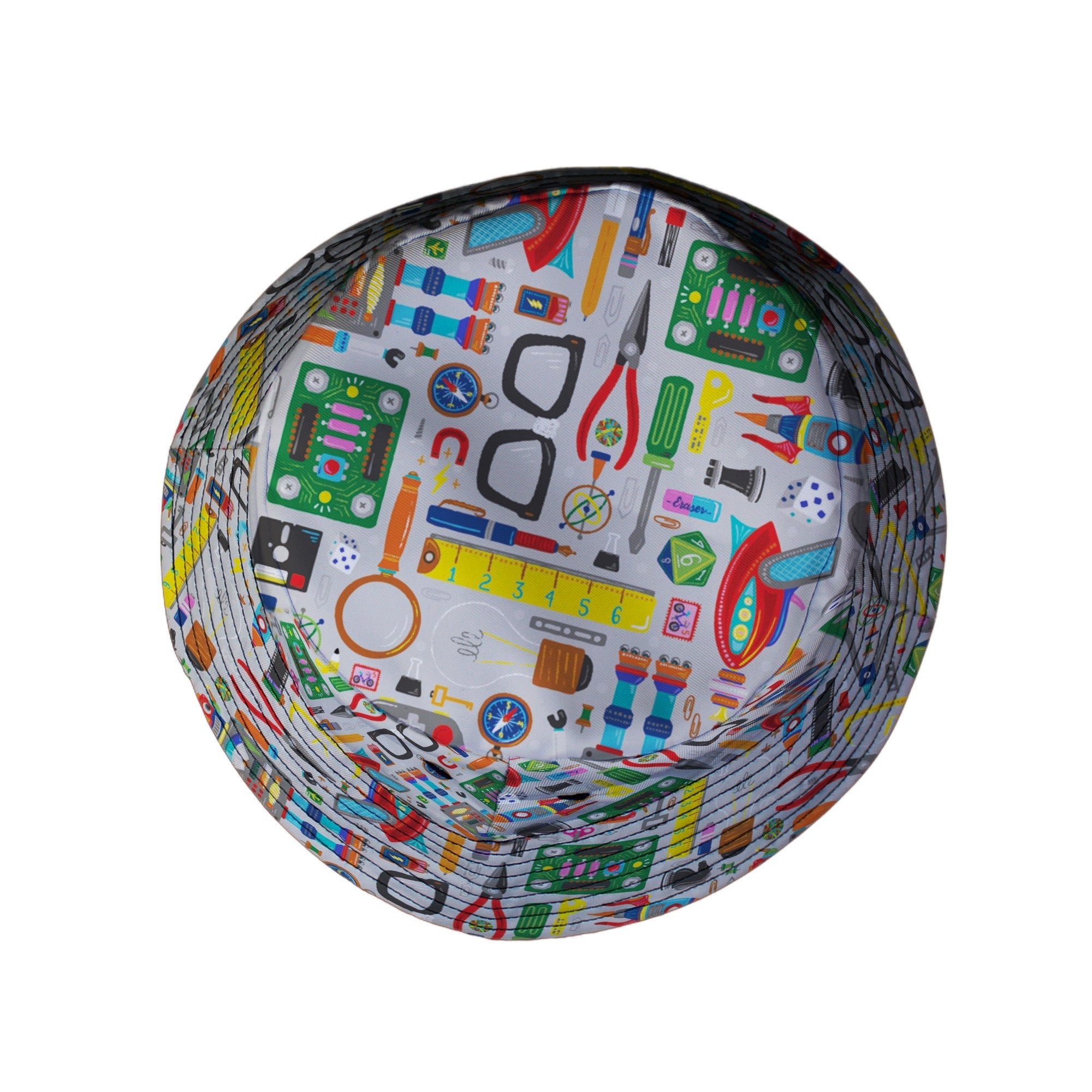 Meet the Nerdy Toys Bucket Hat, our cheeky ode to playtime across the galaxy and your game shelf. An all-over pattern blends board-game cues, Dnd energy, retro arcade vibes, science sketches, and spacey motifs for a smart, joyful look. Designed by Zirkus Design, it feels breezy and easy to stash in your bag. Artist-backed style that shades your face while broadcasting peak geek.