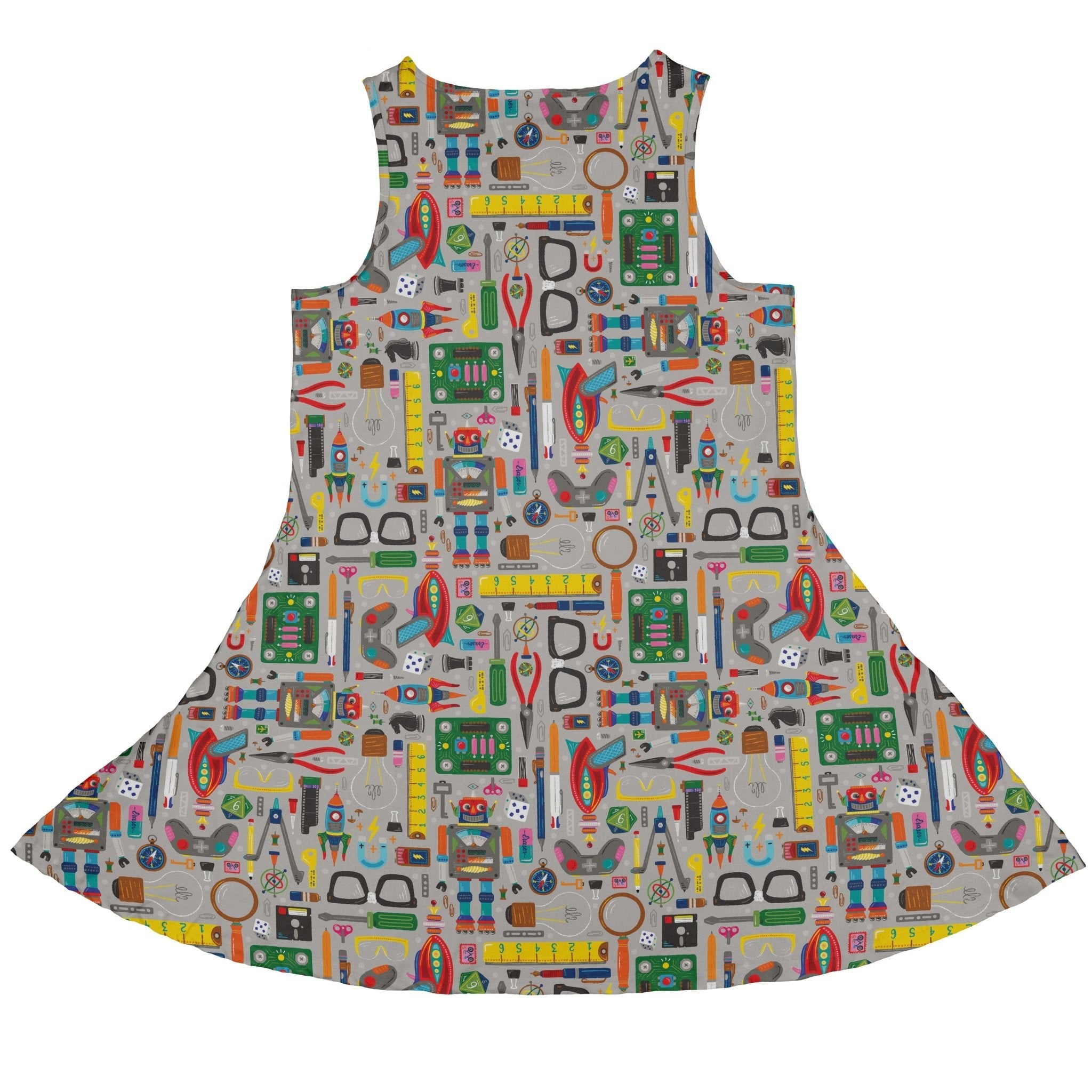 The Nerdy Toys Dress levels up your everyday with an all-over pattern of geek-chic icons—board game cues, Dnd nods, retro arcade vibes, astronauts, and science symbols—arranged in a clean, eye-catching flow. Designed by Zirkus Design for Geek Tropical’s artist-backed collection, it delivers a laid-back, polished look that’s ready for game night, con halls, coffee runs, and any quest that calls for comfort with clever style.