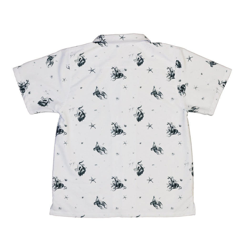 The Octopus Youth Hawaiian Shirt dives into marine-nerd style with a playful deep-sea print designed by Vlad Mel. Curling tentacles with crisp suction-cup detail flow across an aquatic palette, wrapping the whole shirt in cephalopod swagger. The pattern matches cleanly across the front for a seamless look. Airy and comfy for all-day exploring—ideal for budding marine biologists. Printed with eco-conscious inks, and your purchase supports the artist.