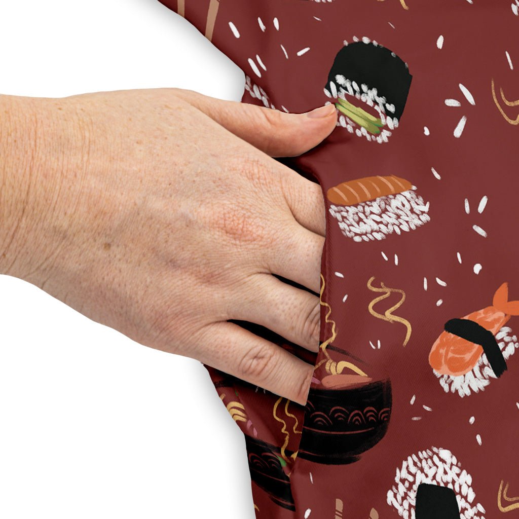 Meet the Oishi Sushi Red Dress, a vibrant nod to your foodie fandom. On a saturated red backdrop, playful sushi motifs march in a clean, graphic repeat with crisp linework and high-contrast details that pop IRL. The silhouette stays laid-back yet polished for everyday quests, and yes—pockets. Artist-backed with anime energy, designed by Claire Murphy to level up coffee runs, con floors, and cozy couch raids.