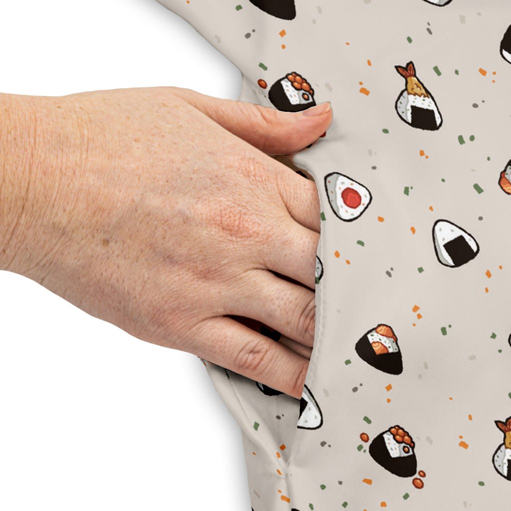 The Onigiri Biege Dress delivers cozy snack-core style for the everyday quest. A warm beige backdrop spotlights an allover onigiri print—clean, high-contrast shapes with unmistakable anime energy. Easy, flattering drape keeps things polished yet low-key. And yes, stealthy side pockets fit your go-to gadget. Designed by Ardi Tong, it’s artist-backed comfort with character.