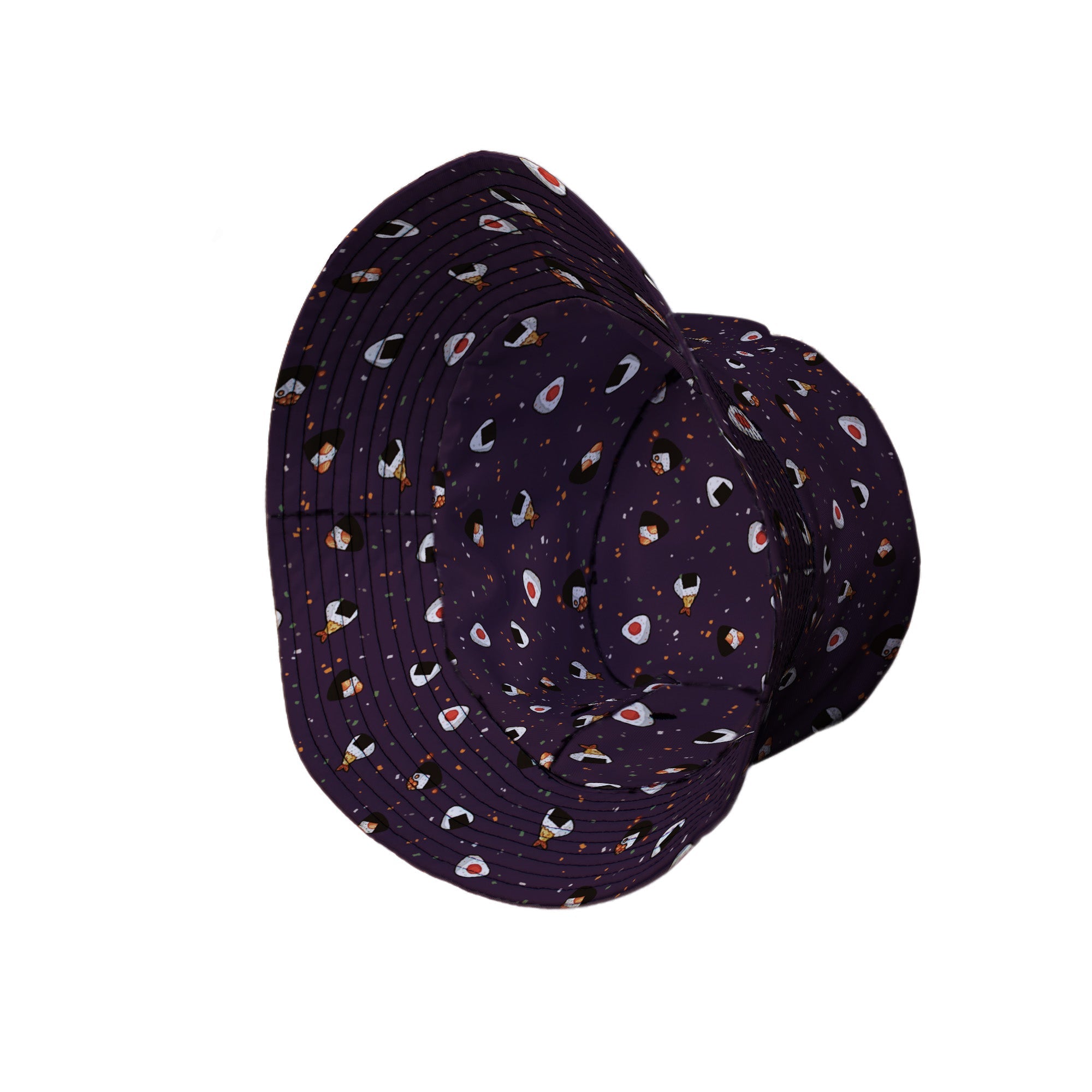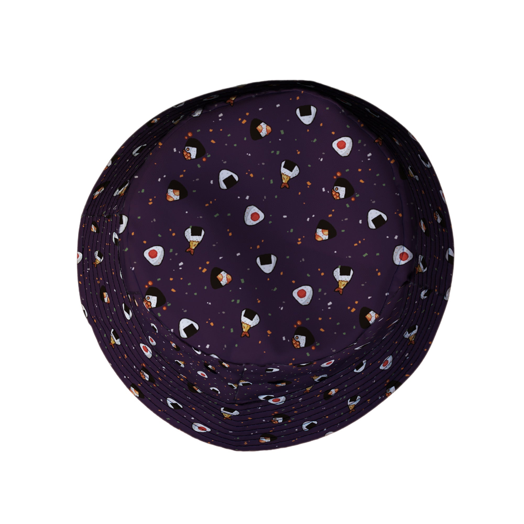Onigiri Dark Bucket Hat serves up a subtle anime flex for your daily fit. A dark backdrop is dotted with minimalist onigiri—rice-ball silhouettes with neat nori squares—laid out in a crisp repeat that pops from street distance and charms up close. Designed by Ardi Tong, this artist-backed lid brings easy shade for festivals, con days, and snack runs, keeping your look deliciously geek.