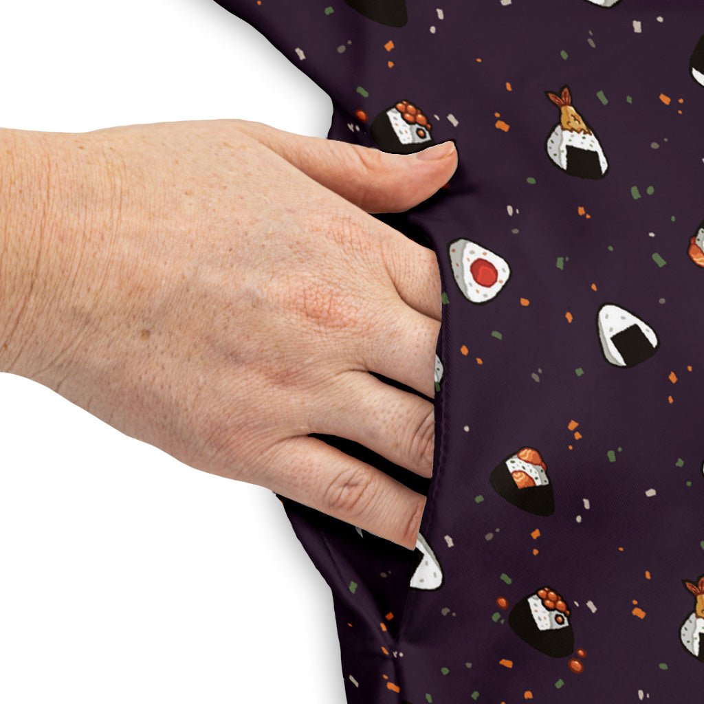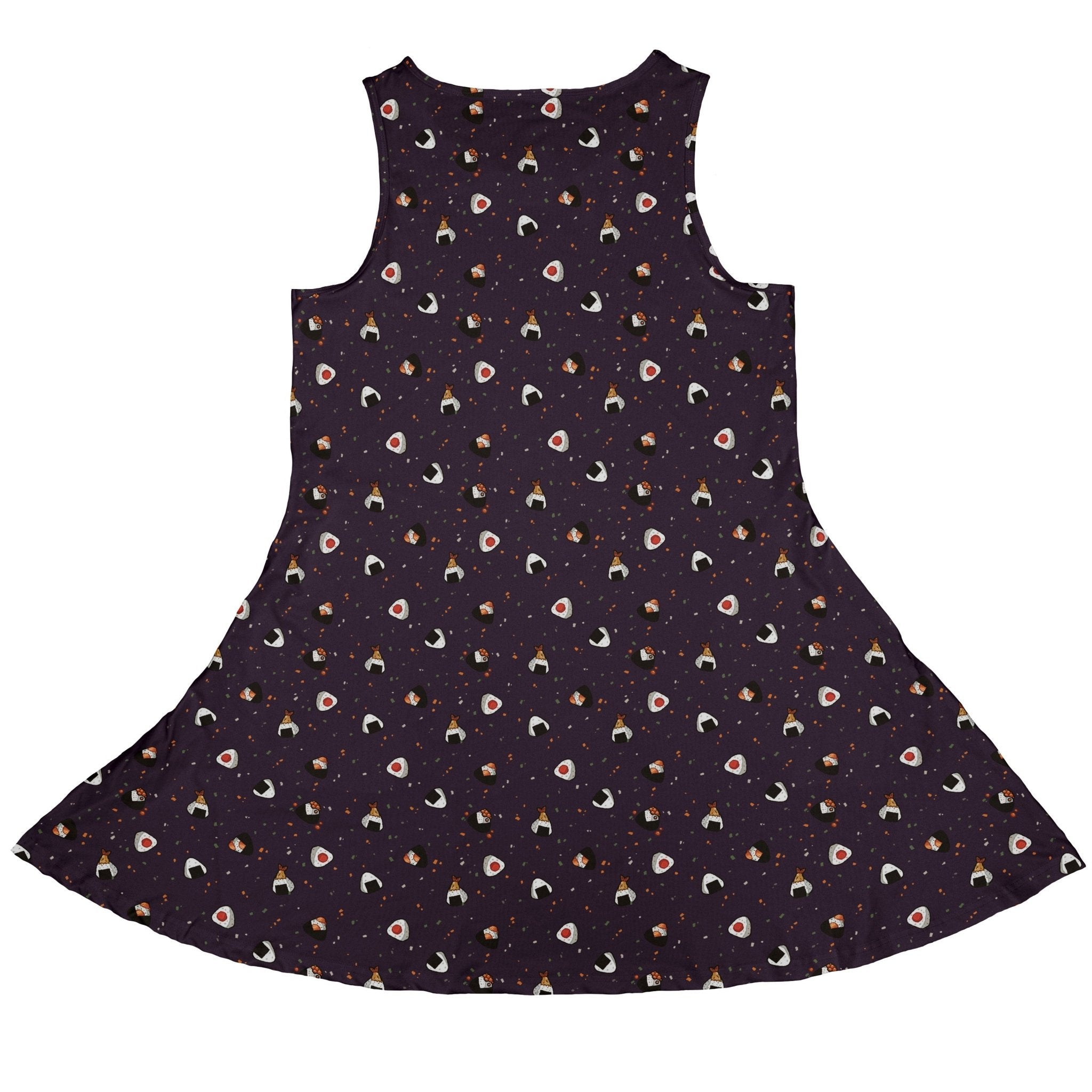 The Onigiri Dark Dress serves up sleek, sushi-core style for everyday quests. Against a deep, inky base, a constellation of adorable onigiri pops—plump rice triangles with neat nori bands—delivering a clean, kawaii pattern that reads polished up close and playful from afar. Effortless to throw on, easy to level up with boots or sneakers. Designed by Ardi Tong; every purchase backs licensed artists.