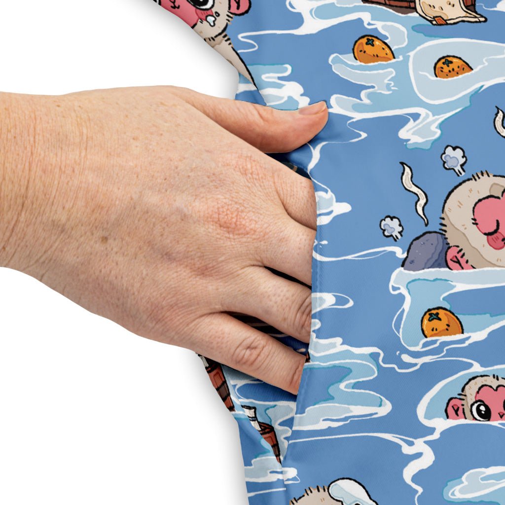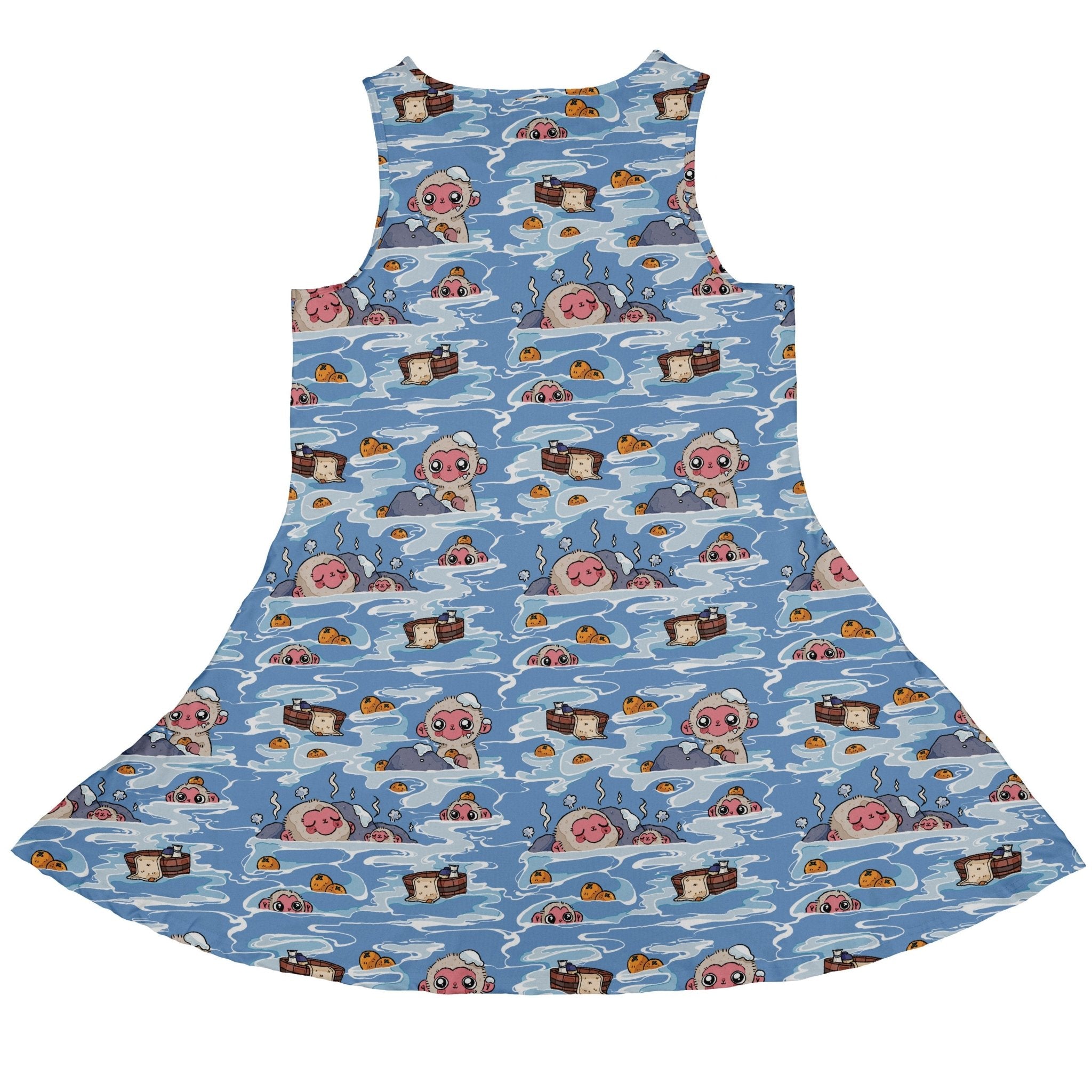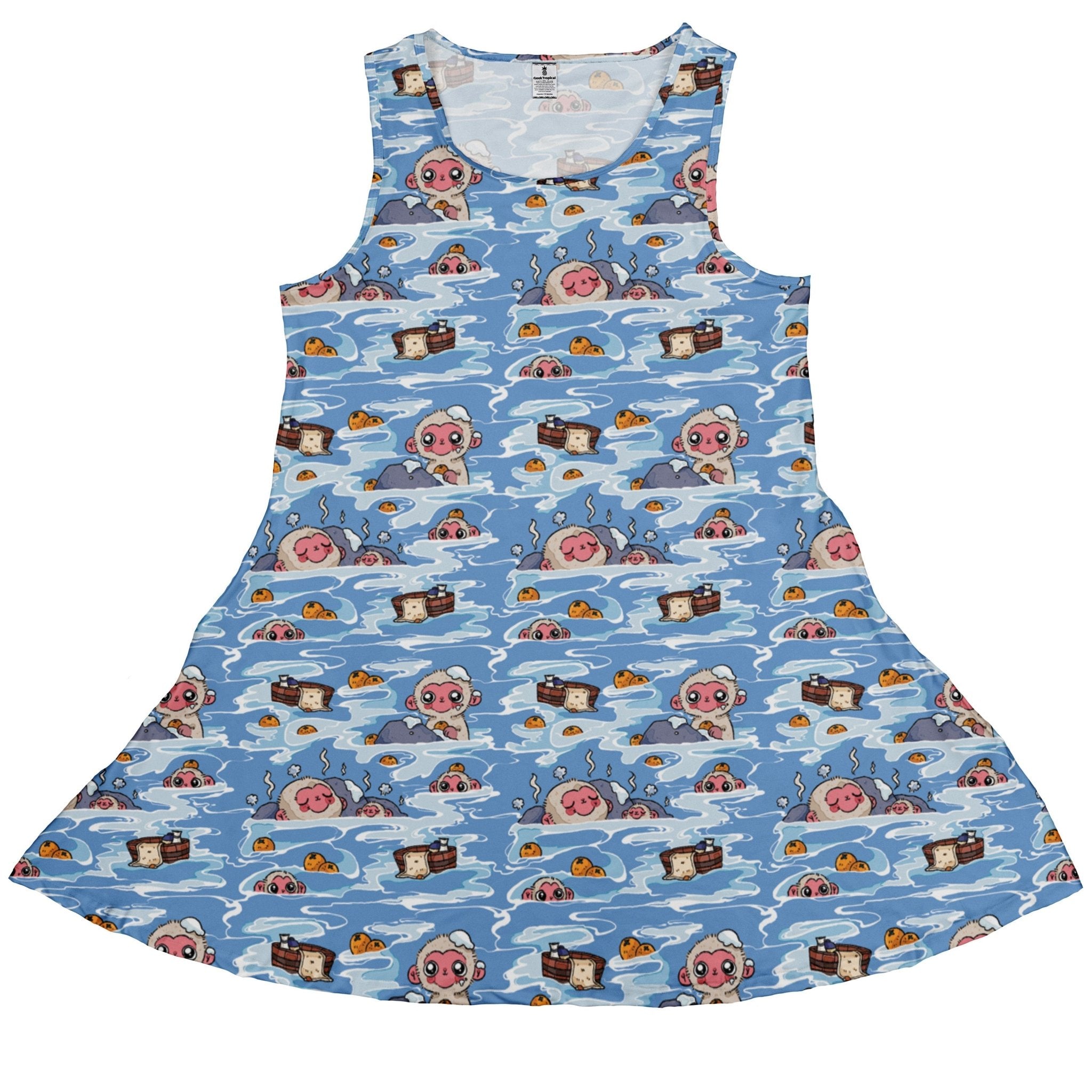 The Onsen Snow Monkeys Dress delivers serene, wintry anime energy: red-faced snow monkeys soaking in hot springs, steam drifting as flakes fall across a cool blue mountainscape. Designed by Ardi Tong, it nails that laid-back yet polished vibe for holiday hangs or con strolls. Smooth, easy movement, cozy coverage, and yes—pockets. Artist-backed, geek-approved, and ready for your next chill quest.