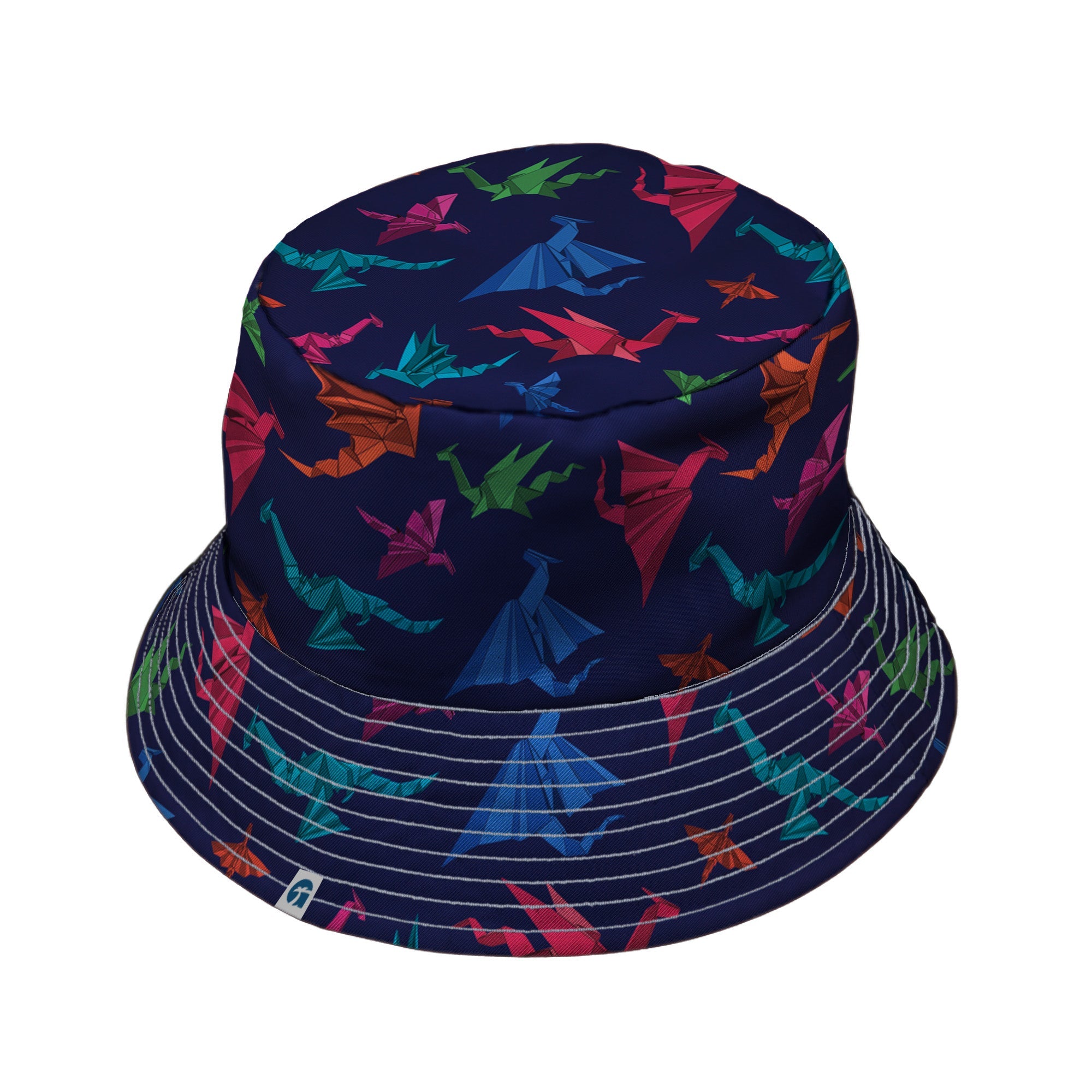 Origami Dragons Dark Bucket Hat swoops in with folded-paper dragons gliding across a rich, dark field—crisp geometric wings wrapping the crown and brim. It’s reversible, mirroring the same art inside, and packs down for quests, commutes, and beach days. Designed by Nathan and proudly artist-backed by Geek Tropical, it brings fantasy swagger with real-world shade.