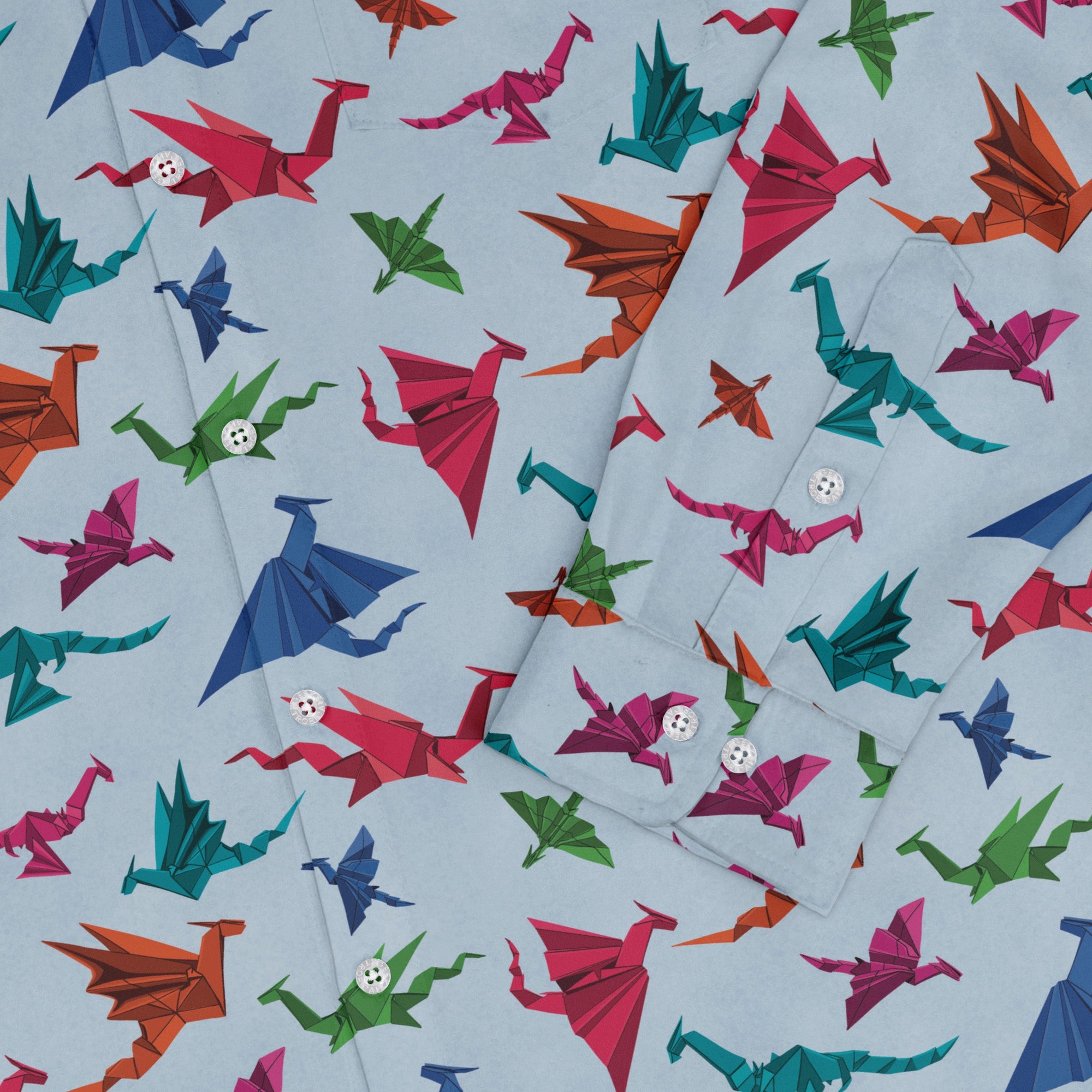 Origami Dragons Light Long Sleeve Button Up Shirt