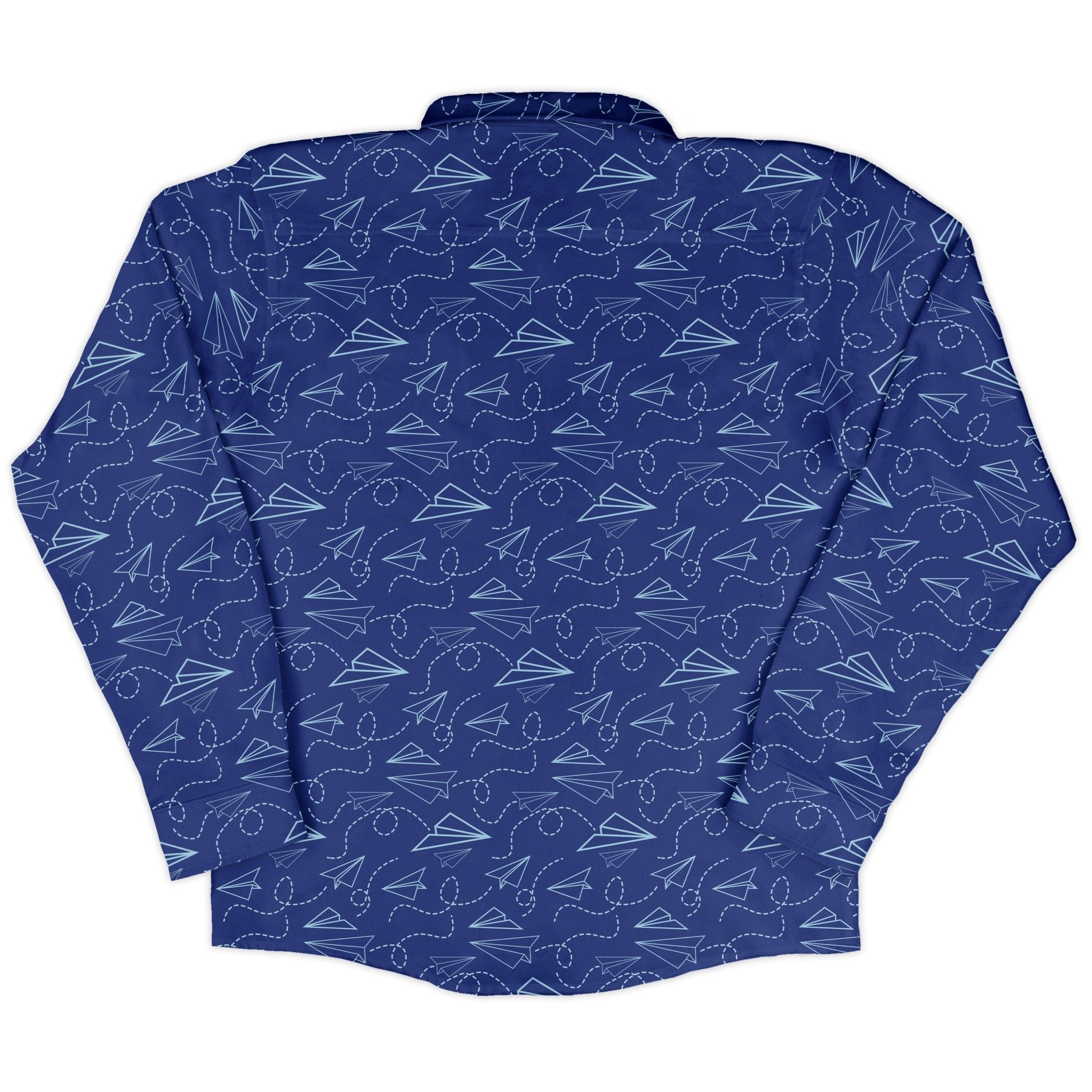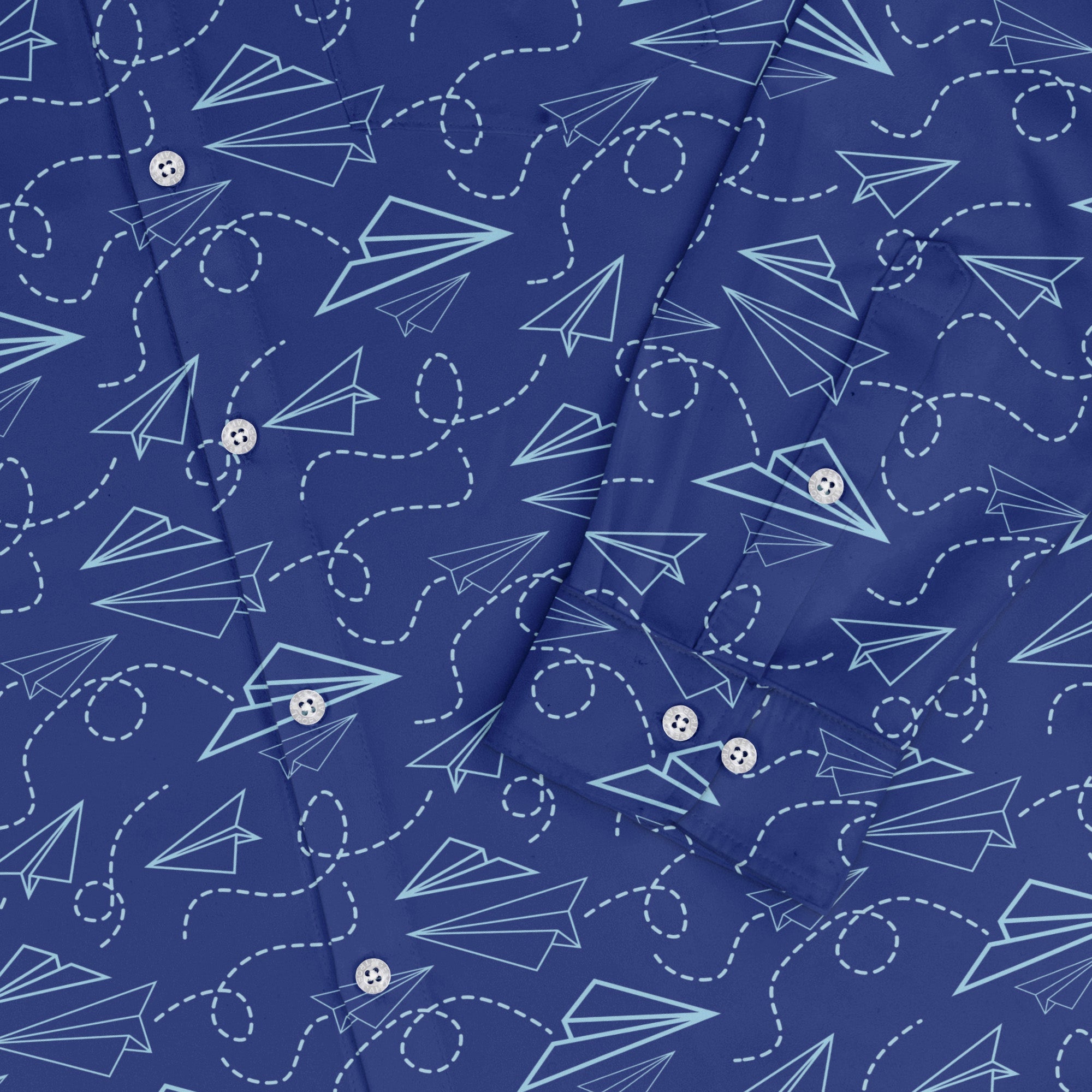 Paper Airplanes Blue Long Sleeve Button Up Shirt