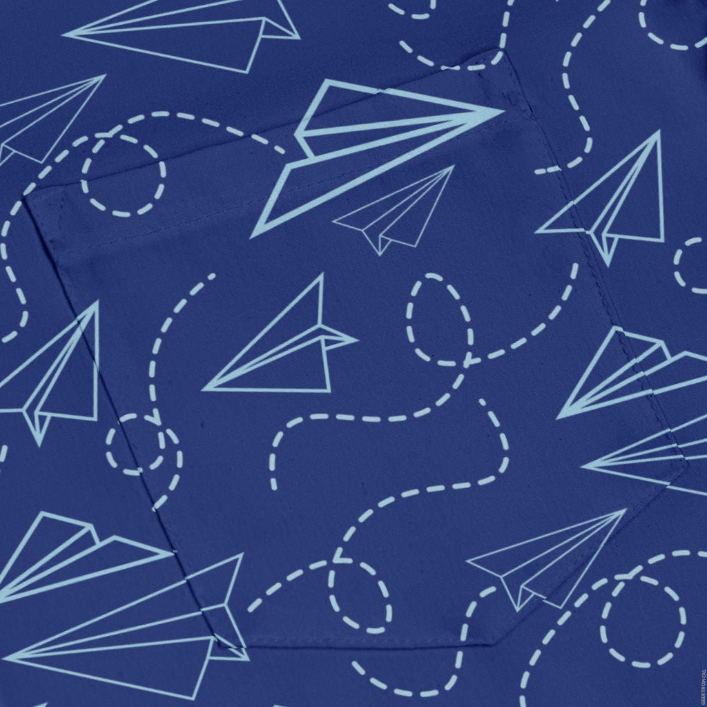 The Paper Airplanes Blue Long Sleeve Button Up Shirt channels pure sky-nerd joy with a cool blue backdrop scattered with crisp white paper planes. Clean lines and a pattern-matched chest pocket keep the print seamless and polished, while the easy unisex vibe makes it an everyday go-to. Designed by Heather Davenport and artist-backed, it looks smart, feels breezy, and leans eco-minded.