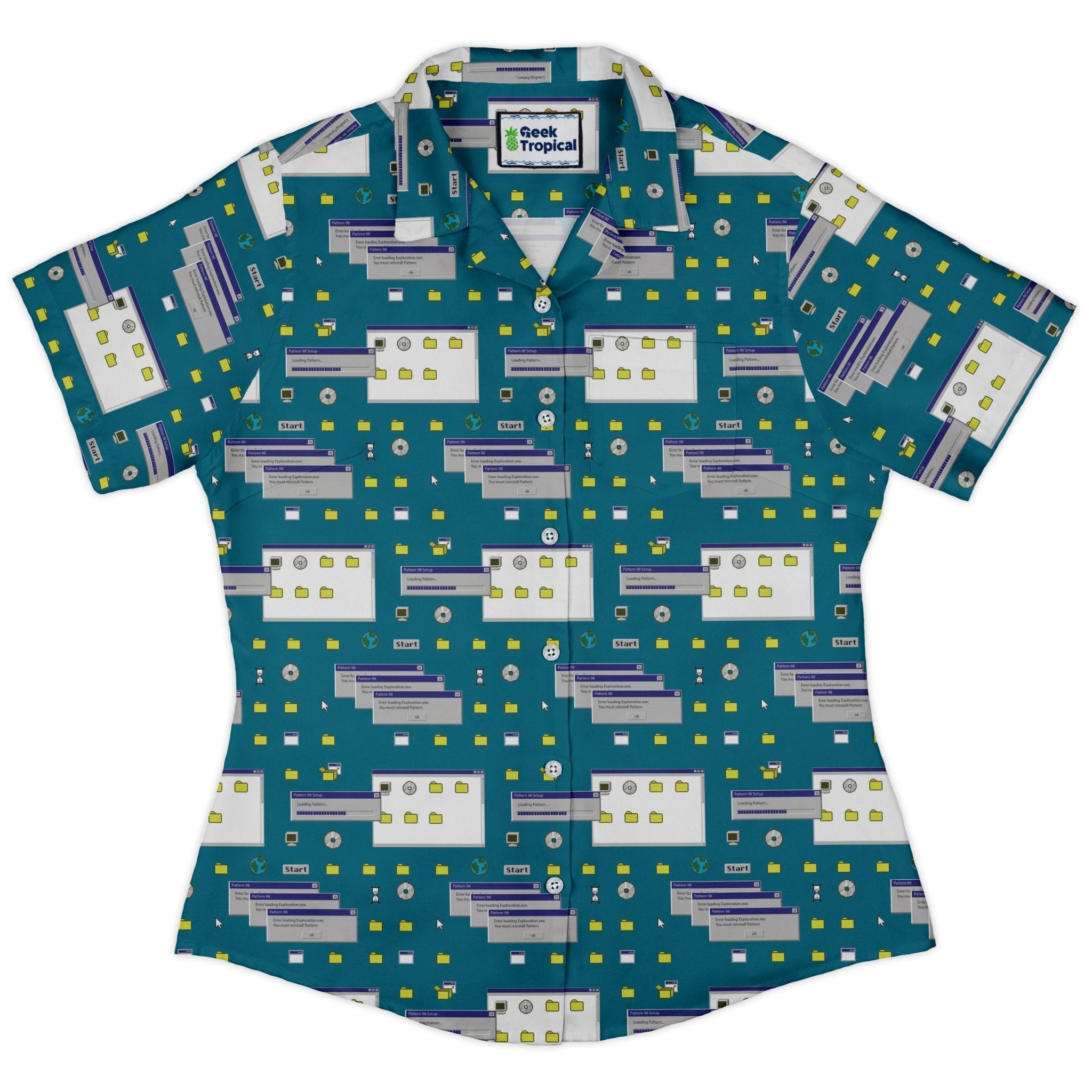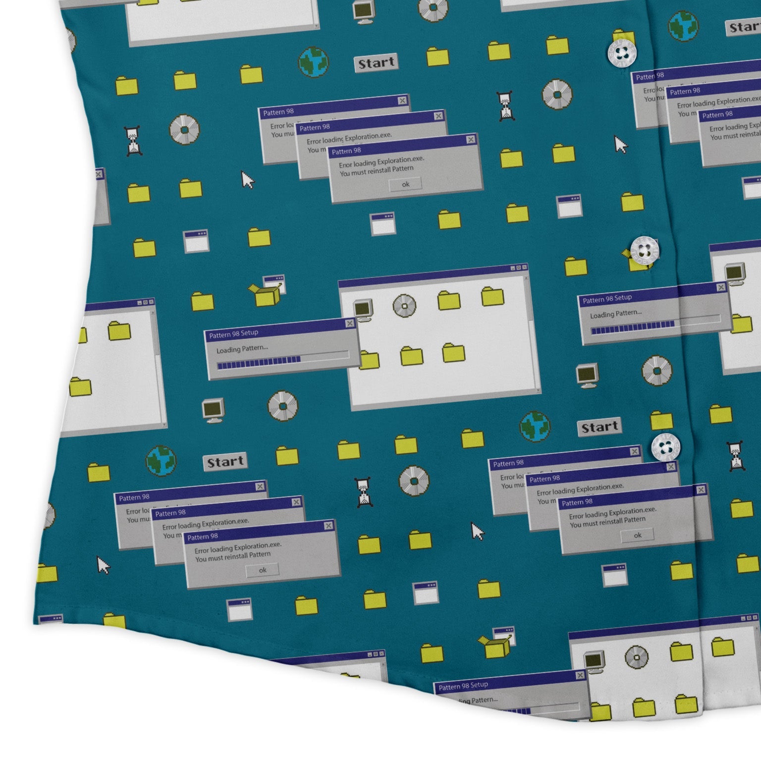 The Pattern98 Curvy Button Up Shirt brings a smart, all-over computer print designed by Claire Murphy to your everyday rotation. Tailored to trace your curves with a clean, non-boxy drape, it moves from meetings to game night with ease. A rounded hem wears well untucked, sleeves adjust on the fly, and the pattern aligns across seams and pocket for nerd-level precision. Artist-backed and sustainably printed for feel-good geekery.