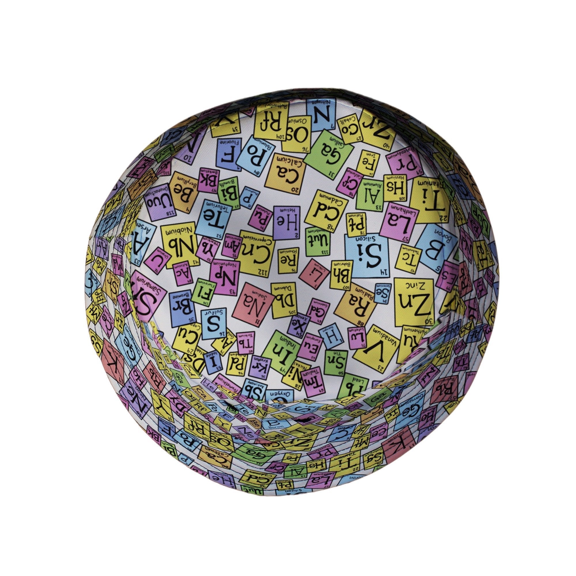 Periodic Table Tan Bucket Hat turns sun time into lab time—tan fabric wrapped in a full periodic grid, with crisp element symbols and atomic numbers circling the crown and brim. Designed by Julie Kitzes, it blends smart minimalism with playful nerd energy, from tidy seams to clean, readable type. The soft, easy brim throws shade for fieldwork, cons, and coffee runs, while the allover print broadcasts your science cred.
