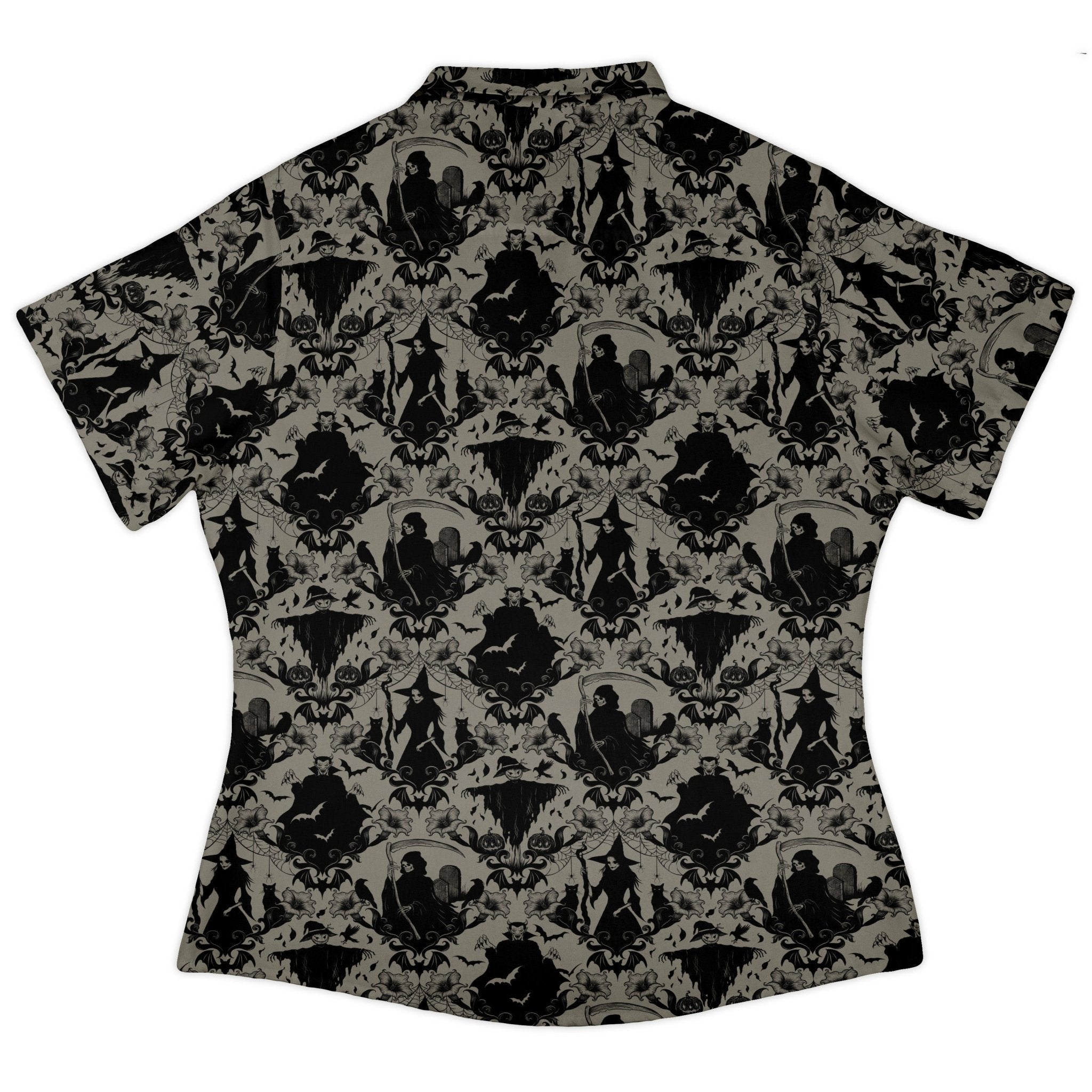 Meet the Phantom Flourish Curvy Button Up Shirt, a botanist’s fever dream tuned for your curves. Swirling, high-detail foliage by Episodic flows seamlessly across panels and pocket for a cohesive, maximalist look. The contoured silhouette sits clean untucked, with sleeves that dress sharp rolled or relaxed. Printed with eco-friendly inks, it’s artist-backed comfort for work, cons, and after-hours quests.