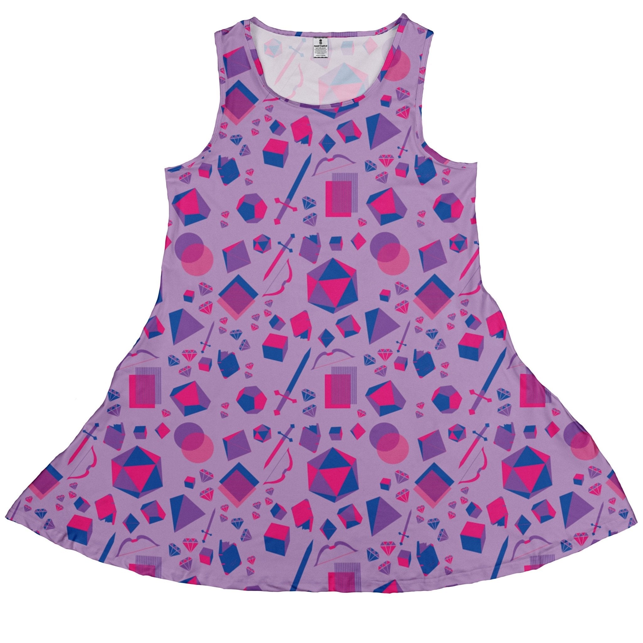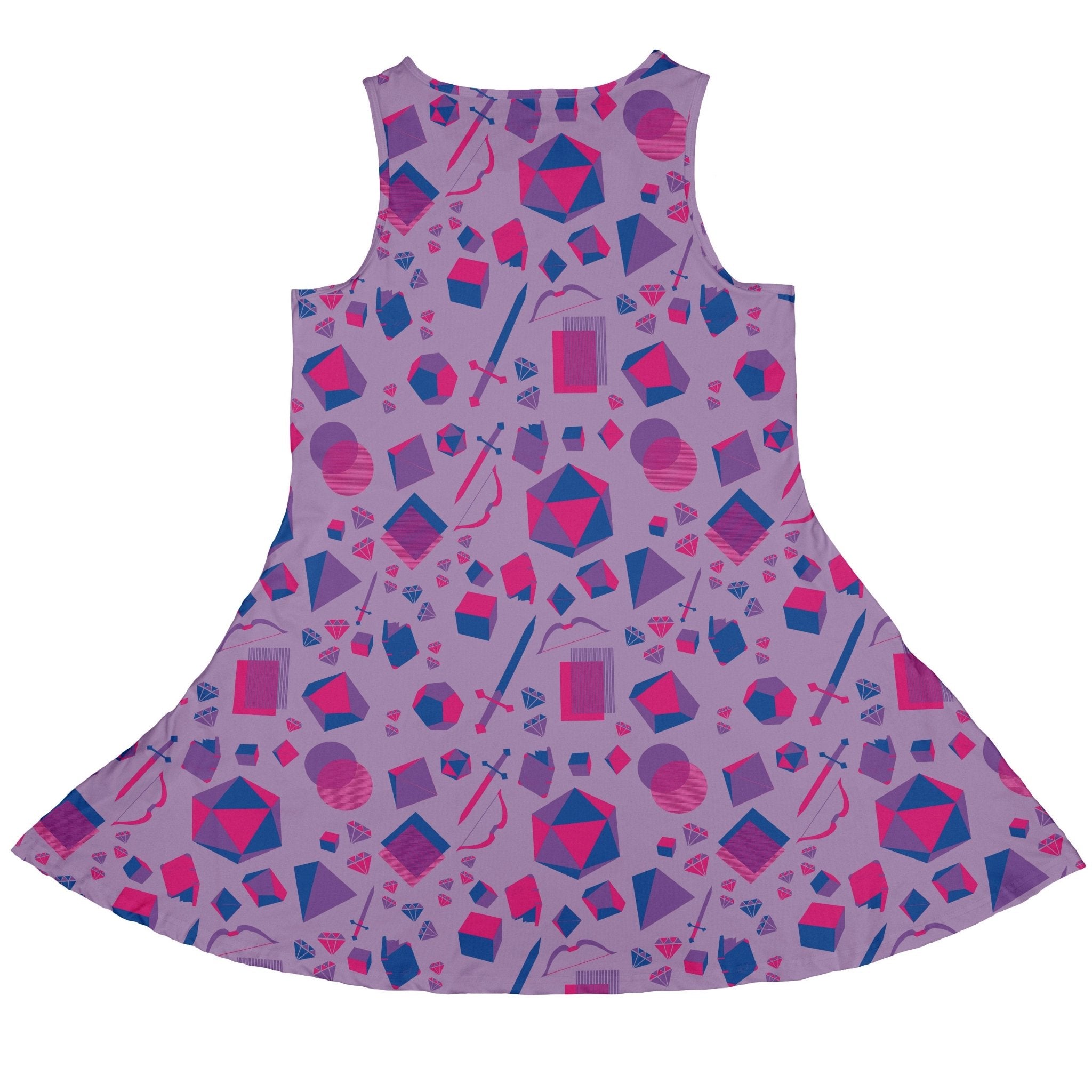Pink Blue And Bisexual Colors Tabletop Rpg Items Dnd Dress levels up your look for pride-forward campaigns and off-duty quests. A seamless, all-over pattern of tabletop icons glows in bi-flag hues—pink, purple, and blue—delivering a bold, geek-chic vibe without shouting. The fabric has a soft, breathable stretch, and the side pockets are legit useful for stashing essentials or even a controller. Artist-backed design, game-ready comfort.