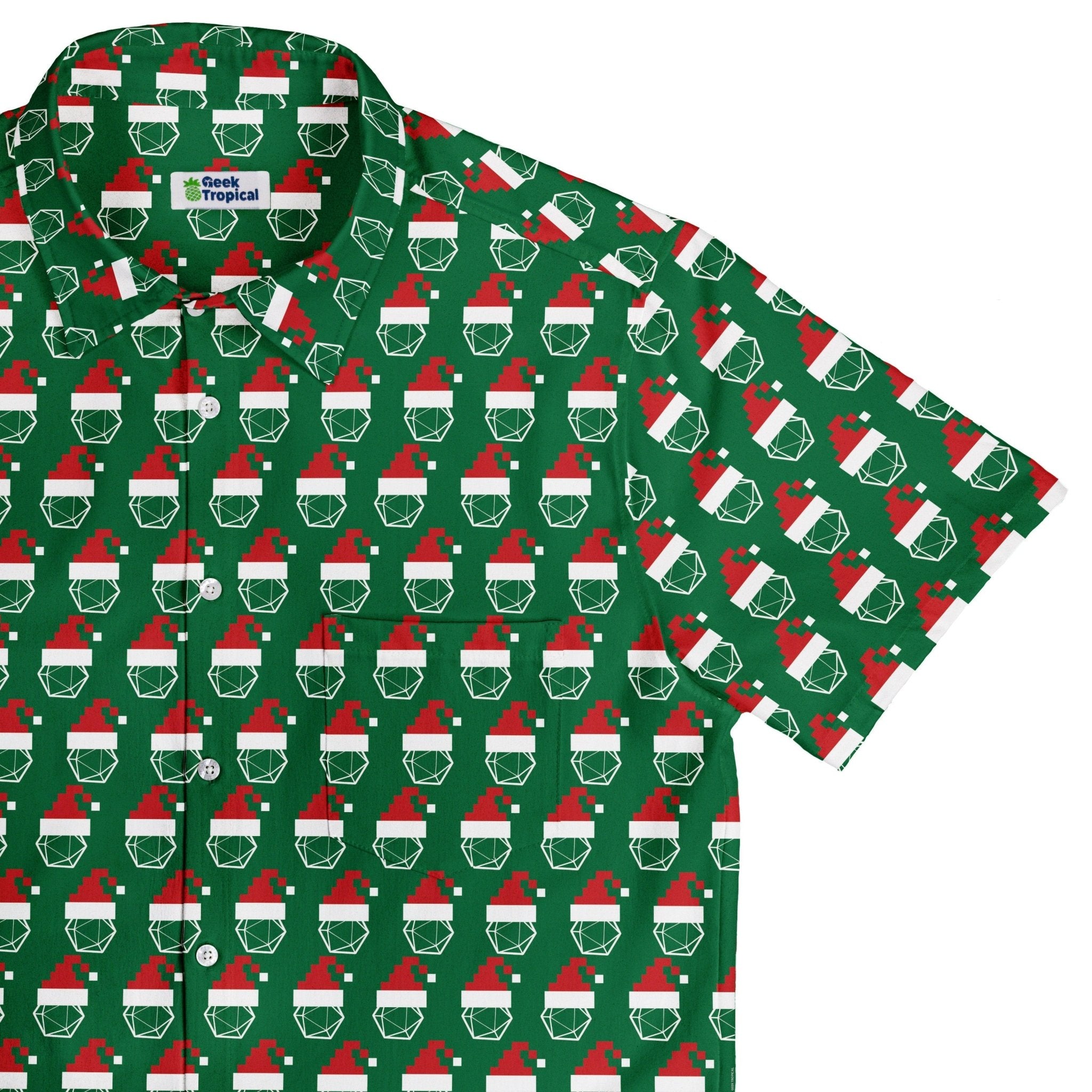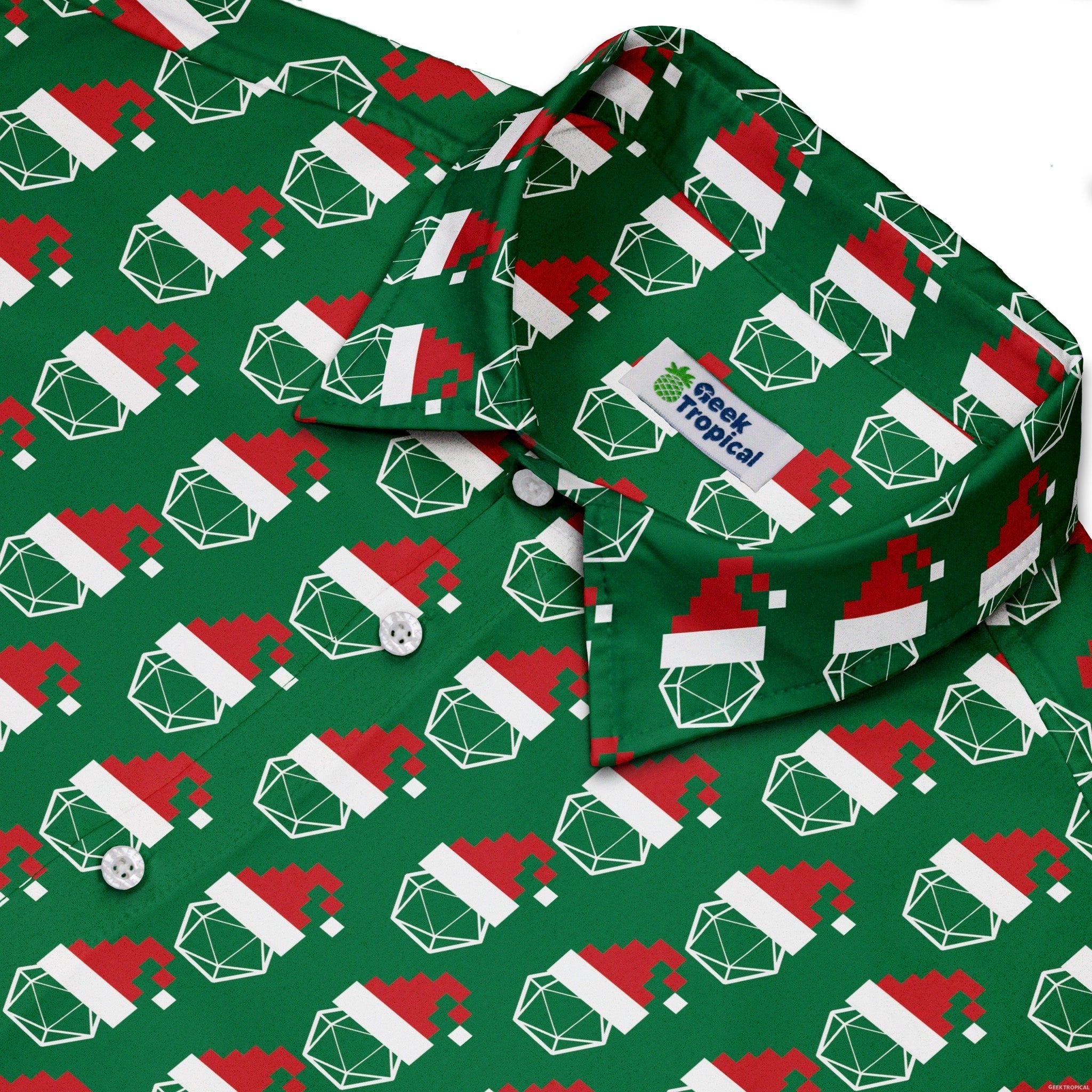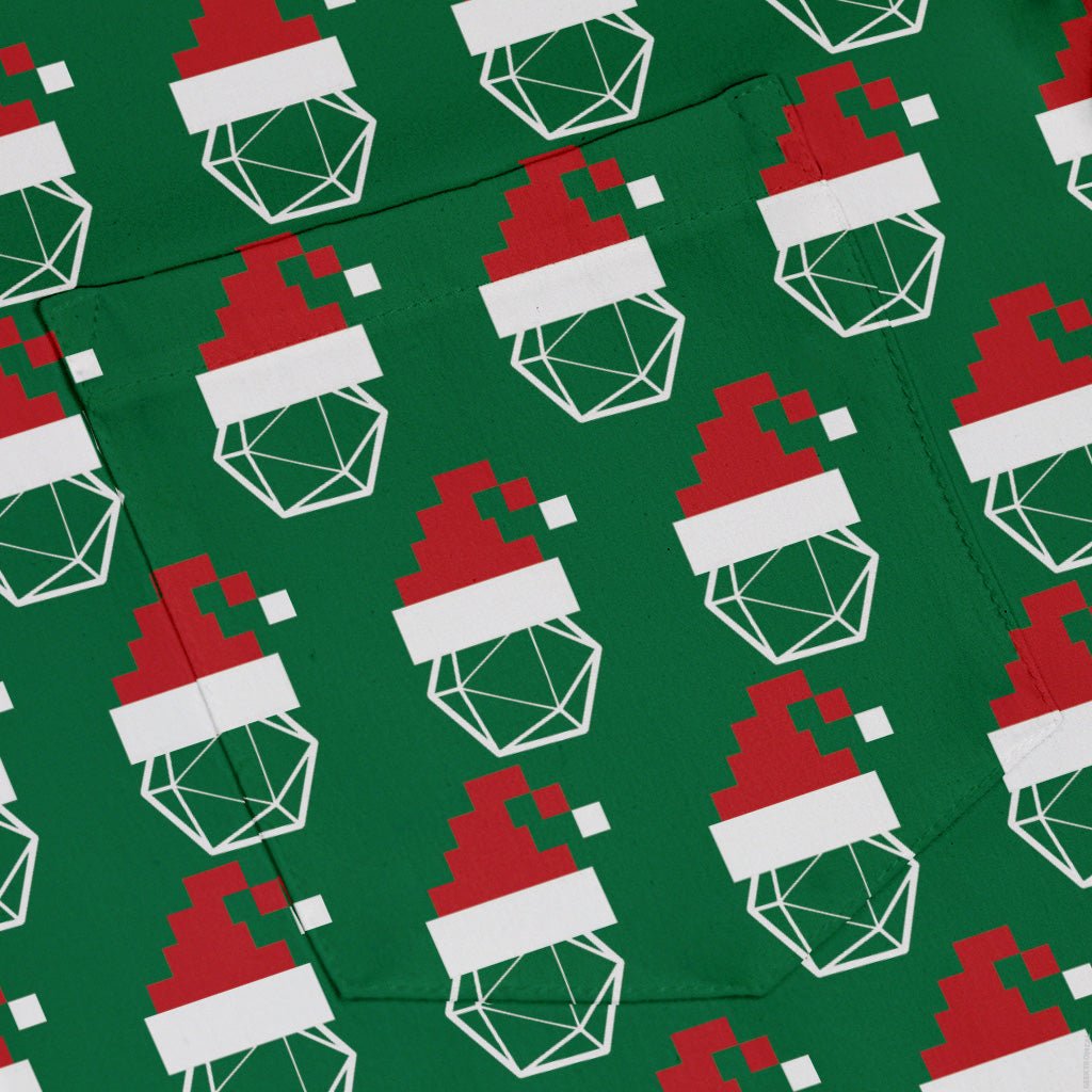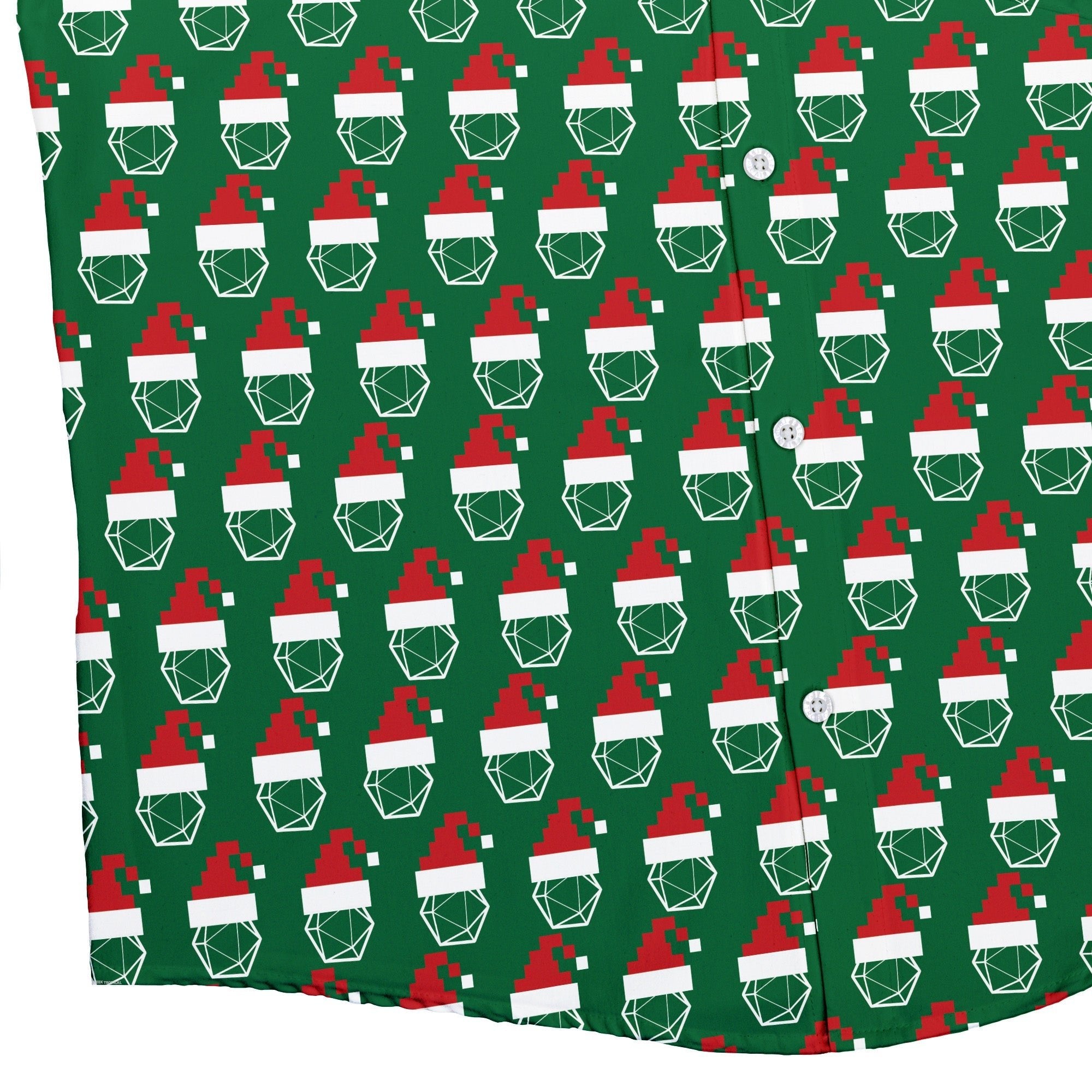 Pixel Santa Hats Dice Button Up Shirt levels up your holiday wardrobe with crisp pixel-art dice topped by jaunty red-and-white Santa caps, scattered in a festive allover print. Geeky enough for your next Dnd one-shot, polished enough for office cocoa runs. Designed by Heather Davenport, it blends cozy vibes with arcade-era nostalgia and artist-backed cred—perfect for grown-up geeks spreading cheerful rolls.