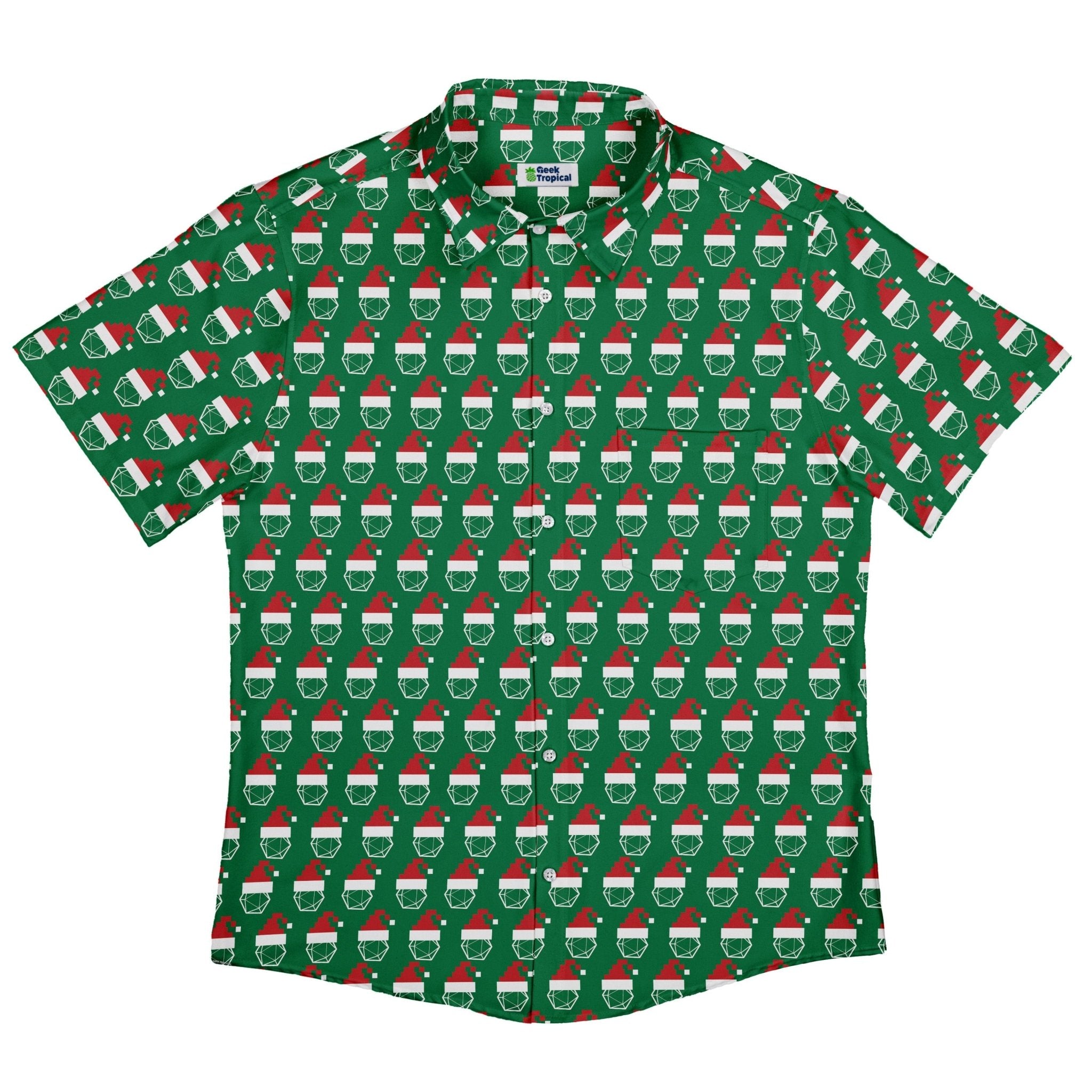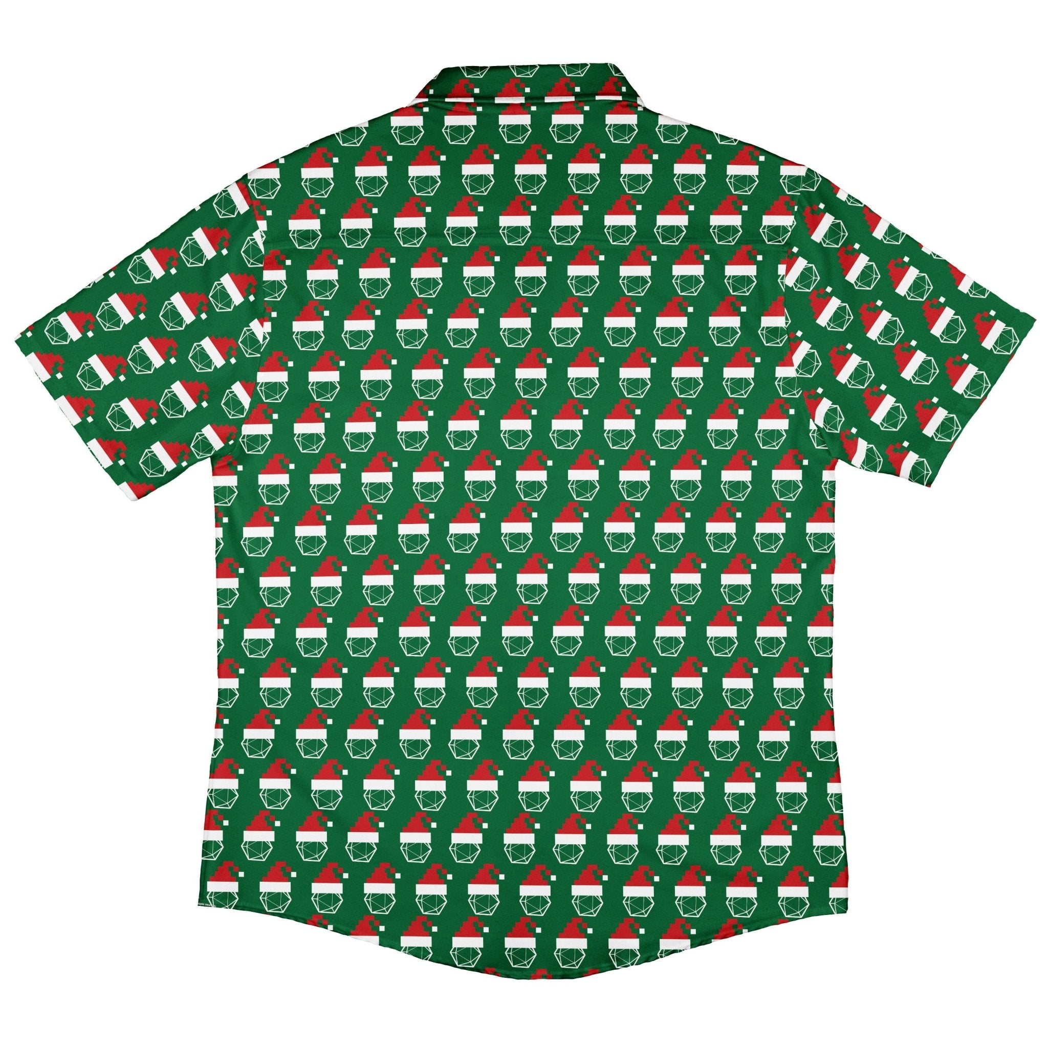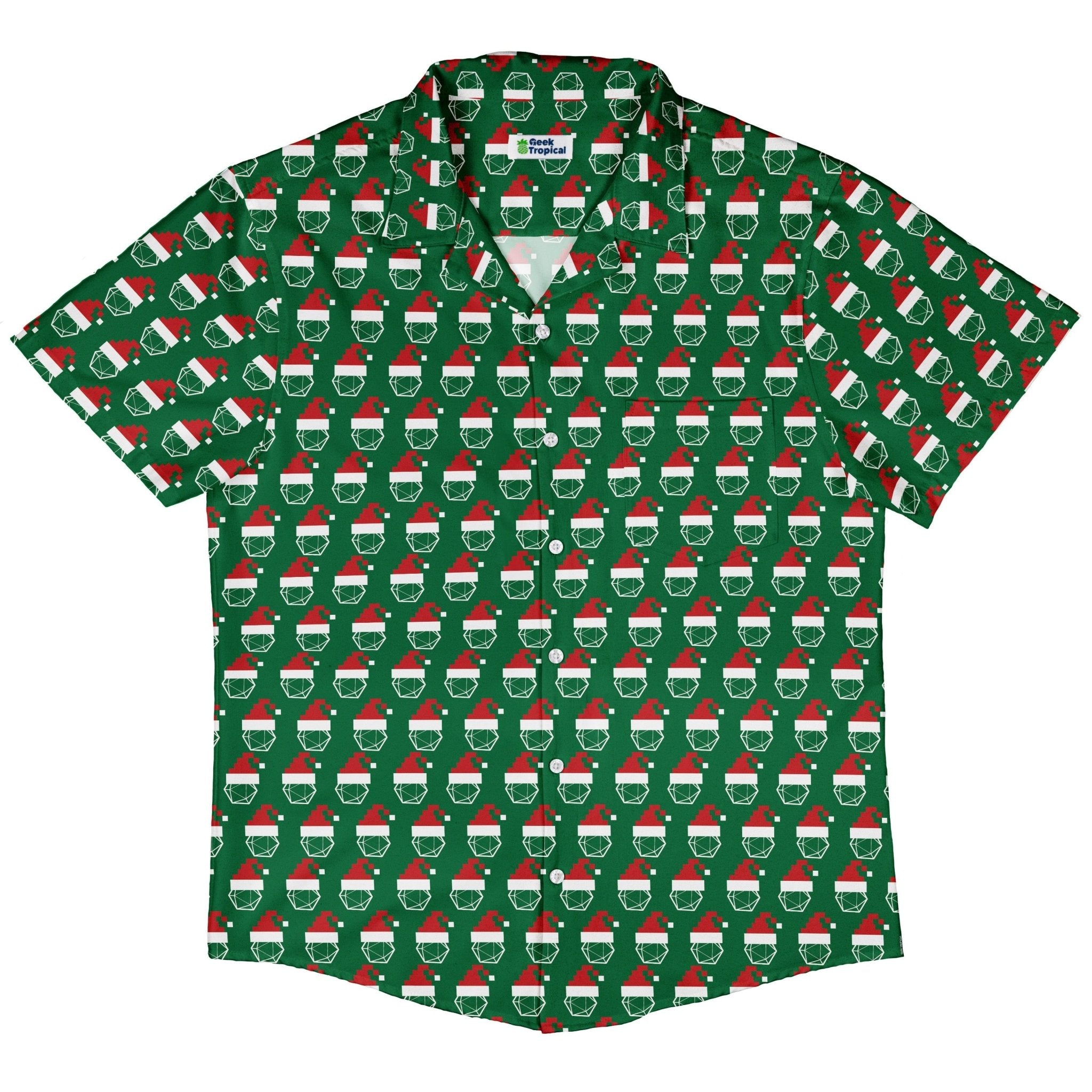 Pixel Santa Hats Dice Button Up Shirt levels up your holiday wardrobe with crisp pixel-art dice topped by jaunty red-and-white Santa caps, scattered in a festive allover print. Geeky enough for your next Dnd one-shot, polished enough for office cocoa runs. Designed by Heather Davenport, it blends cozy vibes with arcade-era nostalgia and artist-backed cred—perfect for grown-up geeks spreading cheerful rolls.