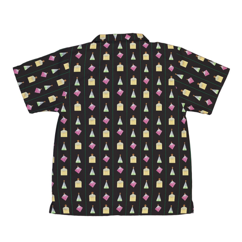 The Poison Dice Elixirs Dnd Youth Hawaiian Shirt turns party night into vacation mode. Heather Davenport's art mixes mischievous dice with bubbling elixir bottles, poison labels, and playful arcane doodles in a tight, all-over repeat that lines up cleanly across the front. Soft, airy, and kid-ready, it's built for quests, recess, and everything between, printed with eco-conscious inks and backed by licensed artists.