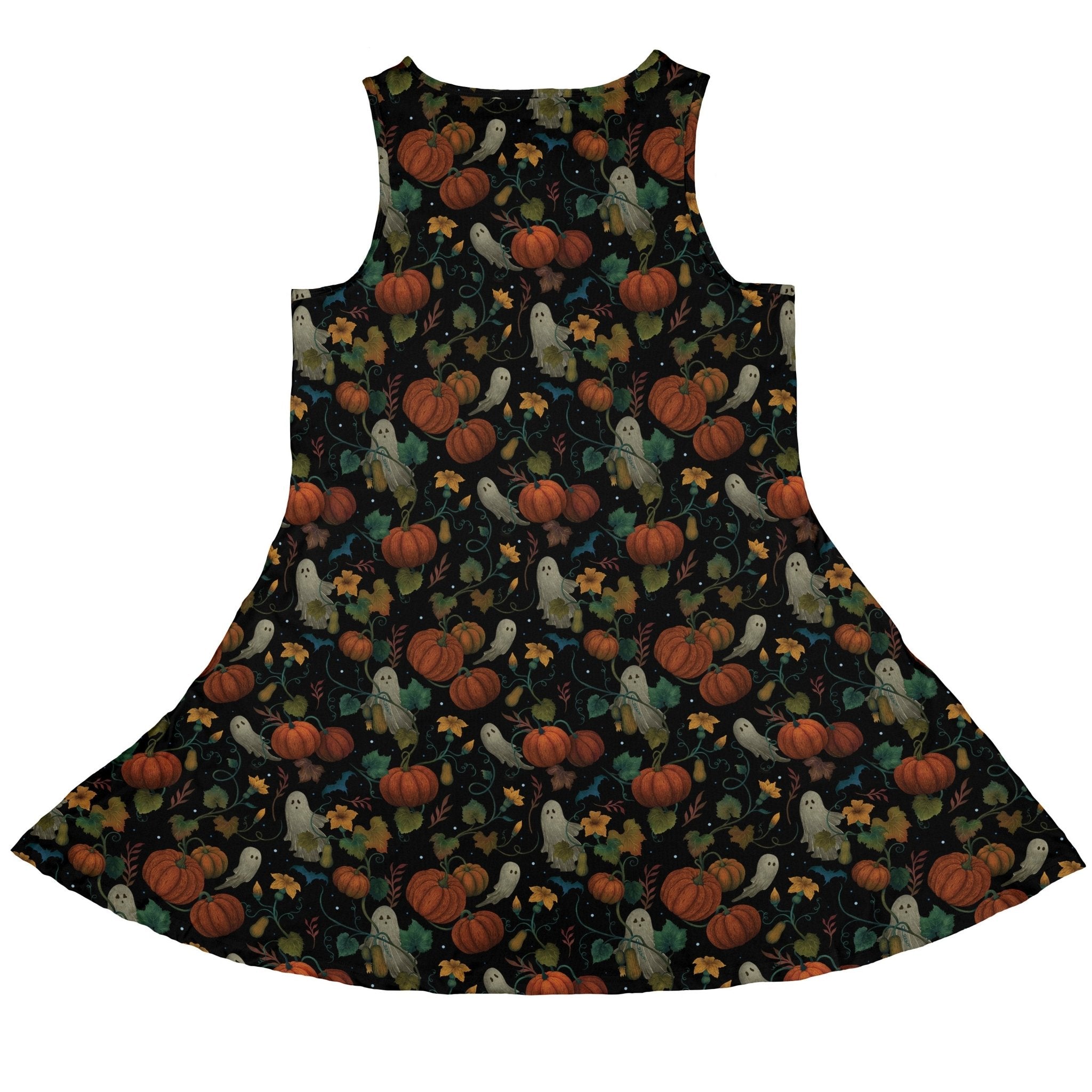 Meet the Pumpkin Ghosts Dress, a playful haunt for your wardrobe designed by Episodic. An all-over parade of pumpkins and friendly spectral pals sets the cozy-spooky tone for day or night. The fabric is soft with just-right stretch, the coverage stays opaque, and the deep side pockets are legit—yes, they’ll even handle your game controller.