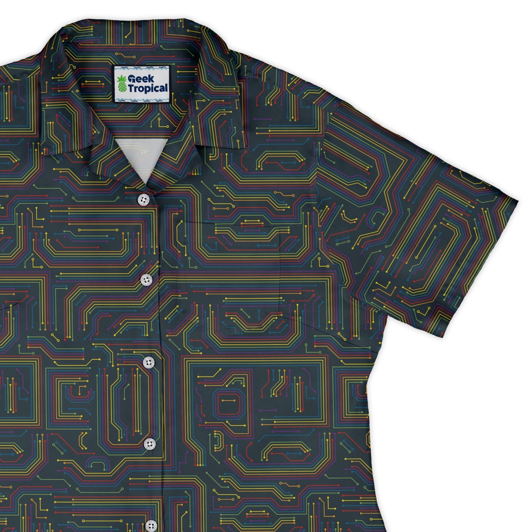 Rainbow Computer Circuit Board Curvy Button Up Shirt