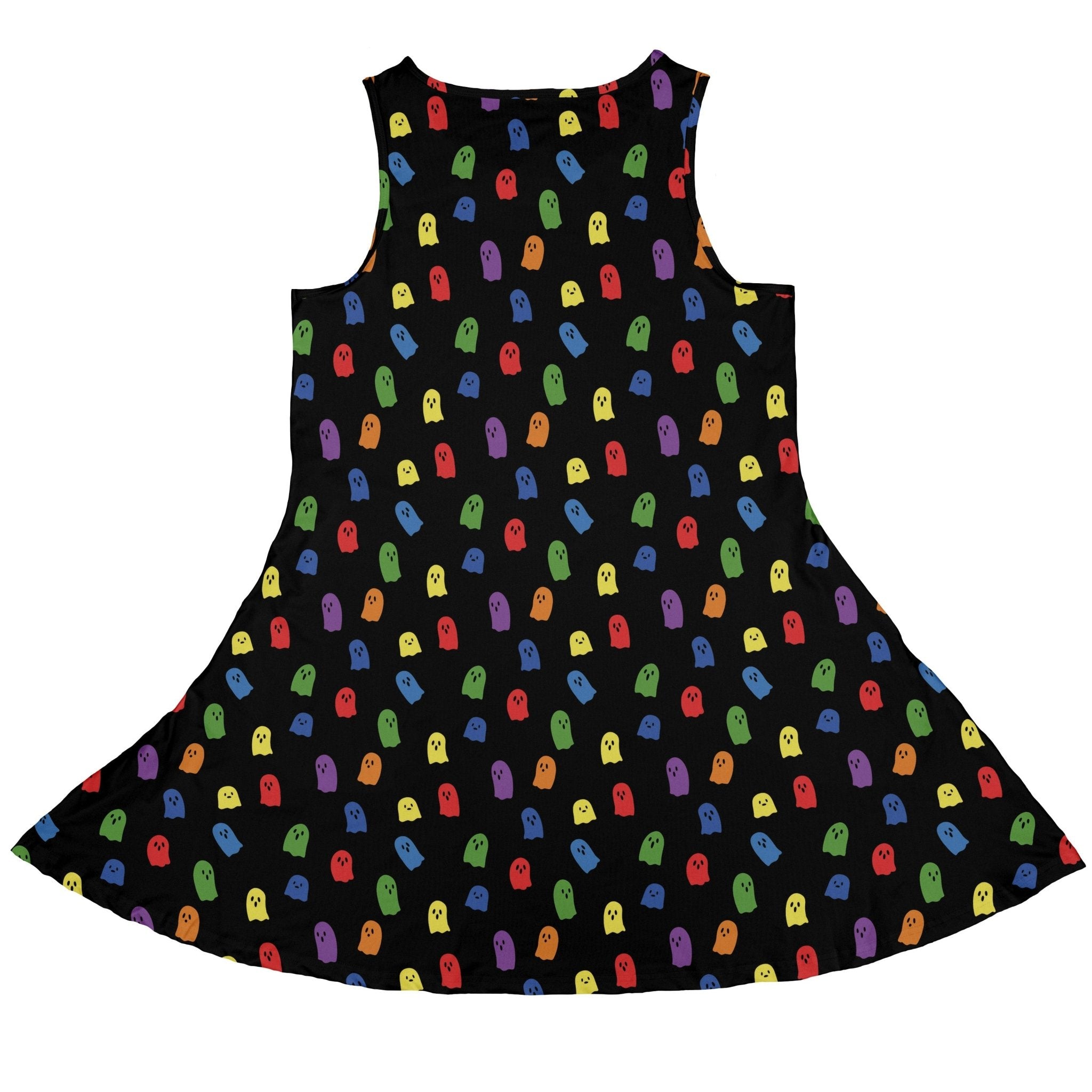 Meet the Rainbow Kawaii Ghosts Dress, a playful swirl of pastel rainbow specters drifting in an allover print that pops from every angle. Designed by Tobe Fonseca, each tiny ghost beams with personality, channeling maximalist-cute energy and turning casual days into cosplay-adjacent style. The fabric feels cool and smooth with a gentle stretch, and the silhouette keeps things polished yet easy. Bonus: roomy side pockets—yes, controller-ready. Artist-backed purchase, maximum vibes.