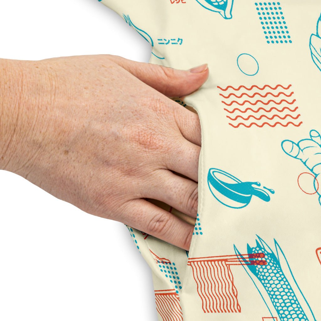 The Ramen Recipe Japanese Dress serves up foodie flair with a clever, recipe‑style layout celebrating the art of noodles. Clean graphic linework frames a ramen bowl motif, giving your fit a crisp, illustrated edge from neckline to hem. The silhouette stays laid‑back yet polished—easy to dress up or down. Designed by Tobe Fonseca and proudly artist‑backed, so your style supports the creators you love.