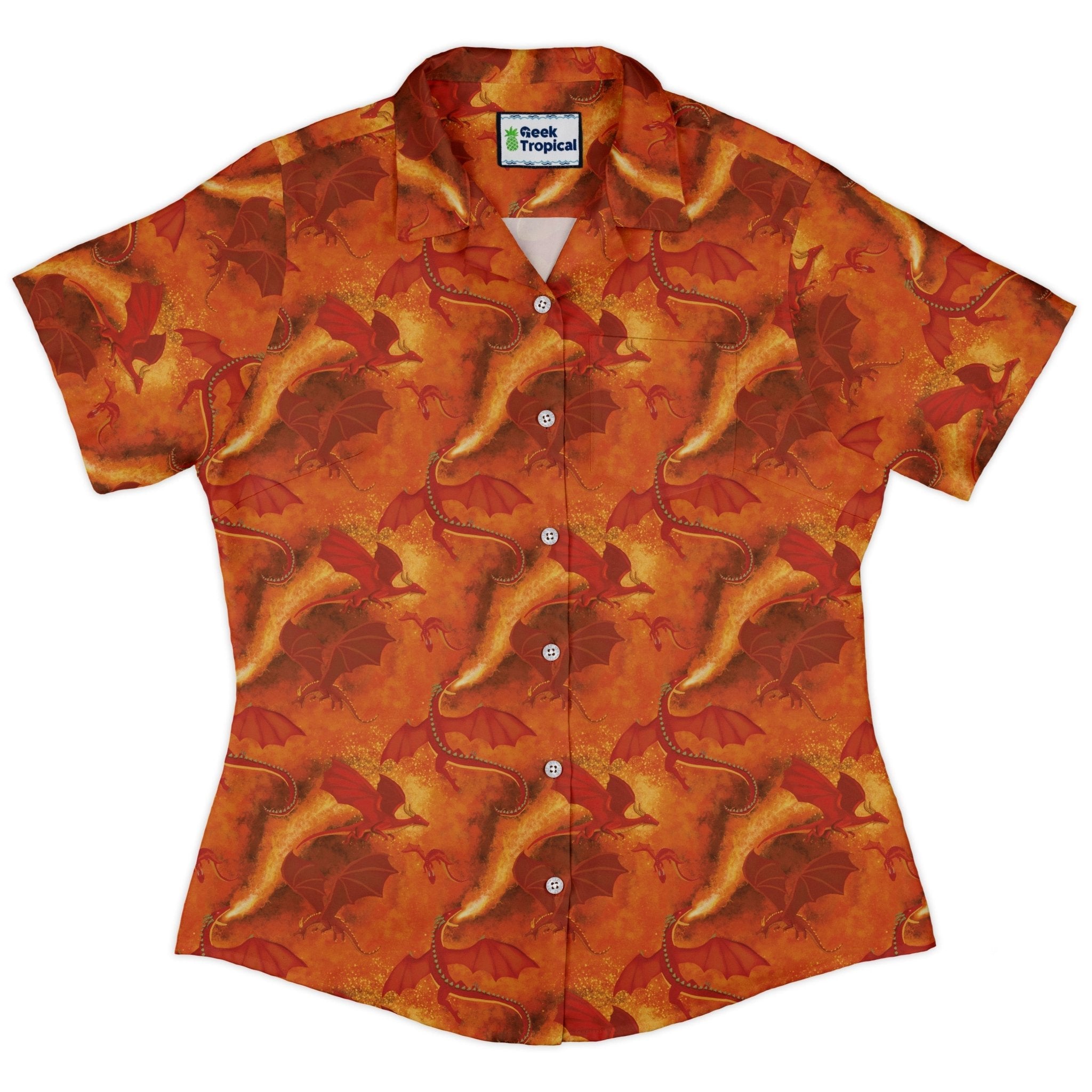 Red Dragon Fire Dnd Curvy Button Up Shirt