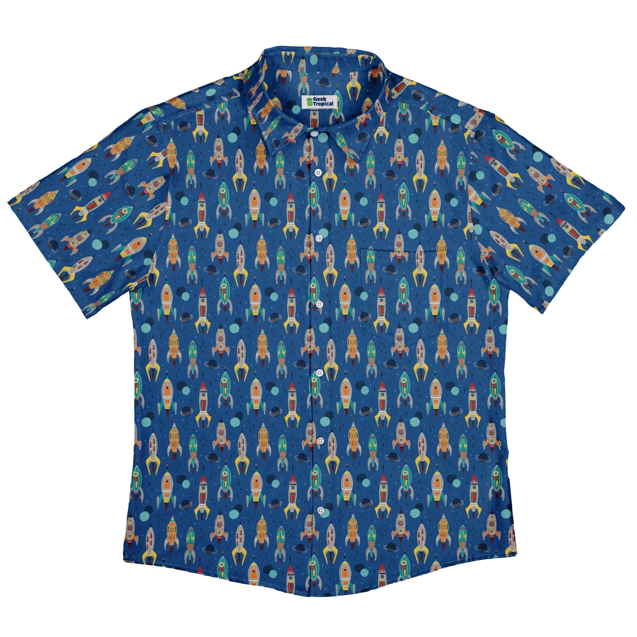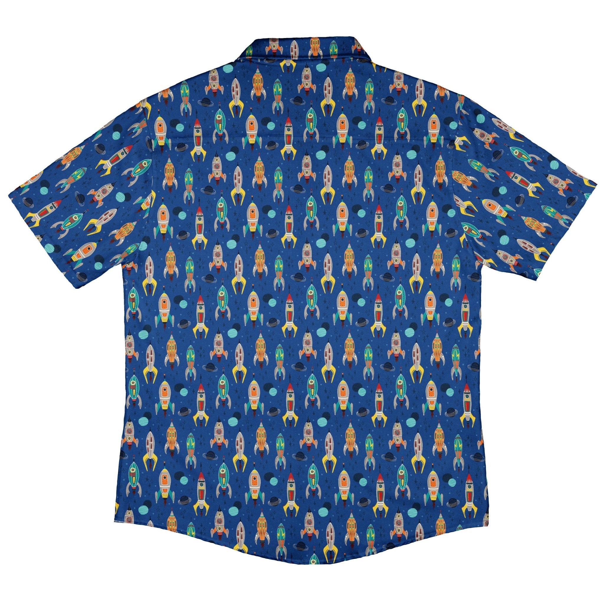 Meet the Retro Kitsch Rocker Button Up Shirt, your ticket to a space-age vibe with a wink. Designed by Zirkus Design, the all-over print launches astronauts and cosmic icons into a playful, retro orbit. The art flows neatly across the front and optional pocket for that polished, gallery-level finish. Soft, easy wearing, and printed with eco‑minded inks, it’s equal parts nerd cred and night-out swagger.