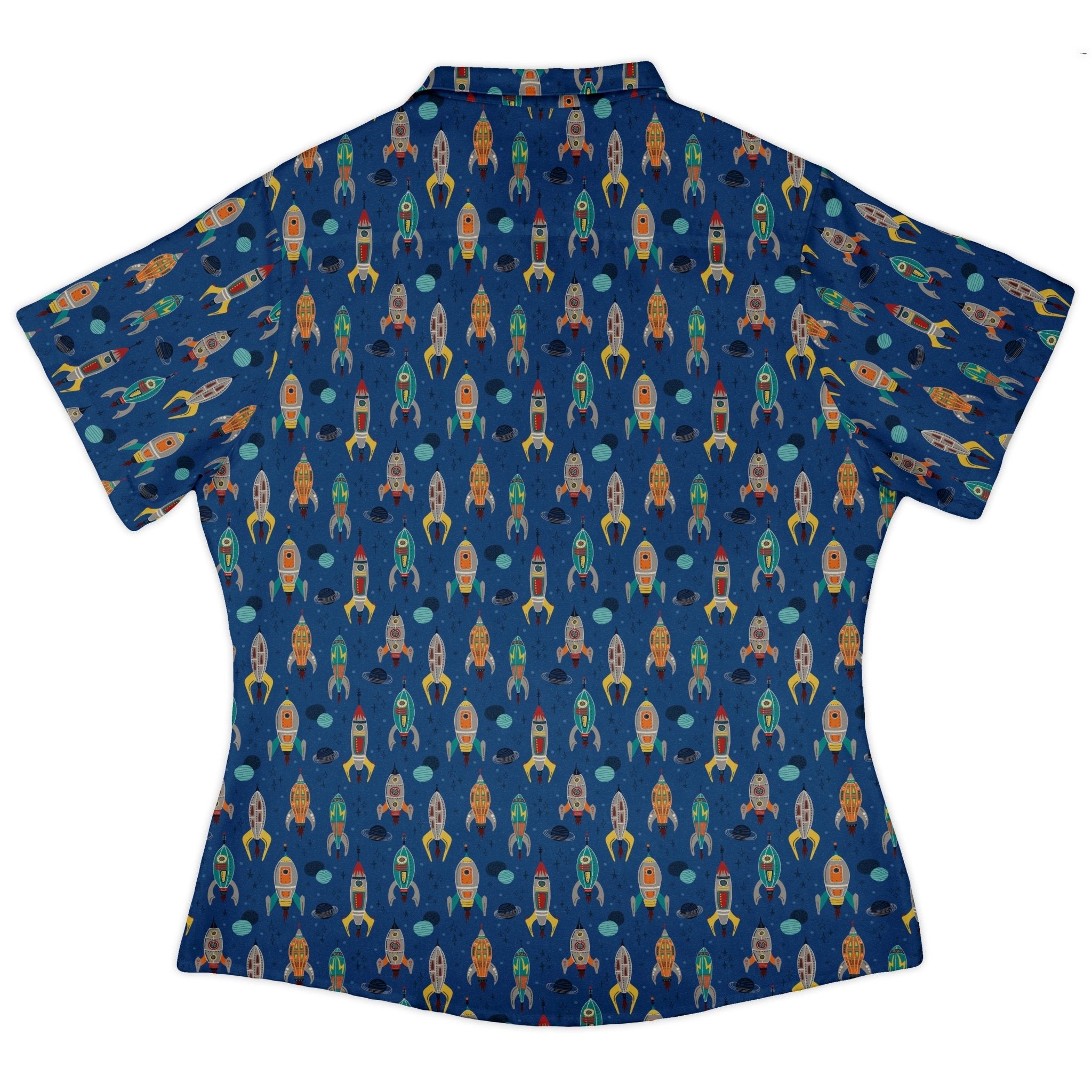 Meet the Retro Kitsch Rocker Curvy Button Up Shirt, a space-age vibe cut for curves and made to turn heads. Designed by Zirkus Design, it features playful astronauts drifting through outer space in a retro, kitschy collage, with the print cleanly flowing across seams and pocket for seamless swagger. Soft on the skin and polished at the collar, it’s finished with distinctive buttons and printed with eco-friendly inks—artist-backed, geek-approved.