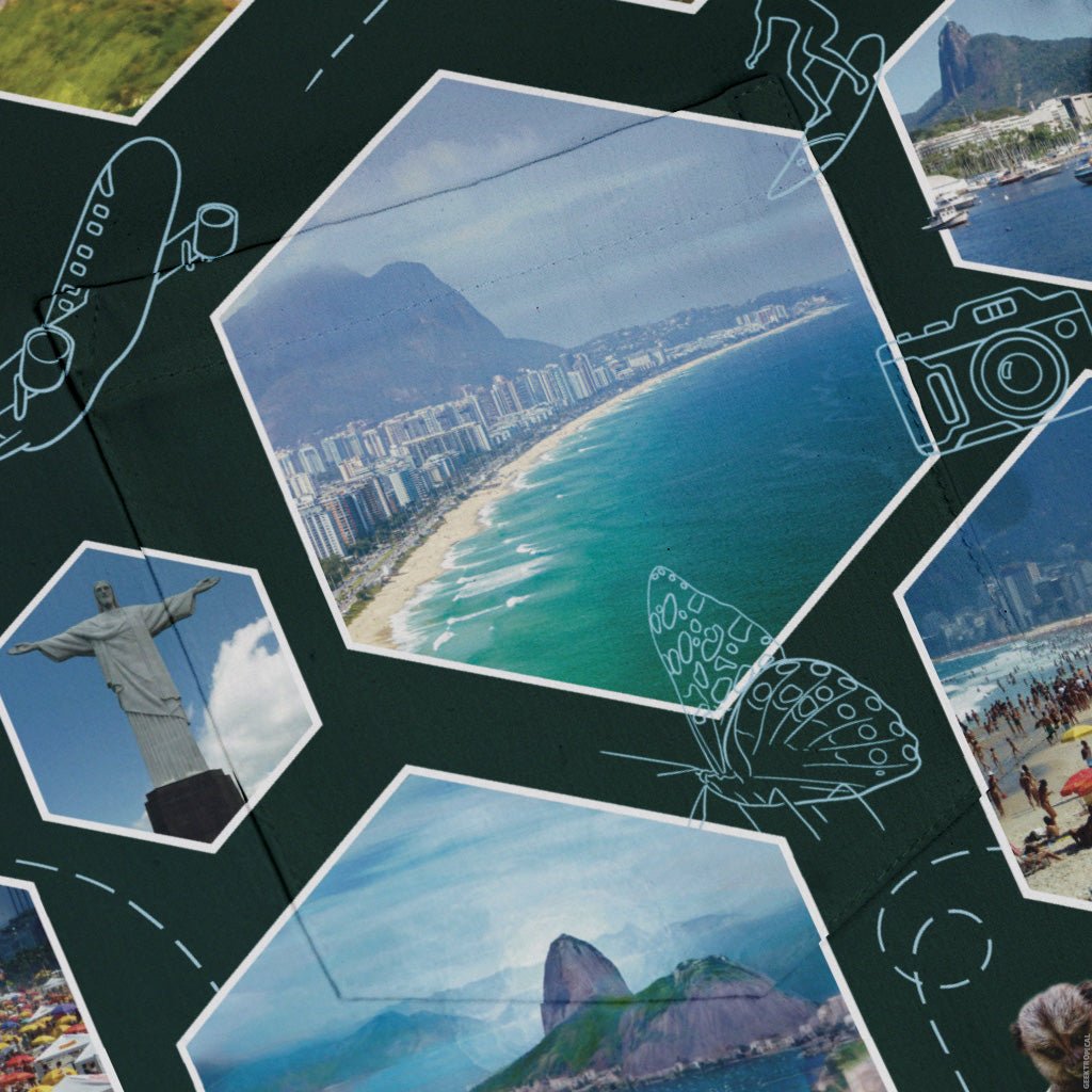 The Rio Janeiro Wonder Button Up Shirt channels Rio’s electric blend of jungle and coastline into wearable art: a maximalist field of layered botanicals with playful animal cameos, rendered in a vivid, high-contrast palette. Designed by Nathan, it rolls a natural 20 on charisma—equally ready for panels, patios, and late-night quests. Unisex cut and a print that aligns across the placket for a seamless look, printed with eco-conscious inks.