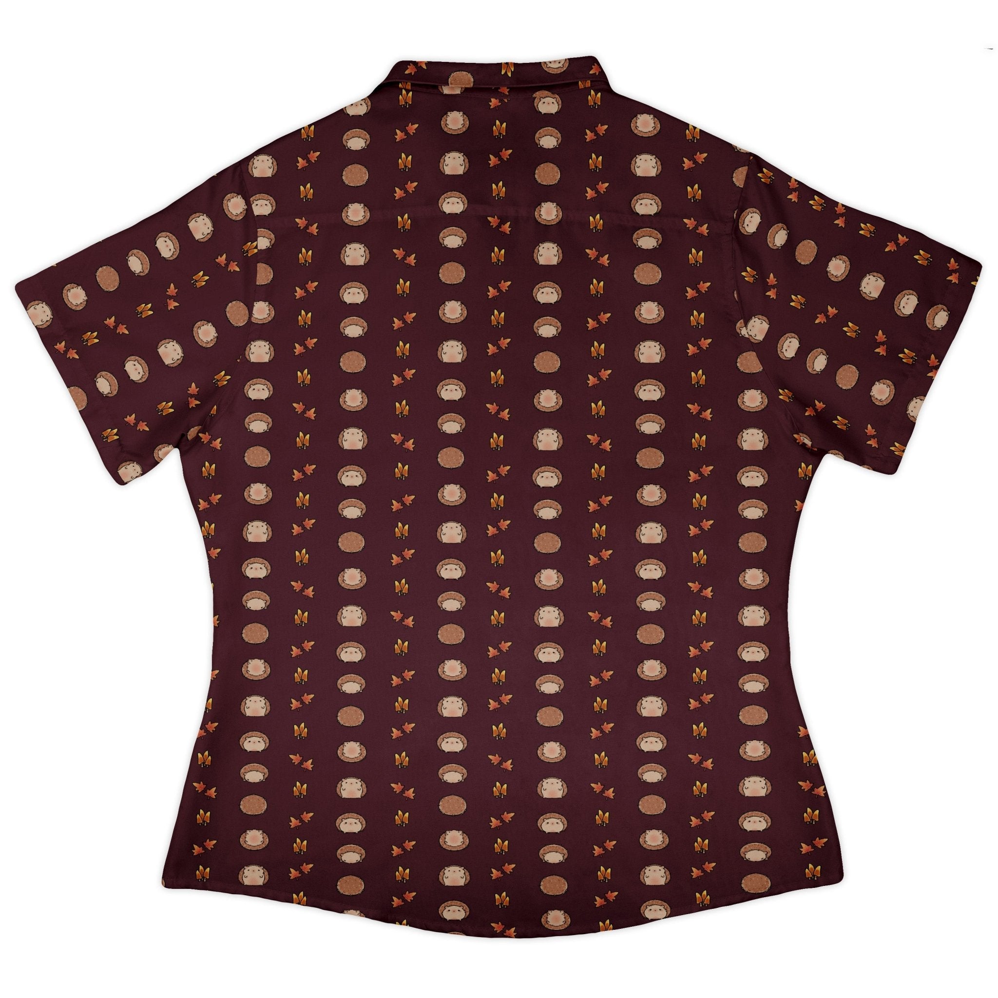 The Rolling Hedgehogs Curvy Button Up Shirt rolls out personality: a scatter of rolling, curled-up hedgehogs marching across a crisp button-up, with the pocket aligned for a seamless look. Designed by Ardi Tong, this art-forward top flatters curves with a tailored silhouette, easy movement, and sleeves you can wear neat or relaxed. Soft, lightweight, and printed with eco-conscious inks, it’s playful yet polished for workdays, cons, and weekend quests—and supports the artist.