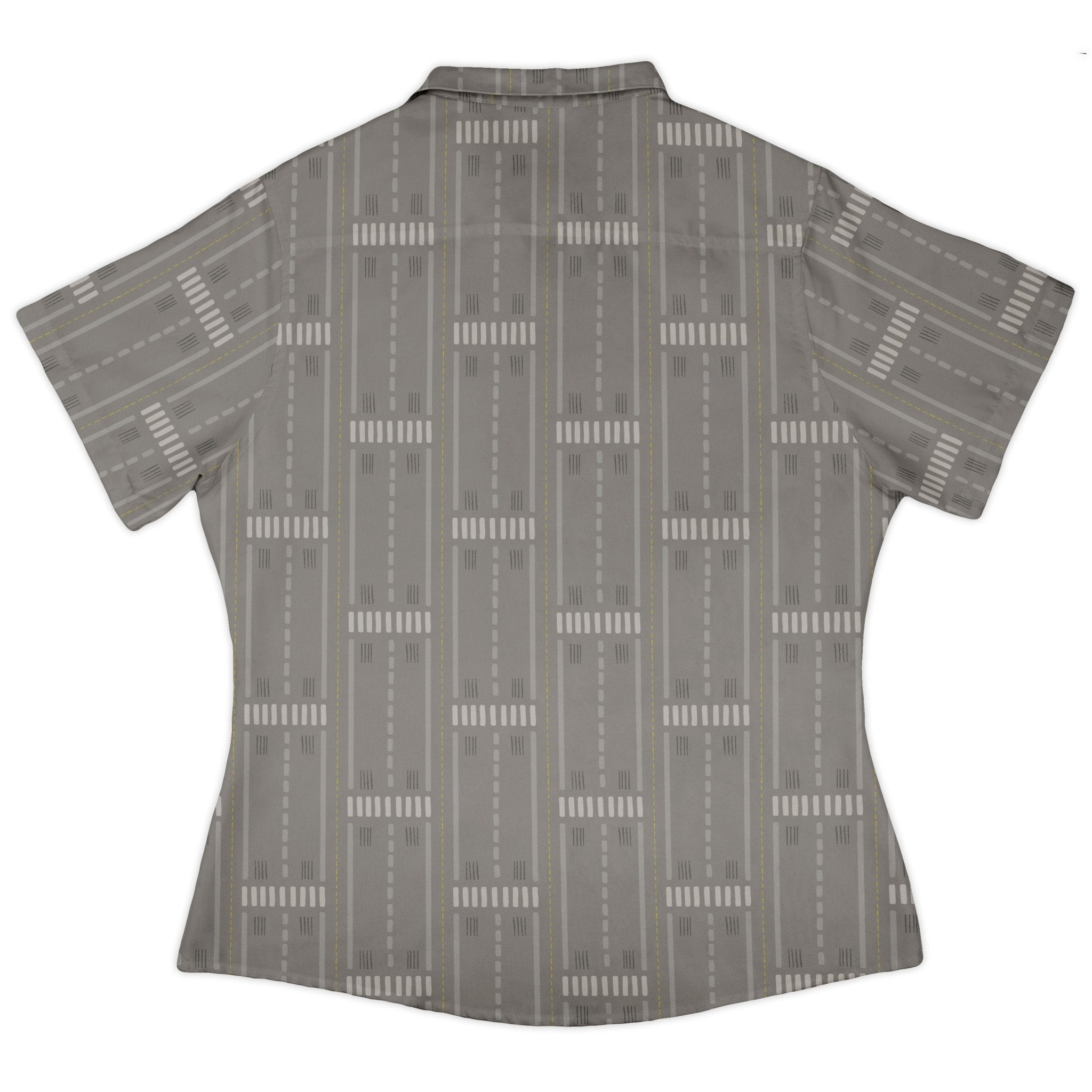 The Runway Stripe Curvy Button Up Shirt taxis in with graphic runway striping for aviation lovers, designed by Zirkus Design. Tailored for curves with a clean, close fit and easy movement, it keeps you polished whether tucked or breezy and untucked. Crisp lines align across the chest pocket for a seamless look, while adjustable sleeves flex your vibe. Printed with eco-minded inks and finished with premium buttons.
