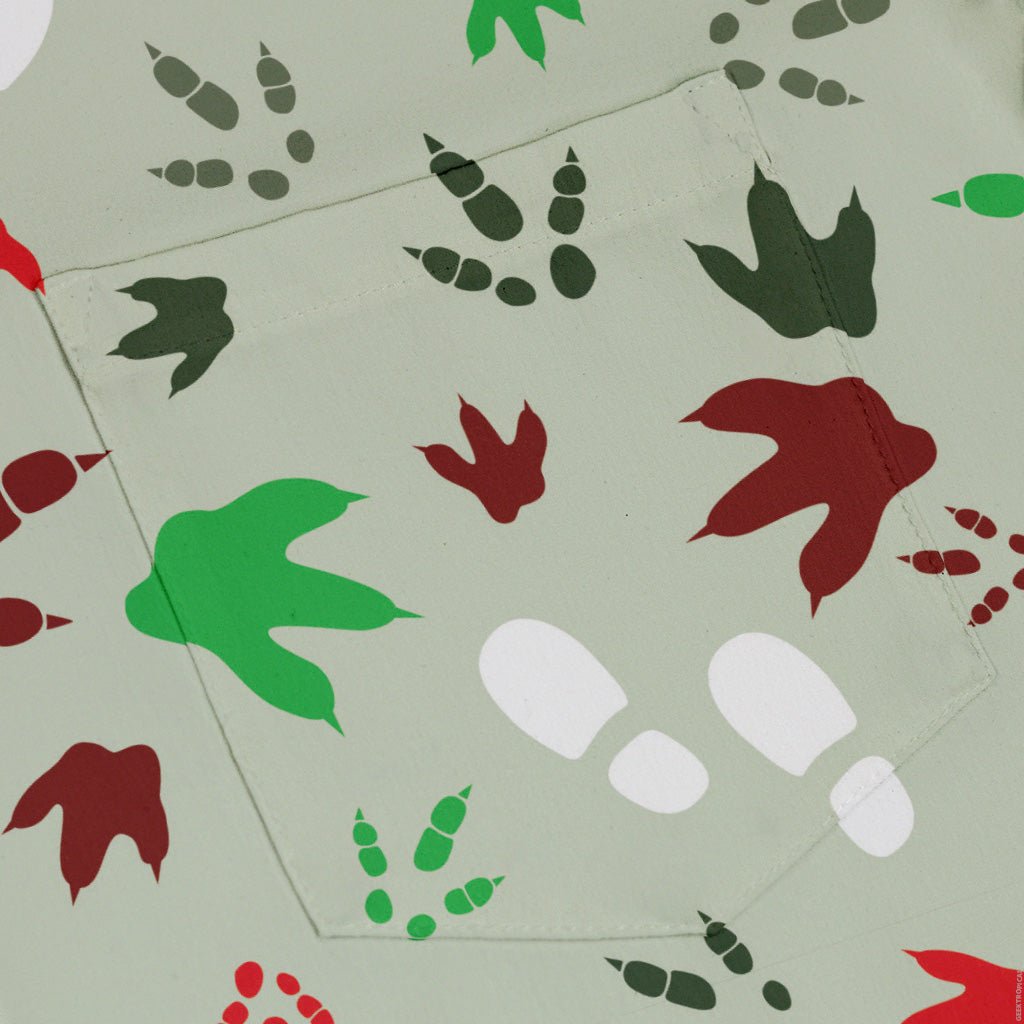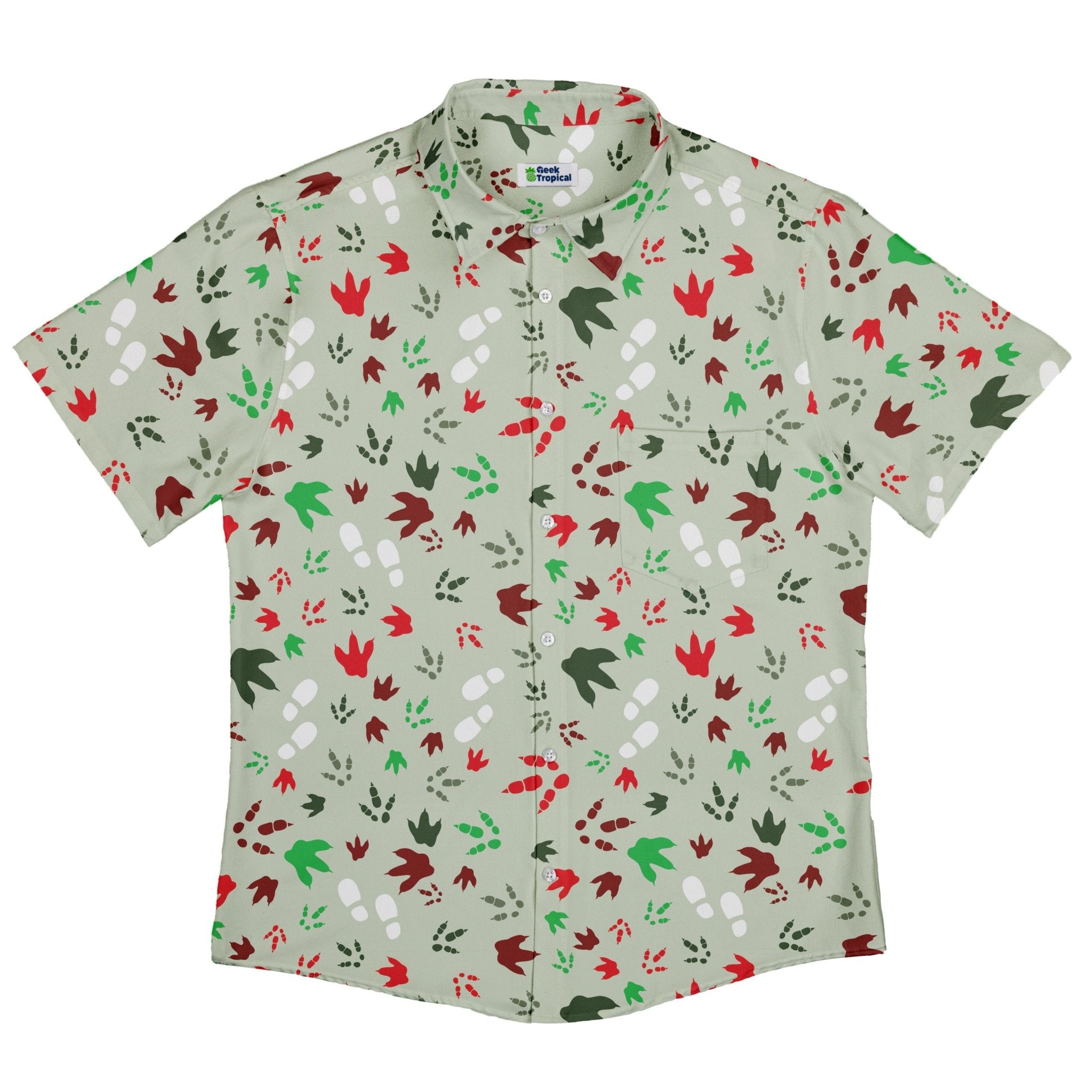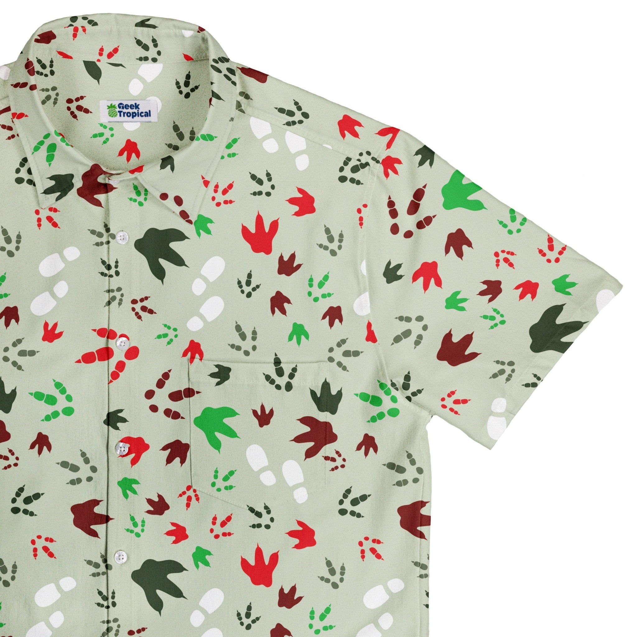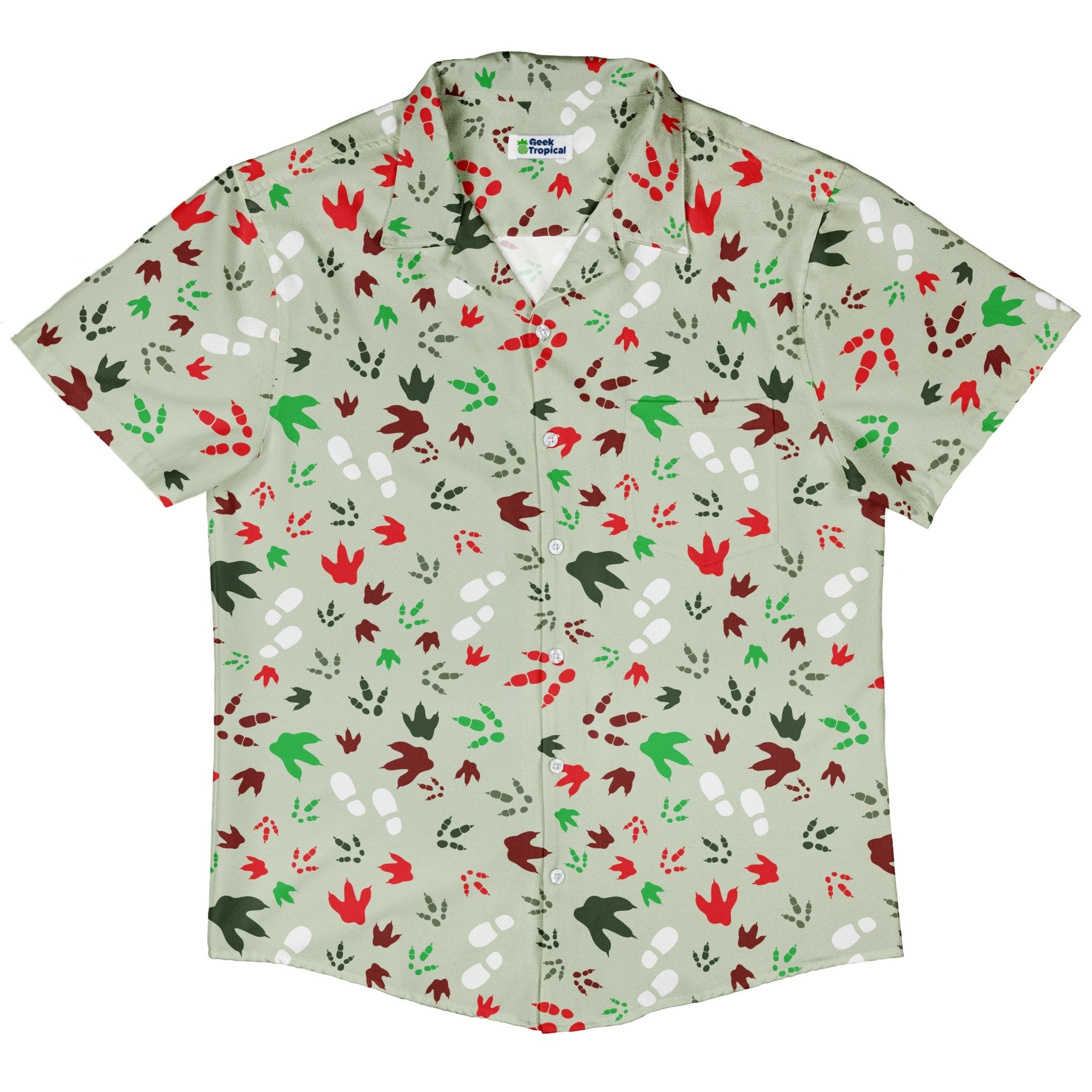 Bring merry mayhem to your wardrobe with the Santa Boots and Dinosaur Footprint Tracks Button Up Shirt, a cheeky mashup of North Pole tradition and paleo-nerd charm. Marching Santa boot prints pair with bold dino tracks that stride cleanly across the front for a polished, pattern-matched look. Festive without the fluff, it levels up holiday parties, museum dates, and cozy movie marathons—artist-backed and ready for adult sizing.