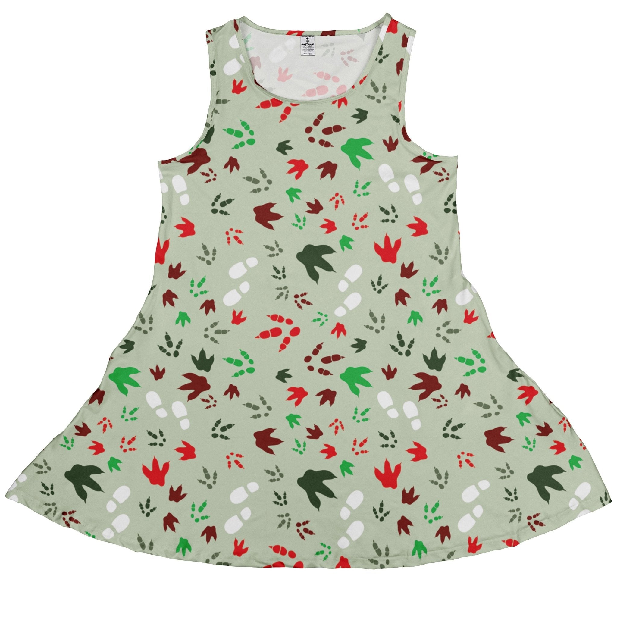 Santa Boots and Dinosaur Footprint Tracks Dress