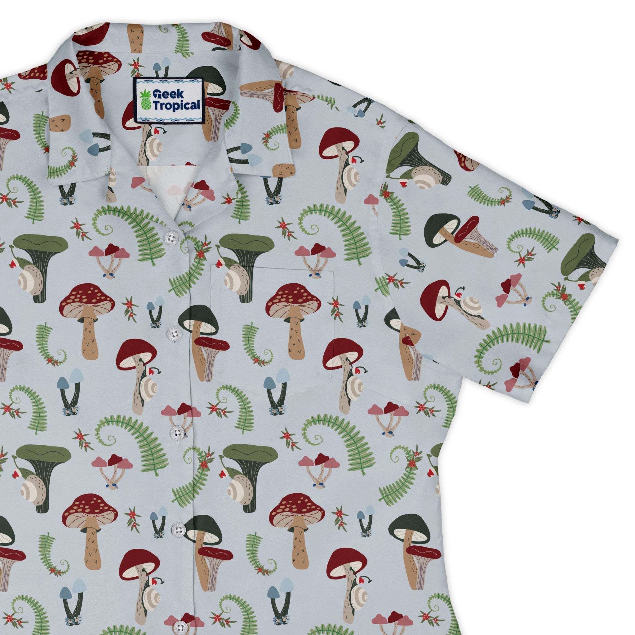 Meet the Santa Snails and winter mushrooms Curvy Button Up Shirt, where geeky holiday joy meets botanical charm. Santa-hatted snails glide between whimsical winter mushrooms in a clean, all-over repeat that reads festive without shouting. Cut for curves with an easy, untucked-friendly drape, it styles up or down in seconds. Distinctive buttons and an artist-backed print make this your cozy, conversation-starting staple.