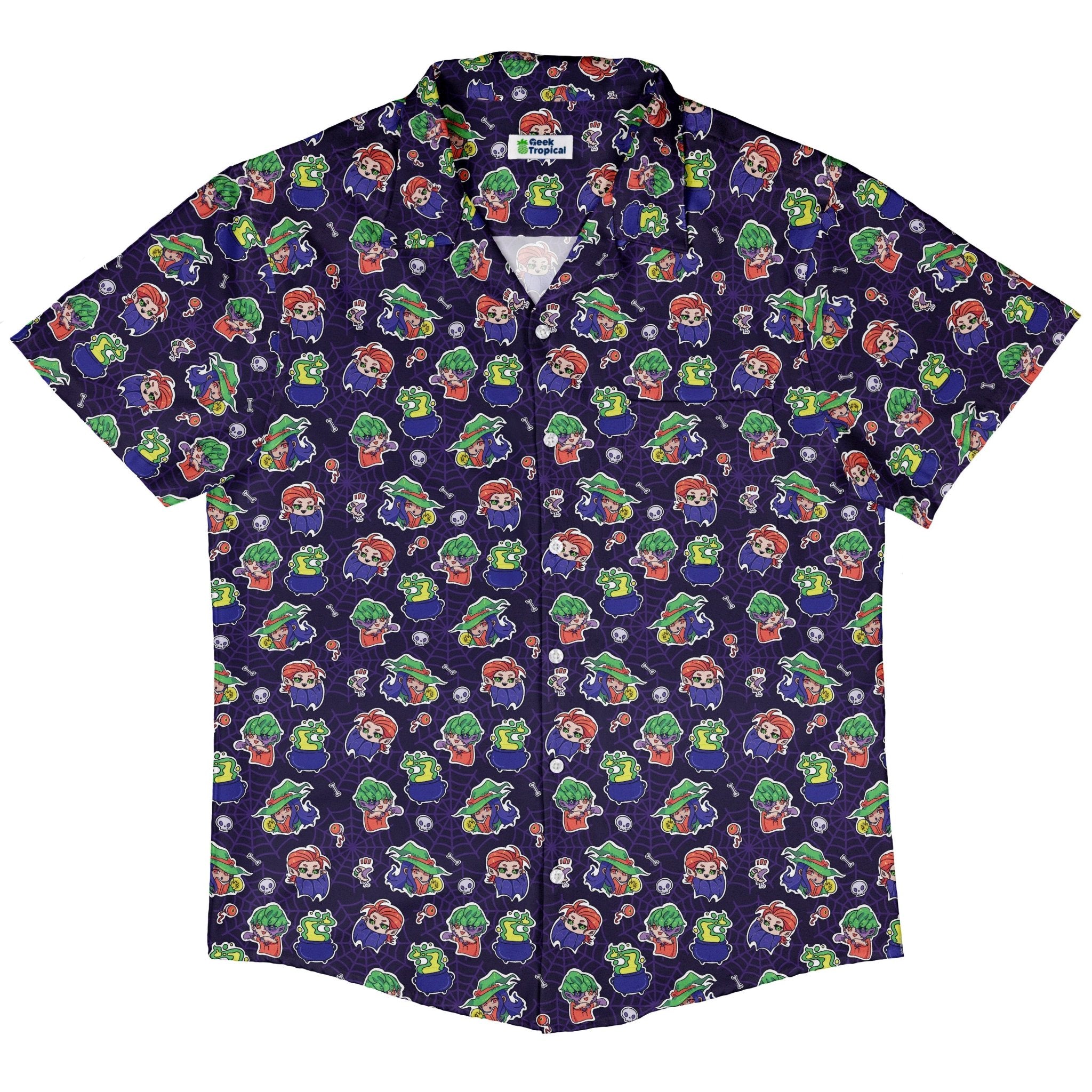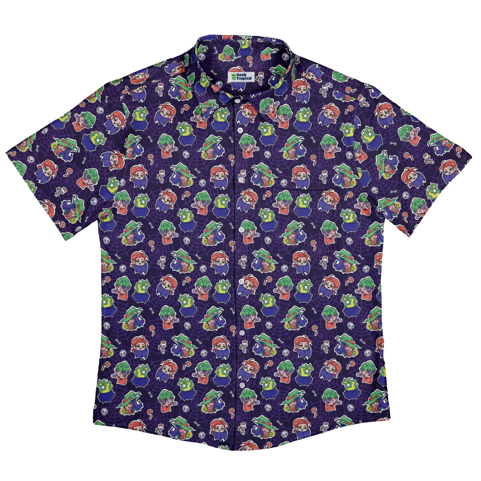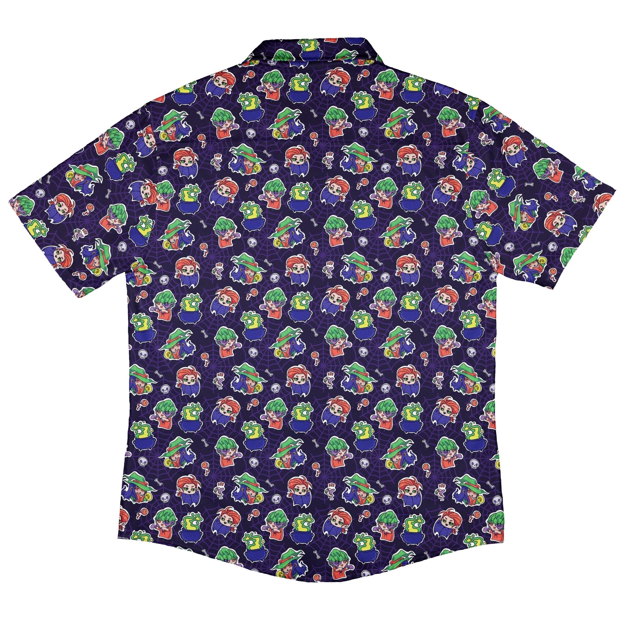 Scary Anime Chibi Stickers Dark Purple Button Up Shirt