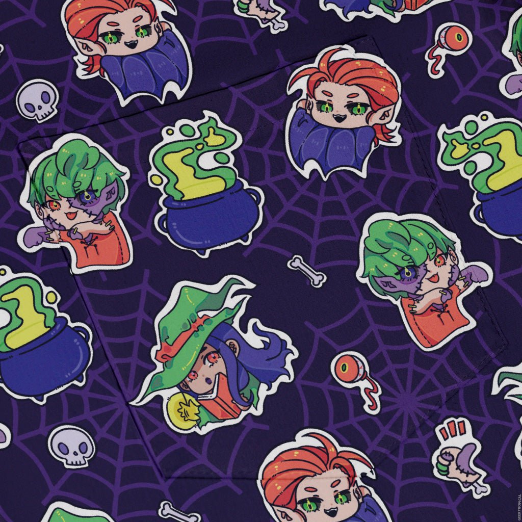 The Scary Anime Chibi Stickers Dark Purple Button Up Shirt turns creepy-cute energy into everyday style. A moody violet backdrop is packed with sticker-style chibi faces and motifs, outlined to pop like a fresh sticker sheet. The all-over print lines up cleanly across the placket and optional pocket for a seamless look. Designed by Ardi Tong, this artist-backed shirt serves spooky-meets-kawaii from office hours to late-night anime marathons.