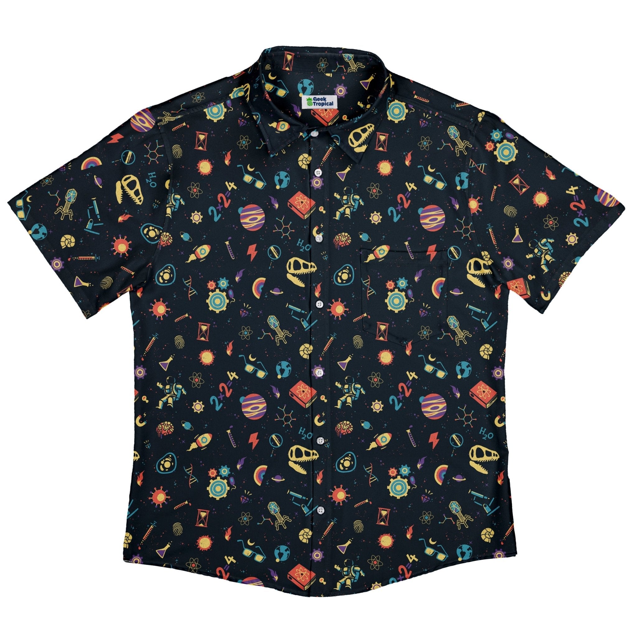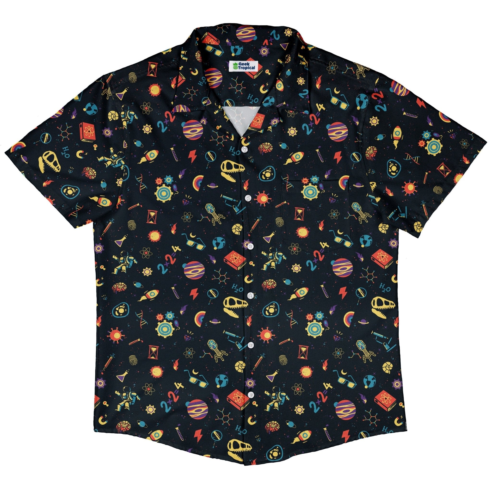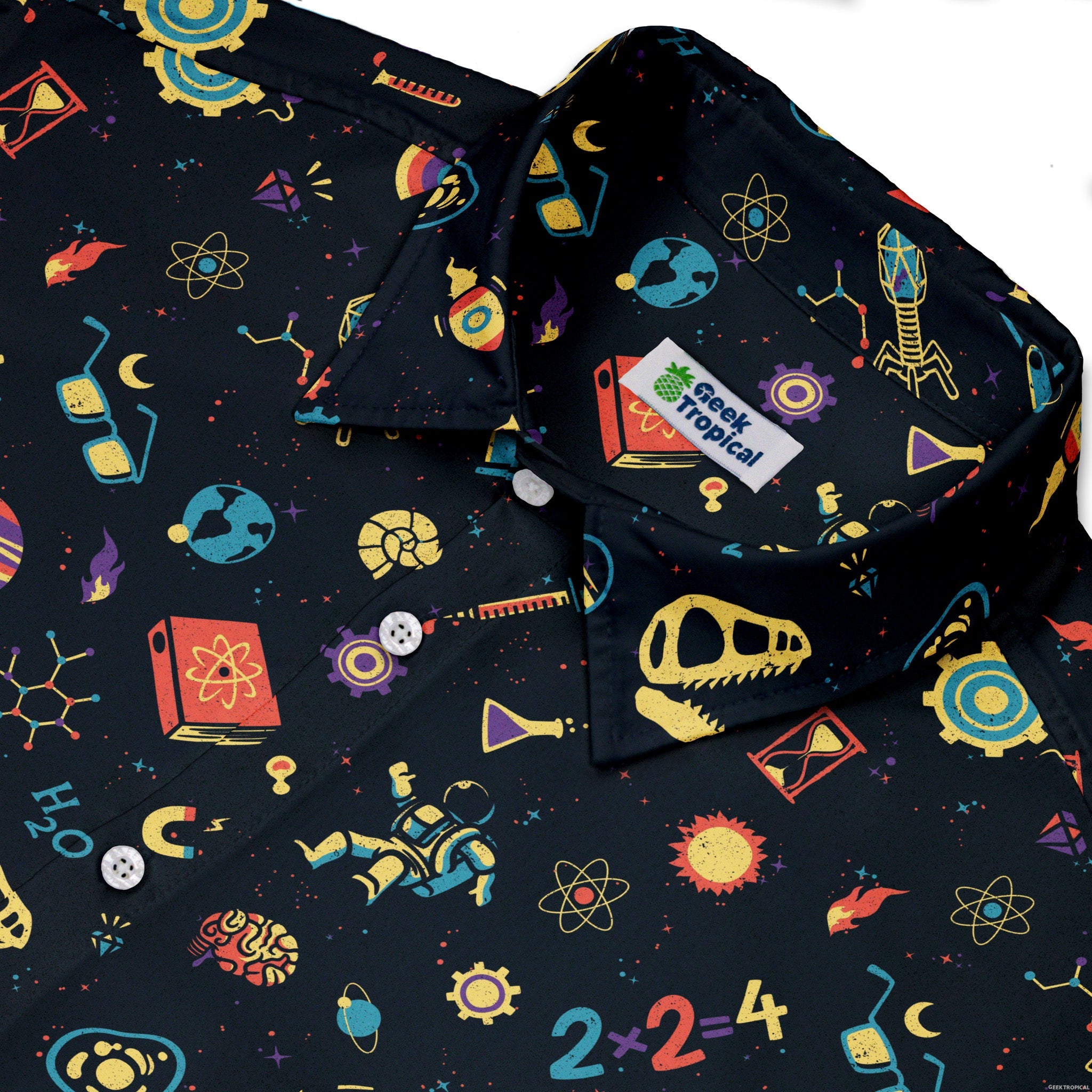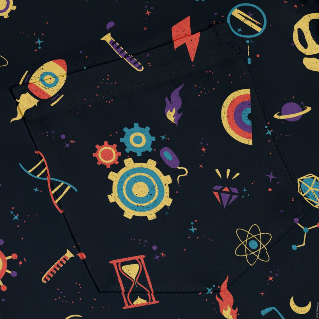 Meet the Science Love Button Up Shirt, a smart-casual ode to geeky romance. An all-over science print rendered in crisp line art balances playful detail with a clean, modern repeat, reading clever up close and sharp from afar. The artwork lines up neatly across the front and pocket for a polished look. Designed by Tobe Fonseca and artist-backed, it’s ready for office hours, lab walks, and date night alike.