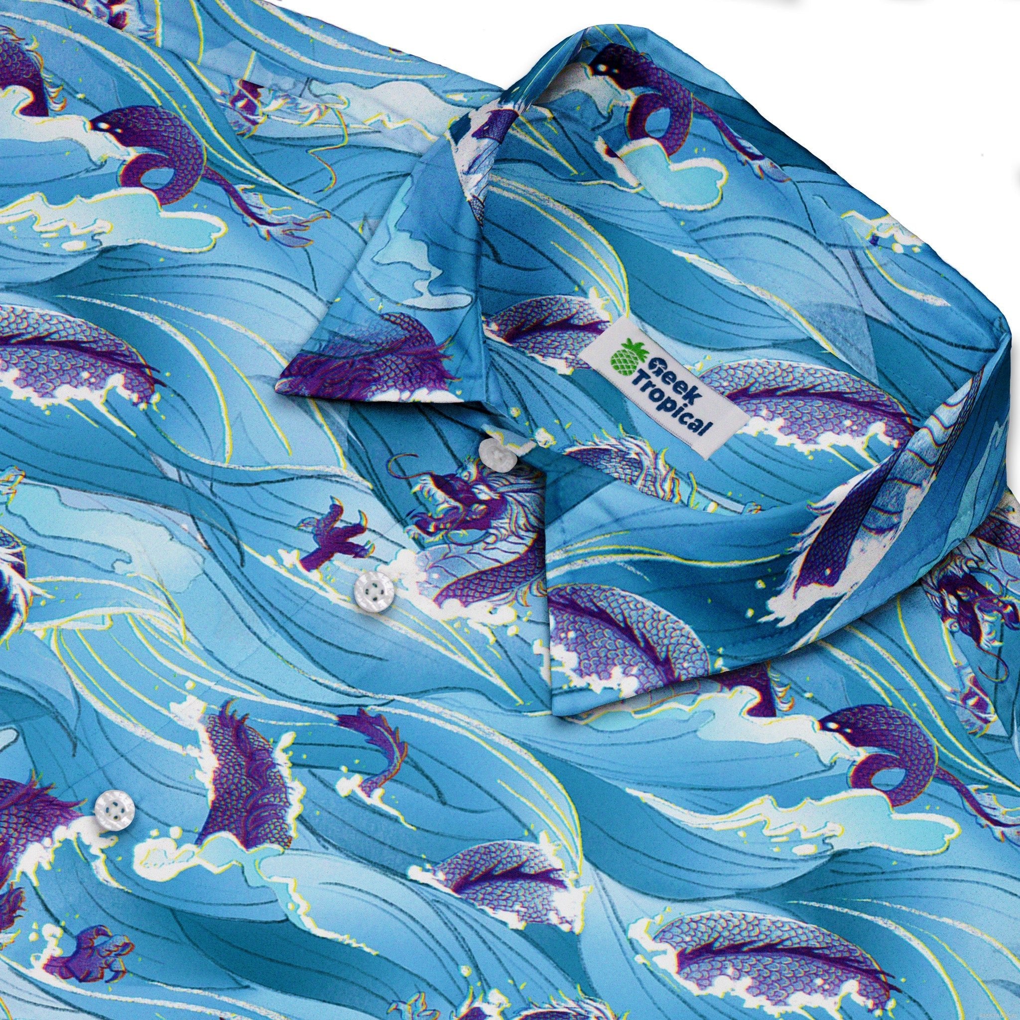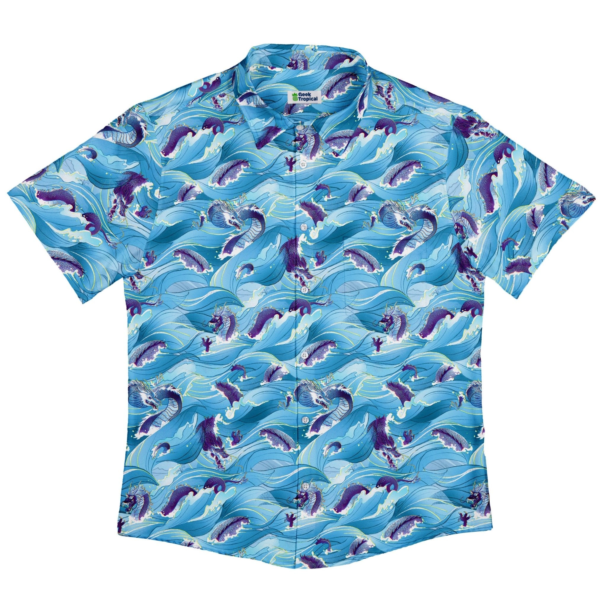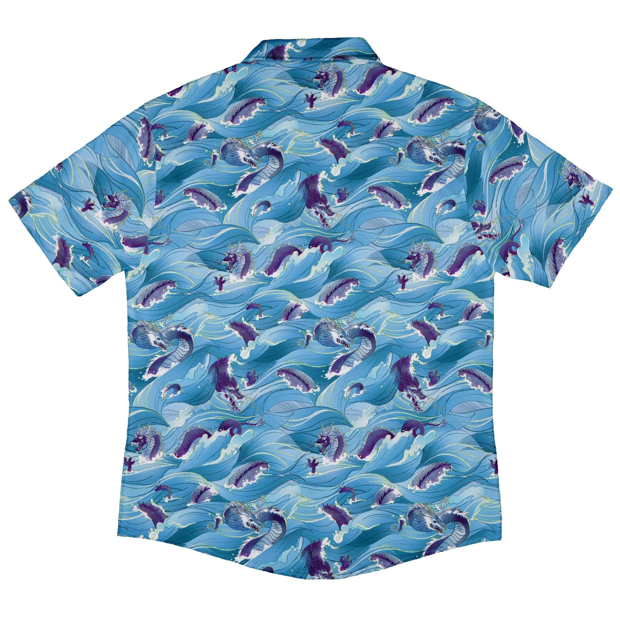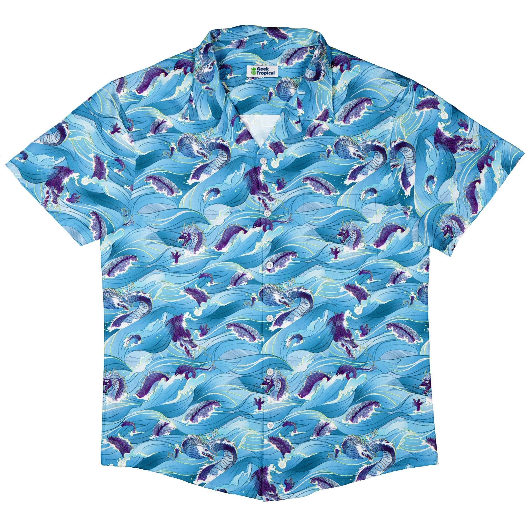 Dive into myth with the Serpent of the Sea Blue Anime Button Up Shirt. A sinuous sea serpent weaves through rolling blue waves, rendered in crisp anime linework and luminous aqua highlights. Art by Claire Murphy flows cleanly across the front for a seamless vibe, while the lightweight wear keeps you chill from con floor to coastline. Artist-backed and printed with planet-kind inks.