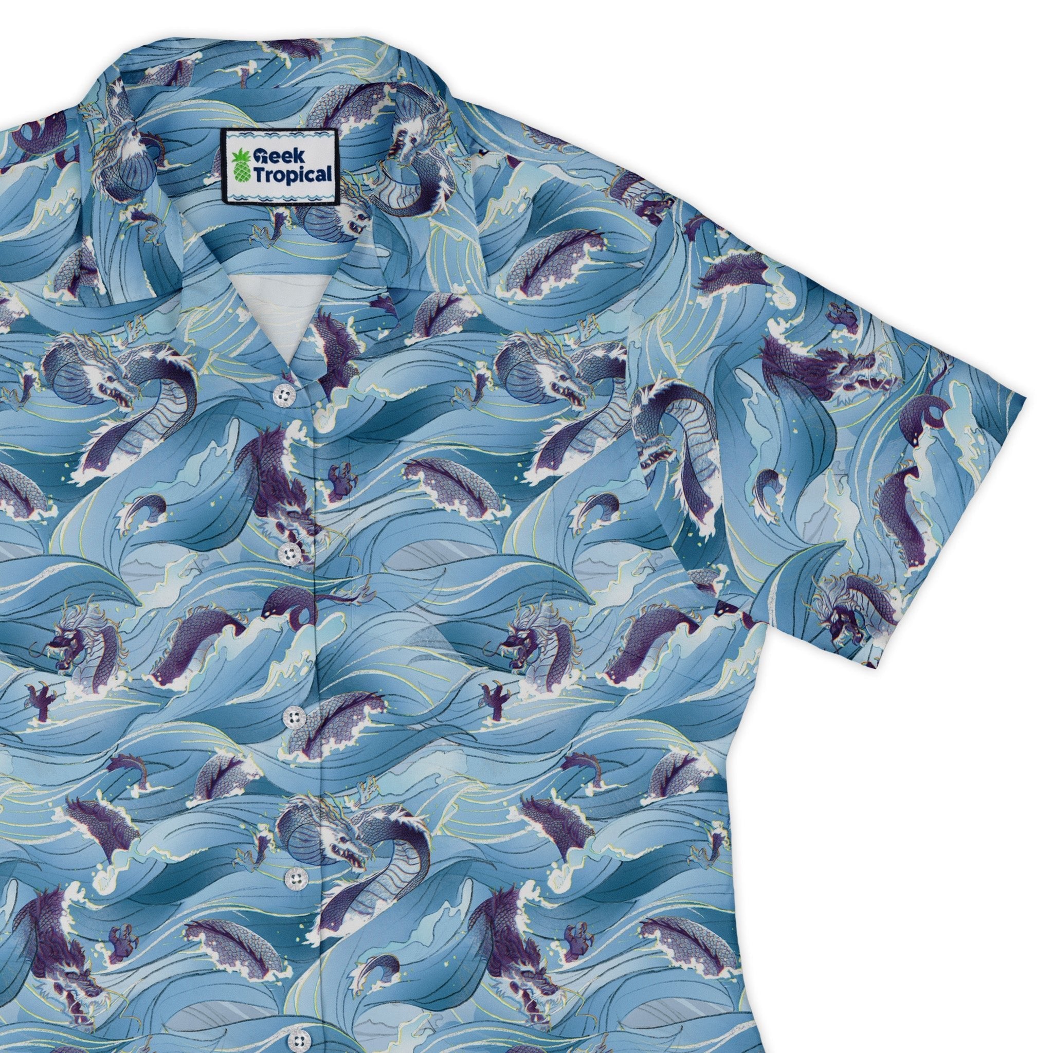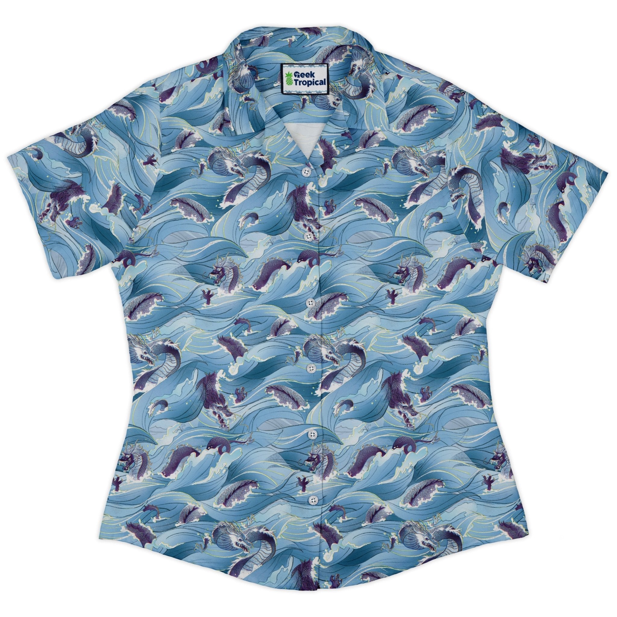 Serpent of the Sea Blue Anime Curvy Button Up Shirt