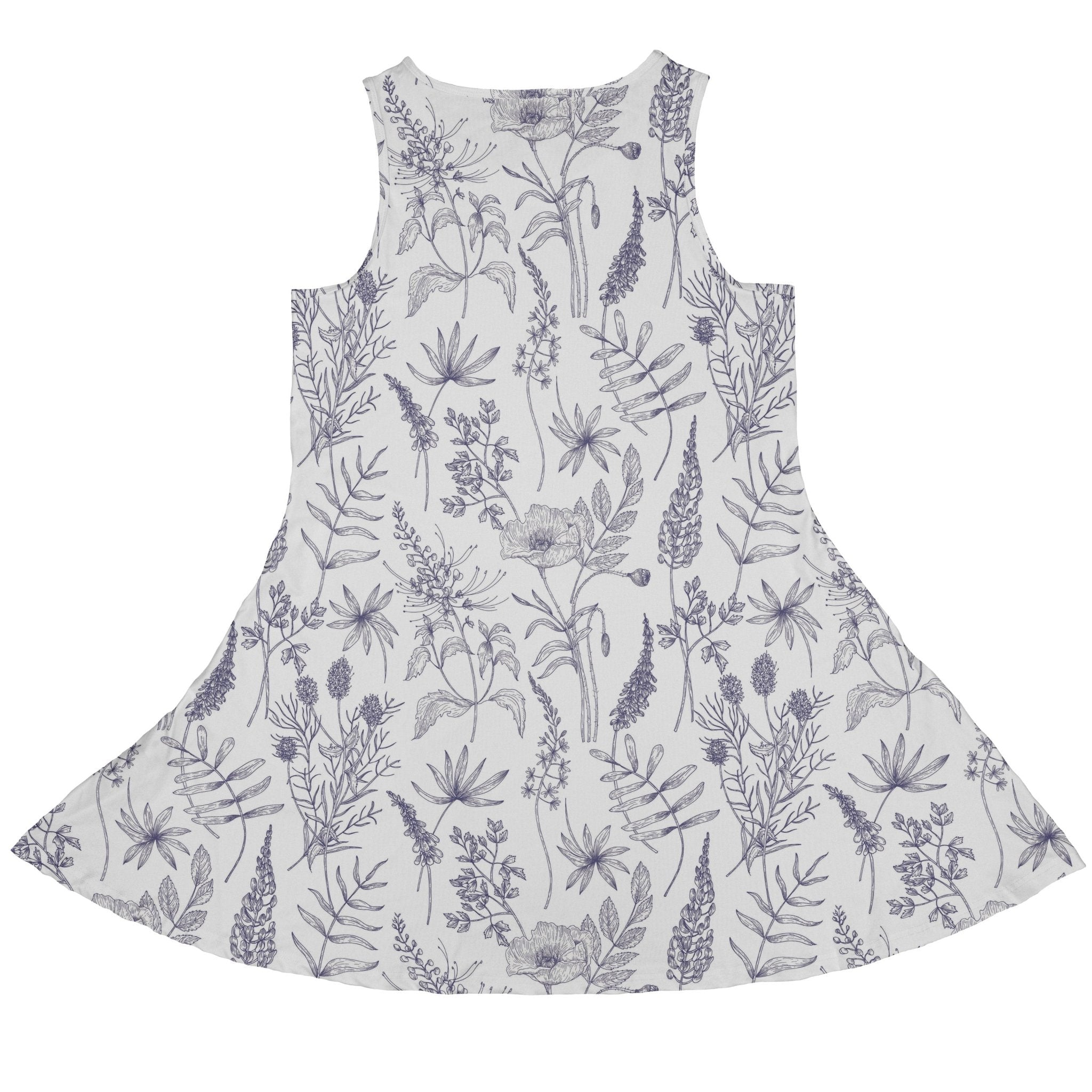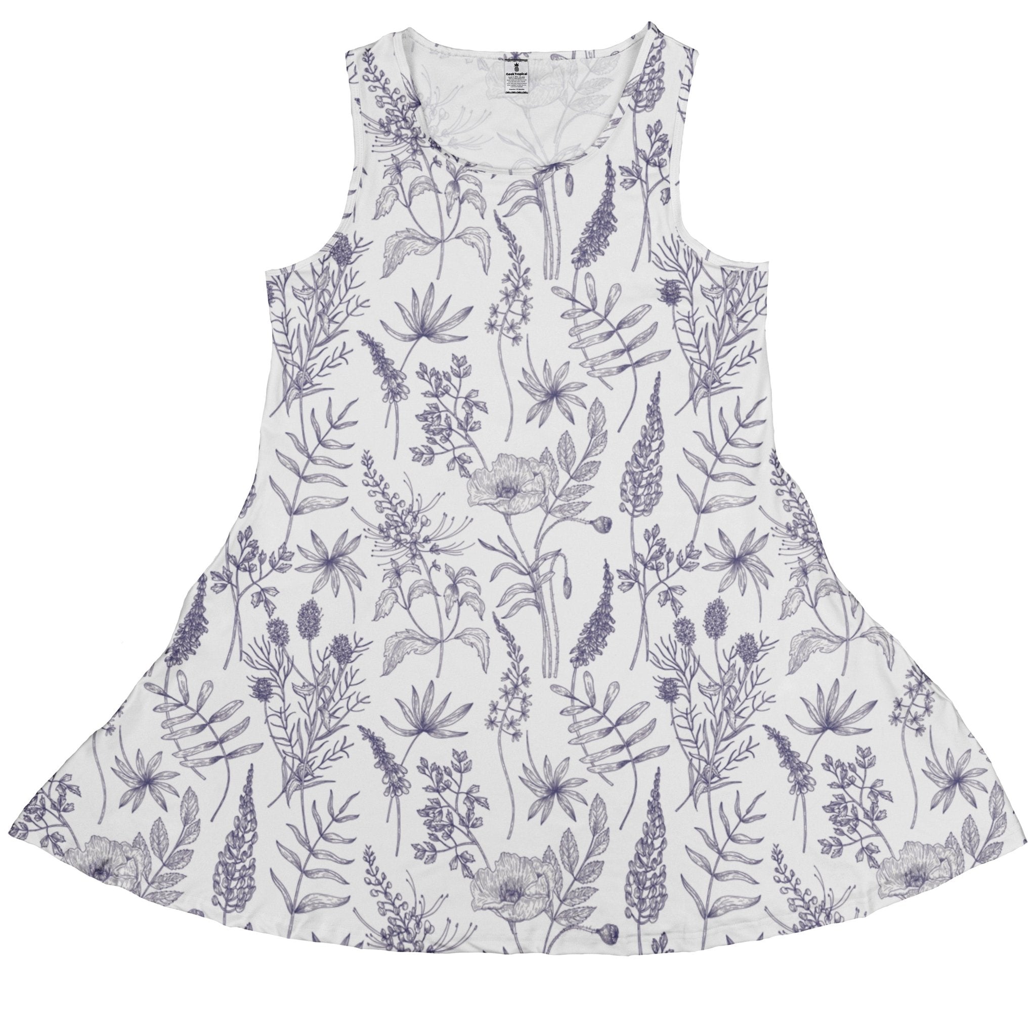 The Simple Botany Flowers Herbs White Blue Dress celebrates your inner herbarium nerd with crisp cobalt line art on a bright white canvas. Delicate stems, tiny blossoms, and leafy sprigs create a clean, repeating pattern that reads like field notes—only wearable. Moves with you, stays opaque, and packs legit side pockets big enough for real-world gear (yes, even a controller). Artist-backed style for coffee runs, conventions, and plant swaps.