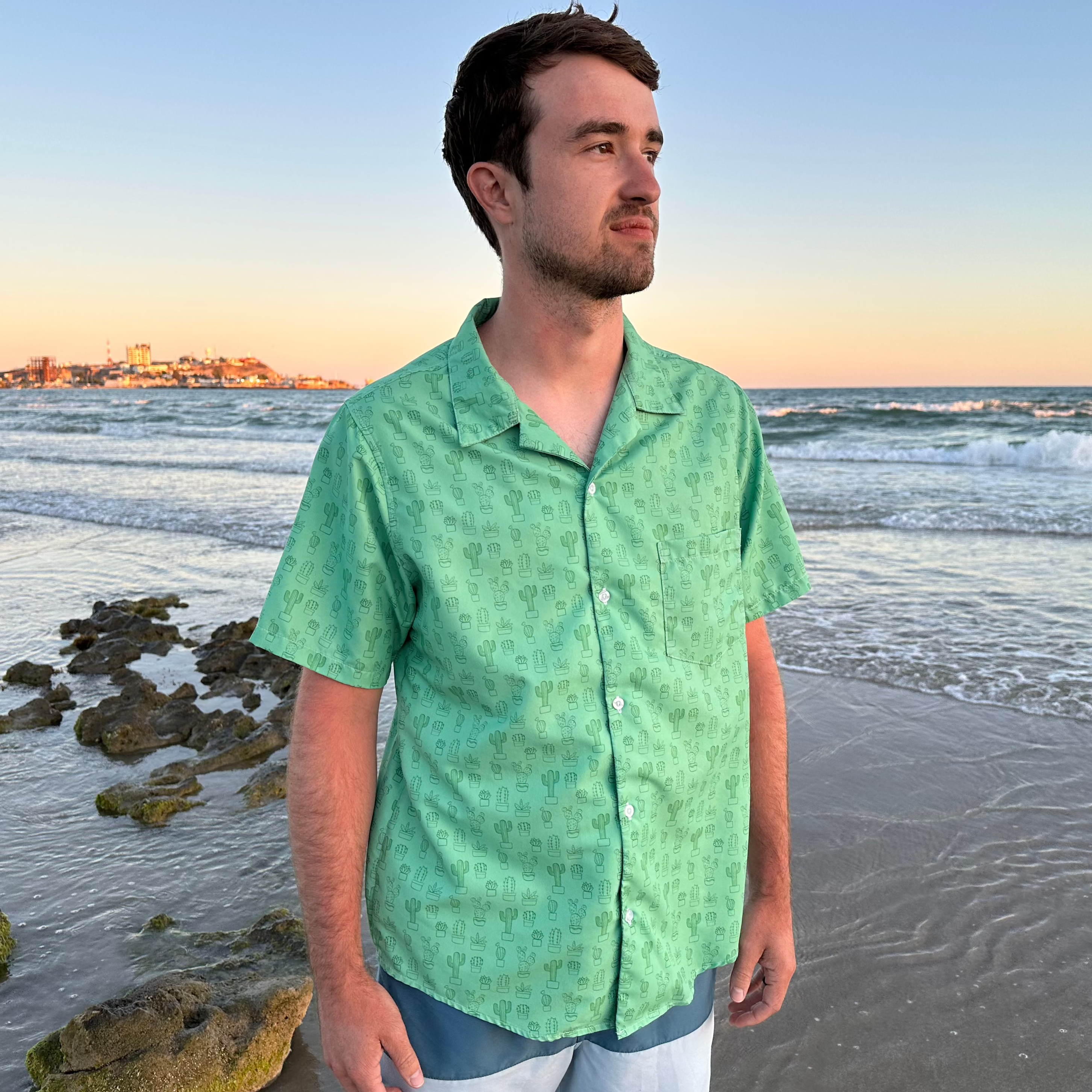 Simple Cactus Button Up Shirt is your low-key love letter to botany. Tiny, tidy cacti march across a crisp, neutral backdrop in a clean repeat, striking that sweet spot between playful and polished. The print mirrors neatly across the front, with the placket and optional pocket pattern-matched for a seamless look. Built for all-day hangouts, con floor strolls, and breezy date nights—casual, smart, and delightfully prickly-free.