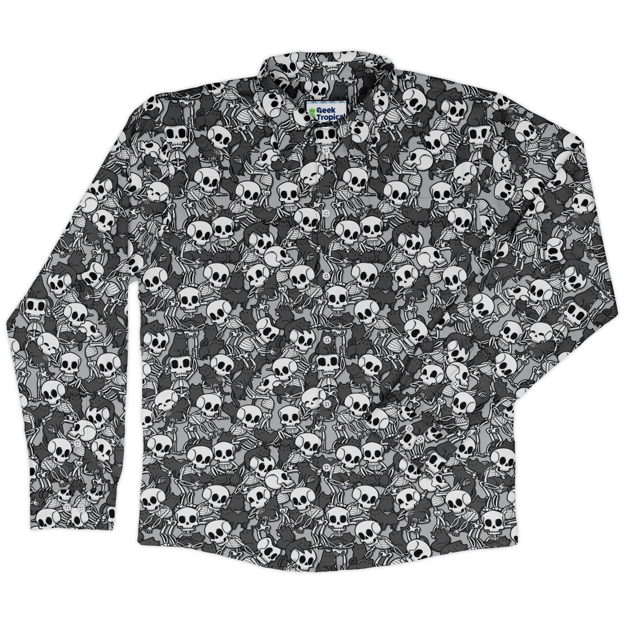 Skeleton Cat Love Long Sleeve Button Up Shirt