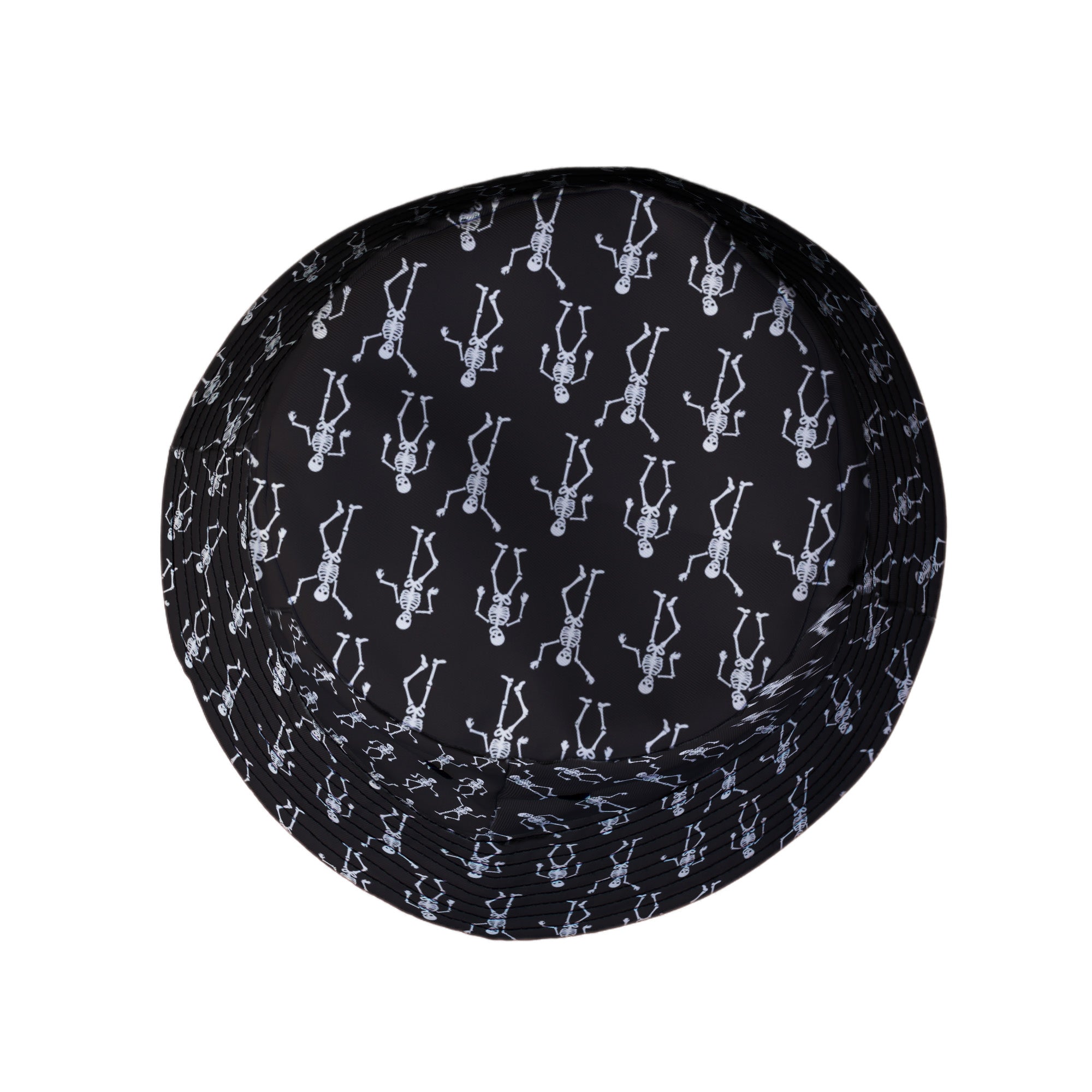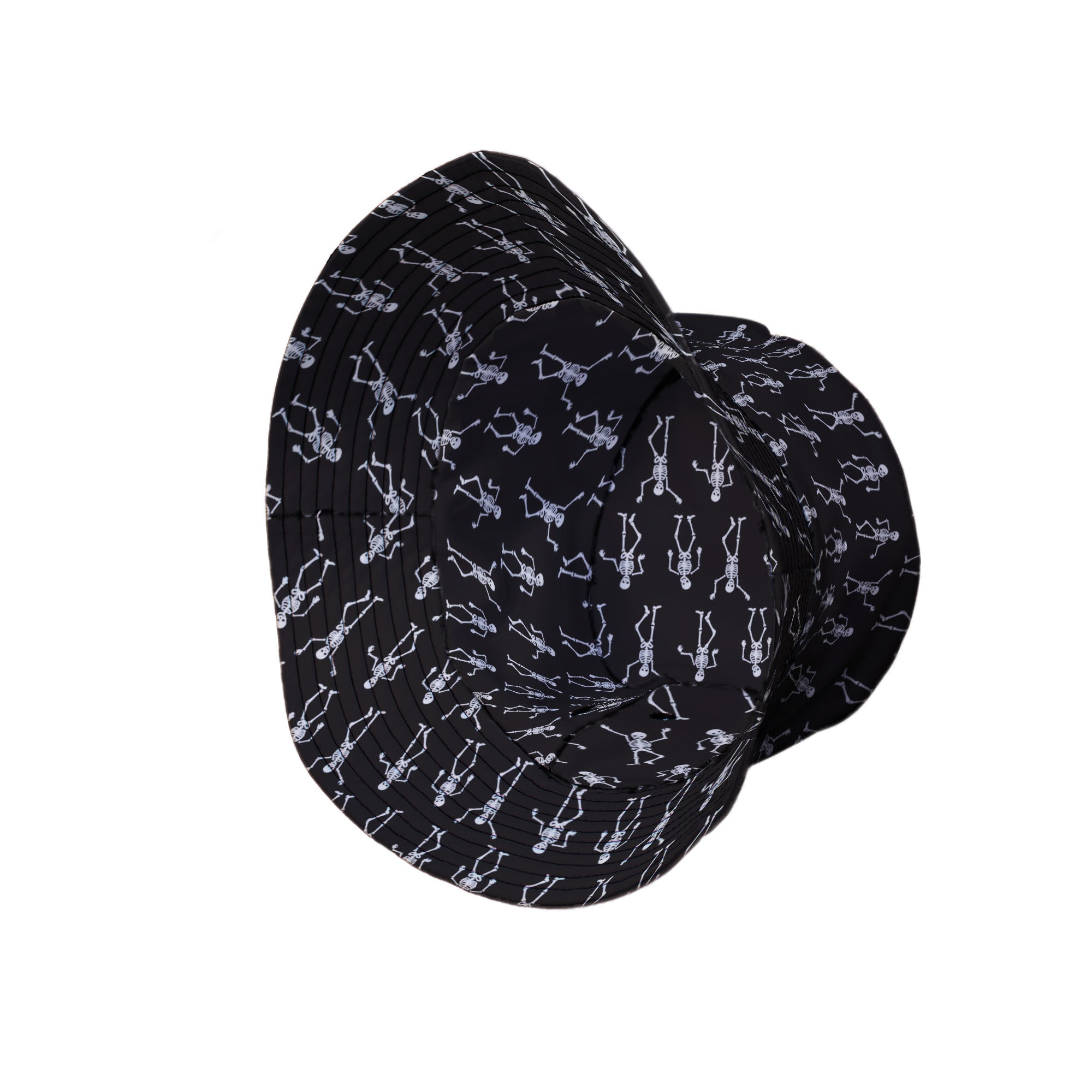 Skeleton Hanging Bucket Hat brings sly spooky energy to sunny days. Designed by Heather Davenport, it showcases playful line‑art skeletons hanging in a looping pattern around the crown and brim, delivering Halloween flair without going full costume. Clean top‑stitch lines give it a crisp finish. Artist‑backed, geek‑approved headwear that pairs with your favorite fits.