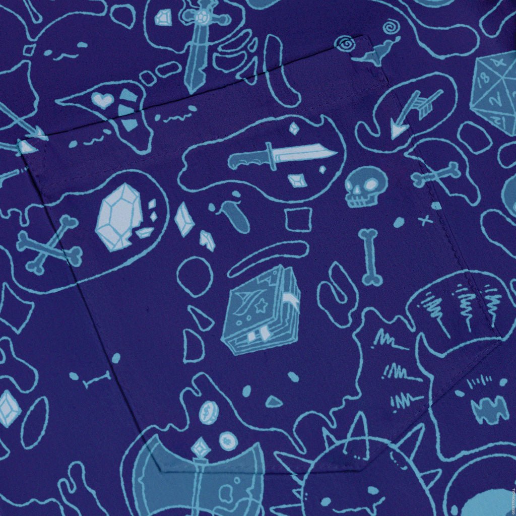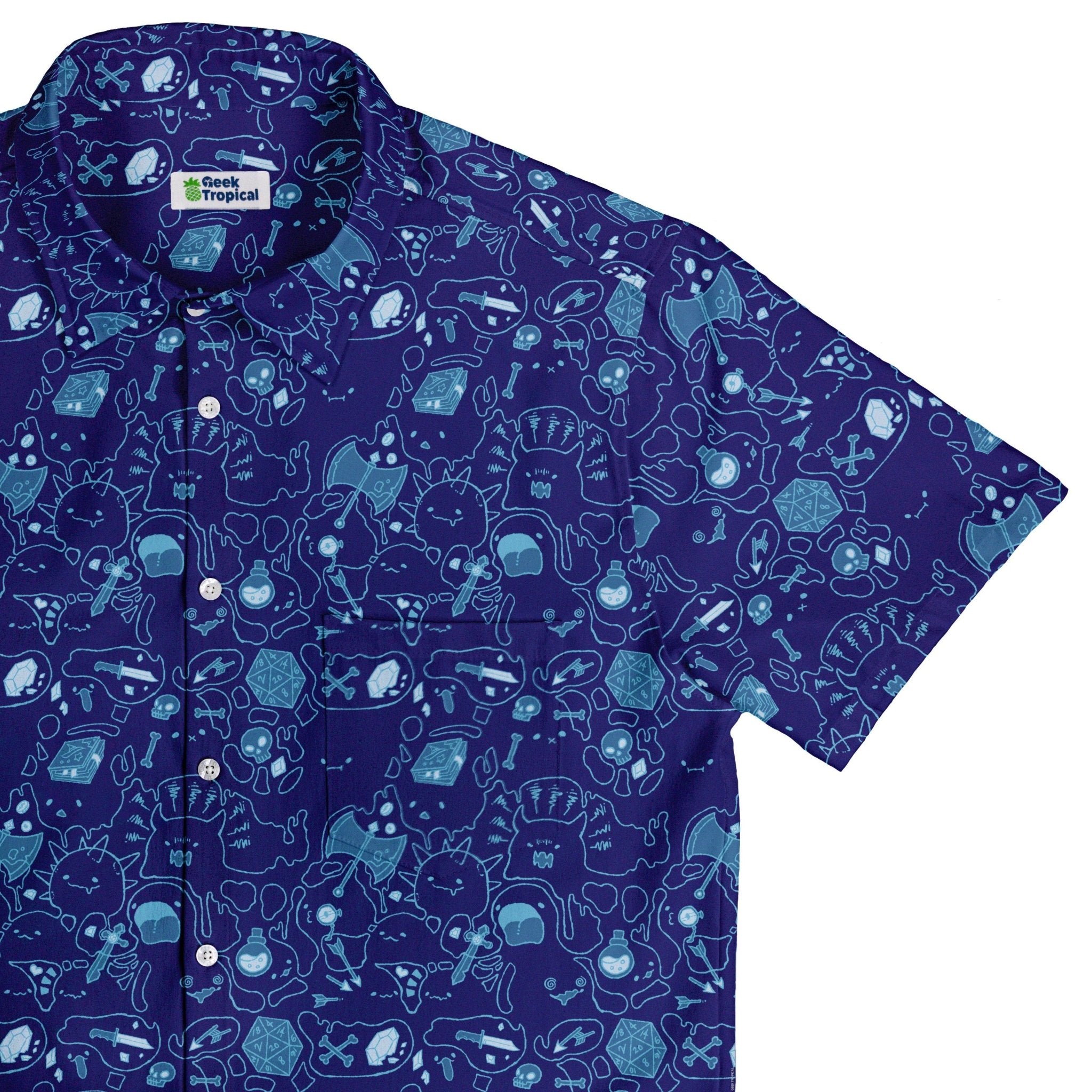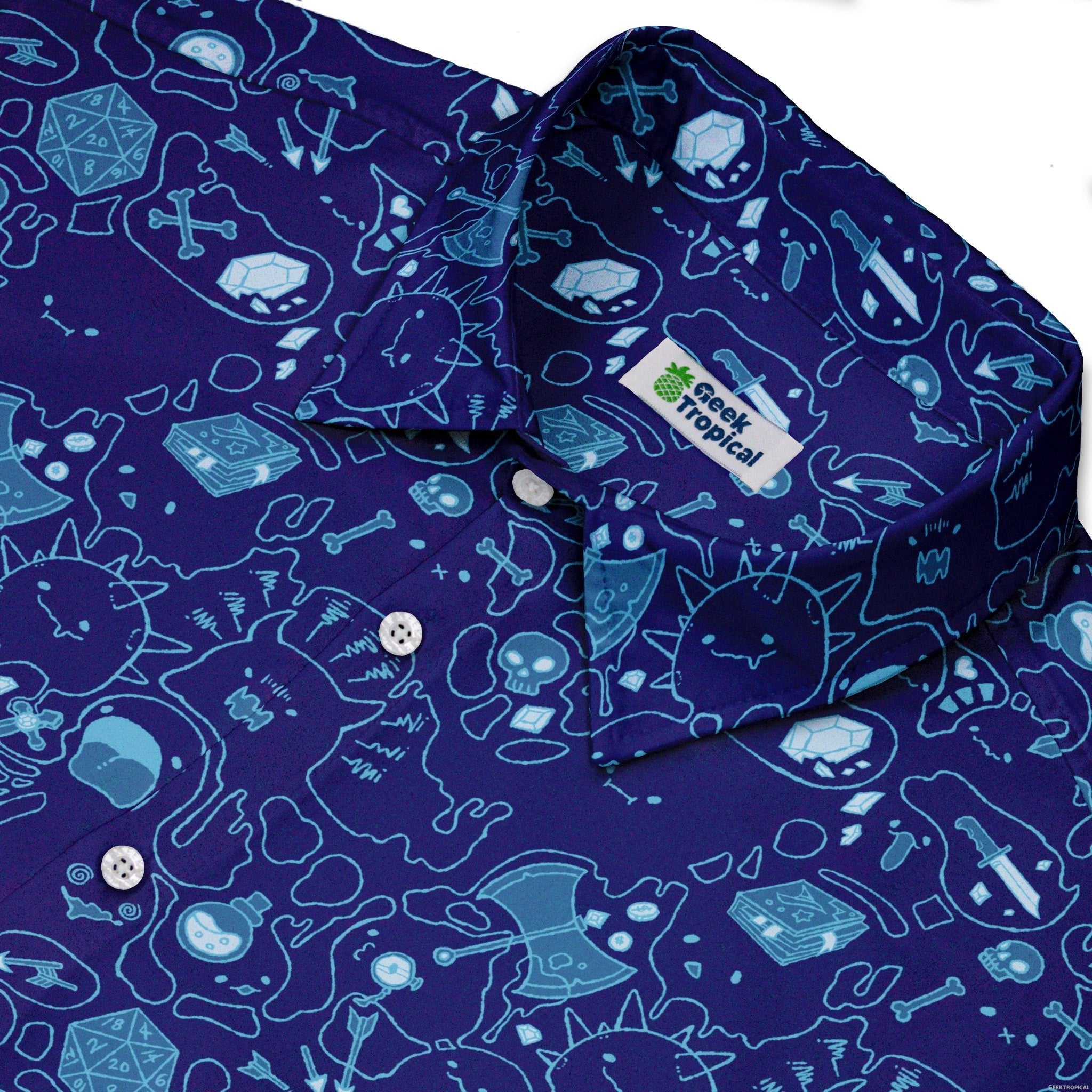 The Slime Cube Bioluminescence Button Up Shirt channels dungeon-crawl vibes into crisp, everyday wear. Translucent slime cubes glow in neon teals and ocean blues over a deep, inky backdrop, with soft gradients, suspended bubbles, and a subtle starfield shimmer. A confident nod to Dnd nights without shouting about it. Designed by Ardi Tong—artist-made, geek-approved, and ready for adult sizing adventures.
