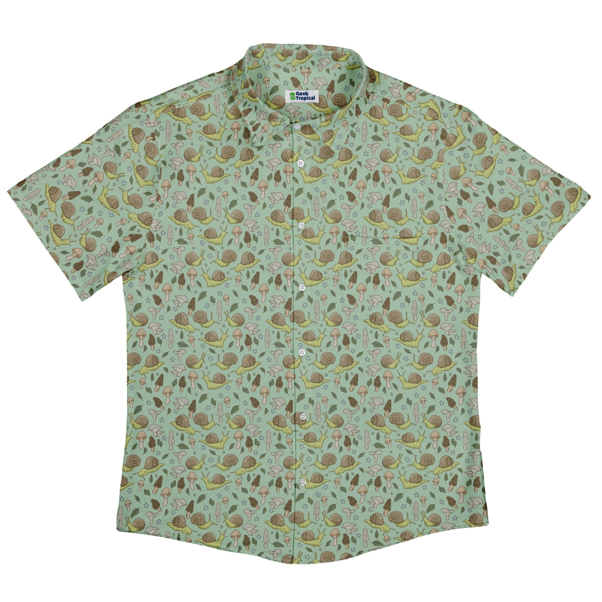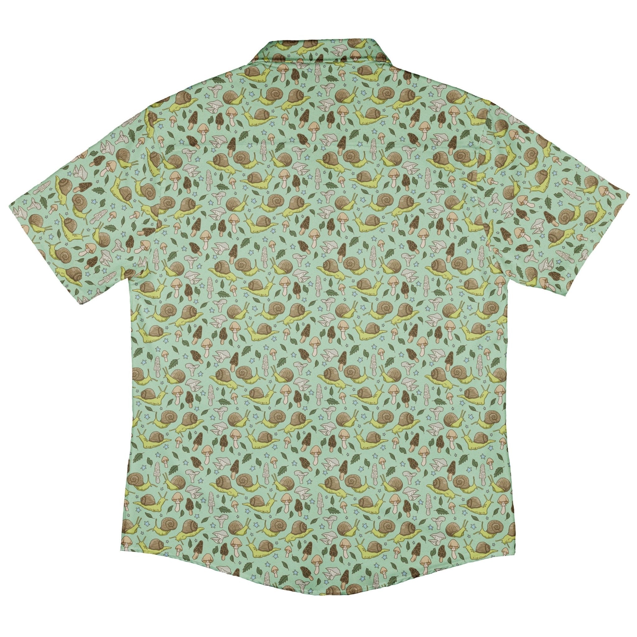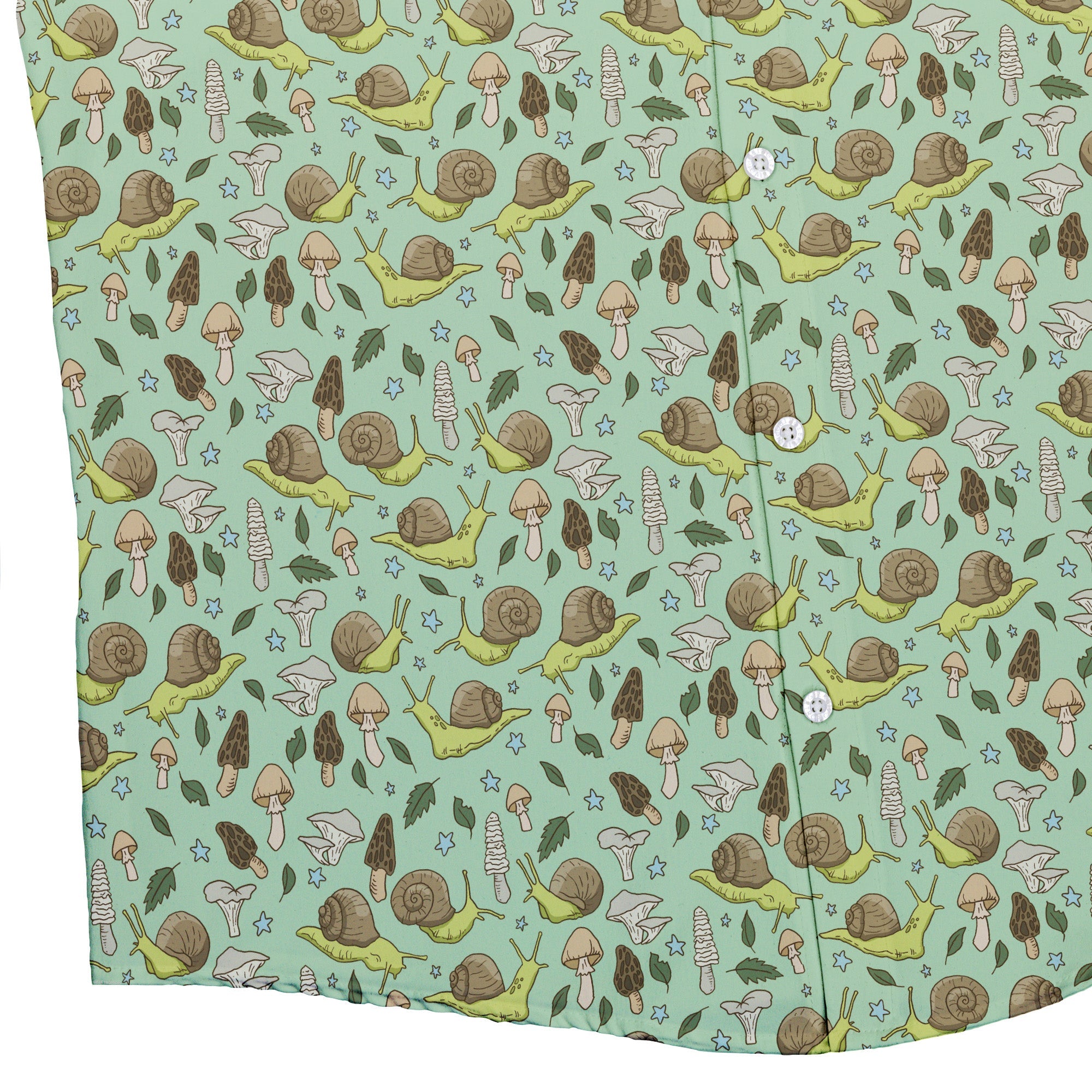 The Slow Spore Trail Button Up Shirt drifts through a mycology daydream: illustrated mushroom caps, airy spore constellations, and slow, meandering trails weaving a tiny forest narrative across the fabric. Designed by Julie Kitzes, it mixes botany-nerd charm with playful, creature-forward energy. Artist-backed and printed with eco-conscious inks, it turns everyday wear into a field note you can button up.