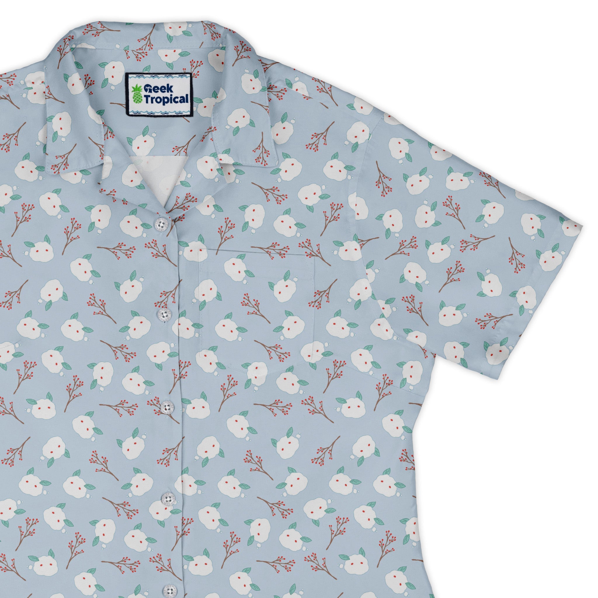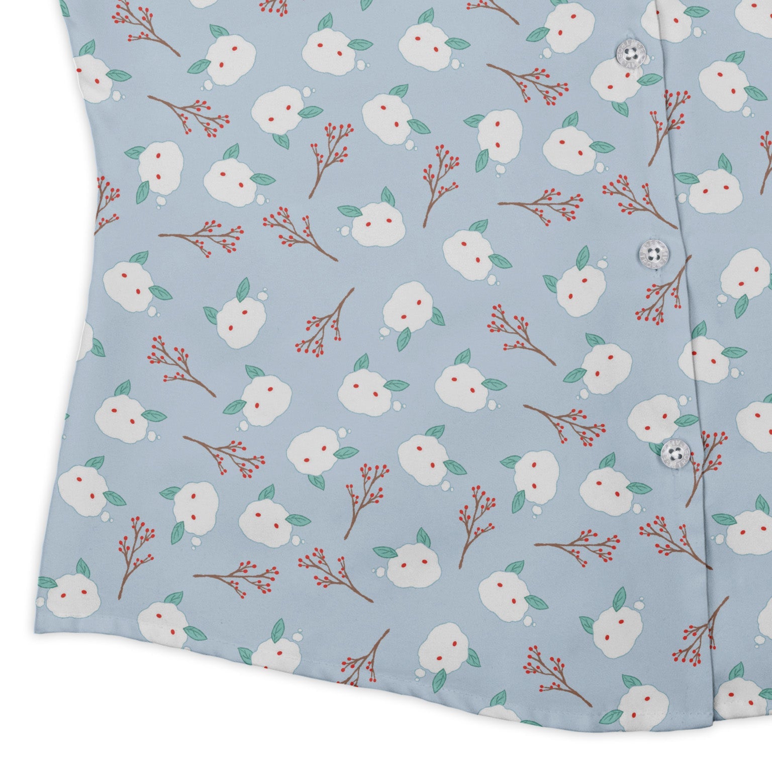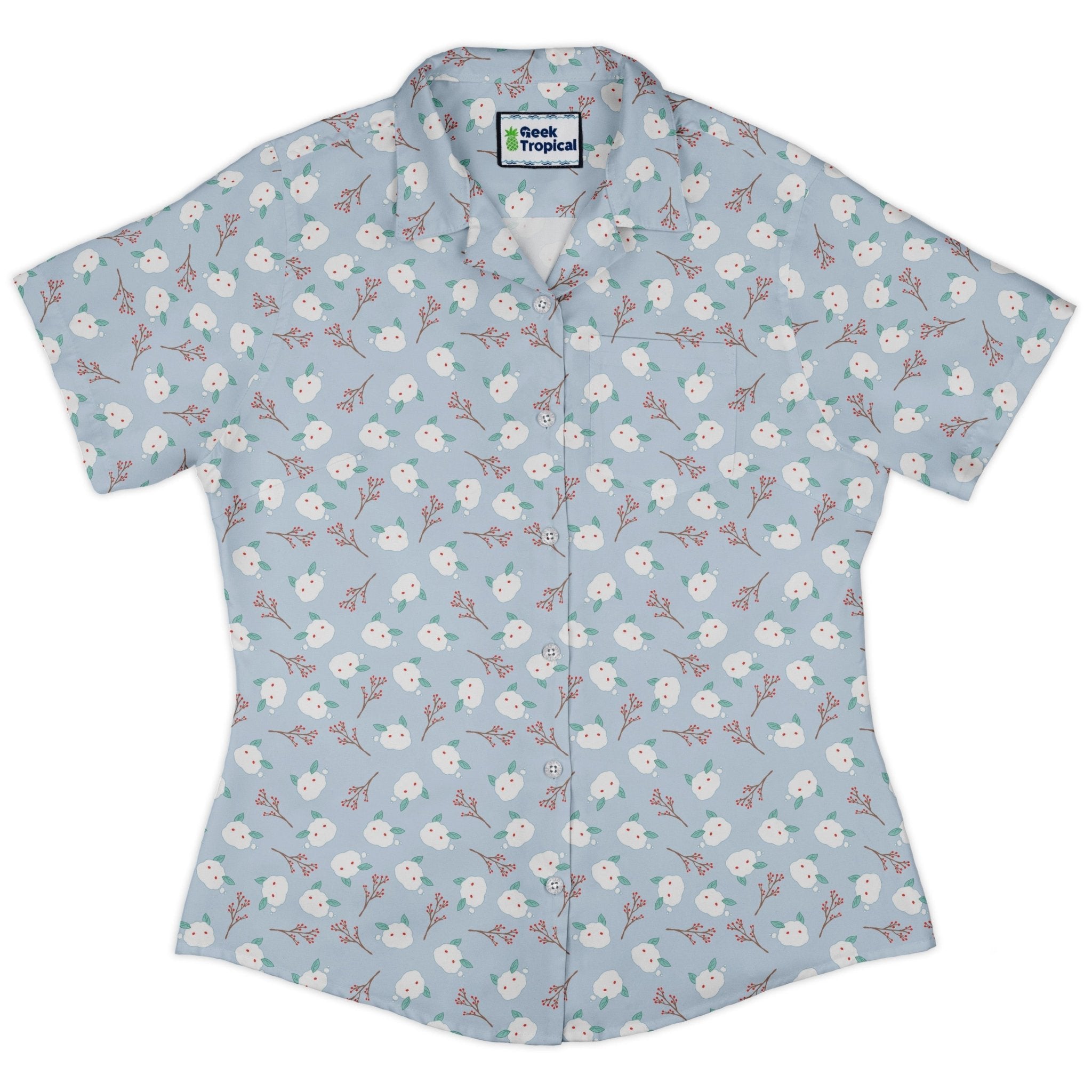 Snow Bunnies Curvy Button Up Shirt brings cozy holiday anime energy to your wardrobe, cut for curves and everyday swagger. An allover pattern of snow-loving bunnies and drifting flakes pops in a wintery palette, with the print aligning cleanly over the placket and chest pocket for a seamless look. Style the sleeves neat or relaxed. Designed by Ardi Tong and printed with eco-conscious inks, this artist-backed piece levels up festive fits from office party to cozy game night.