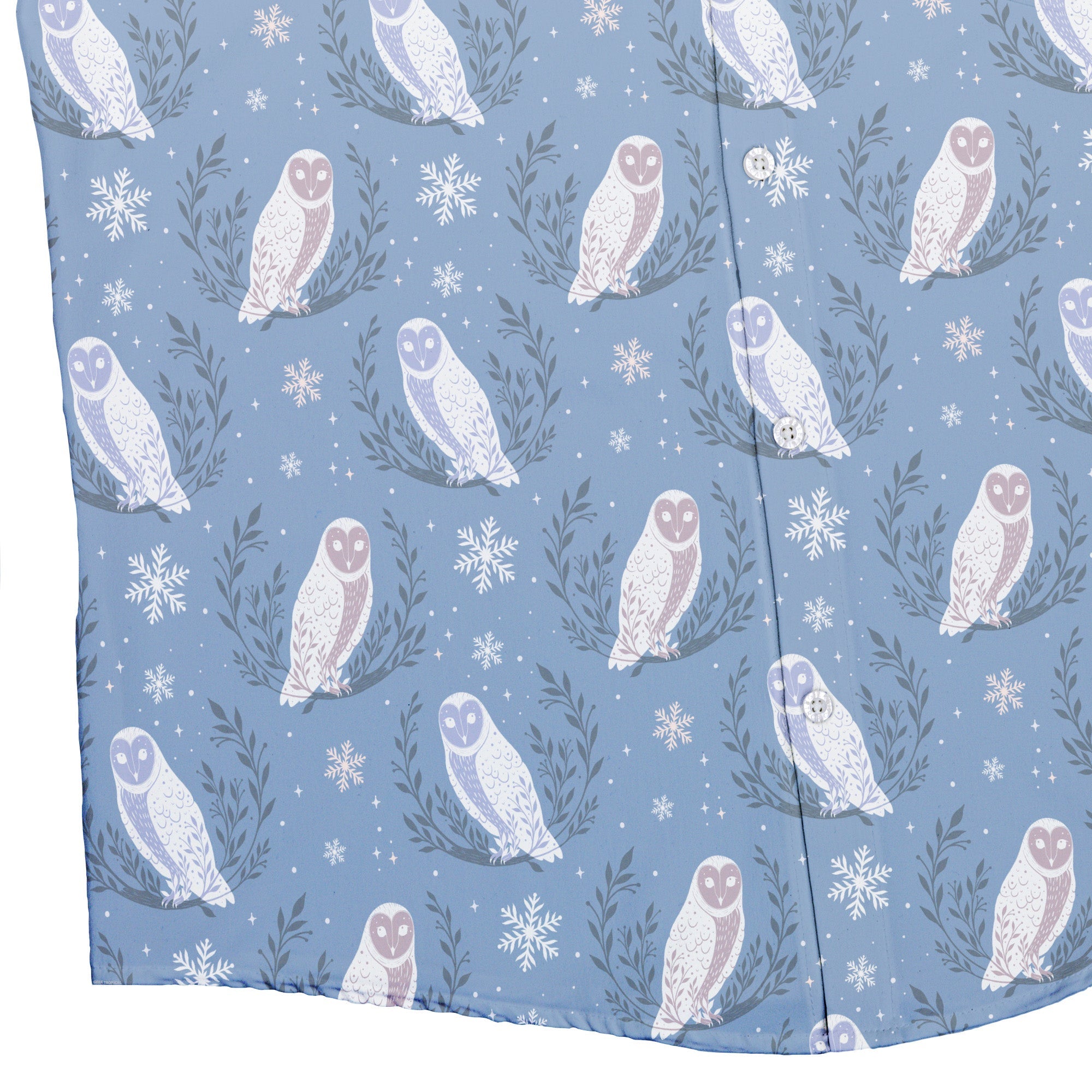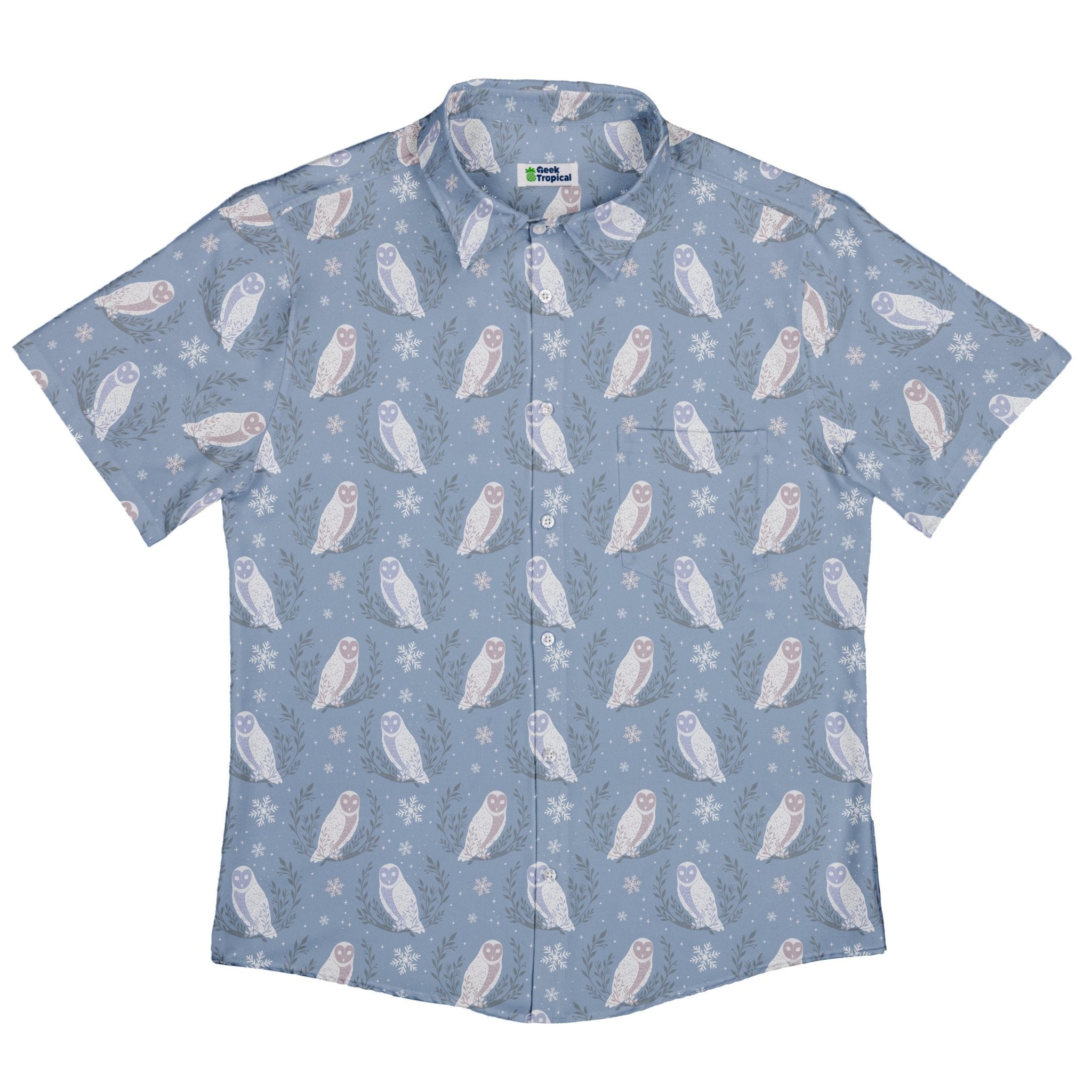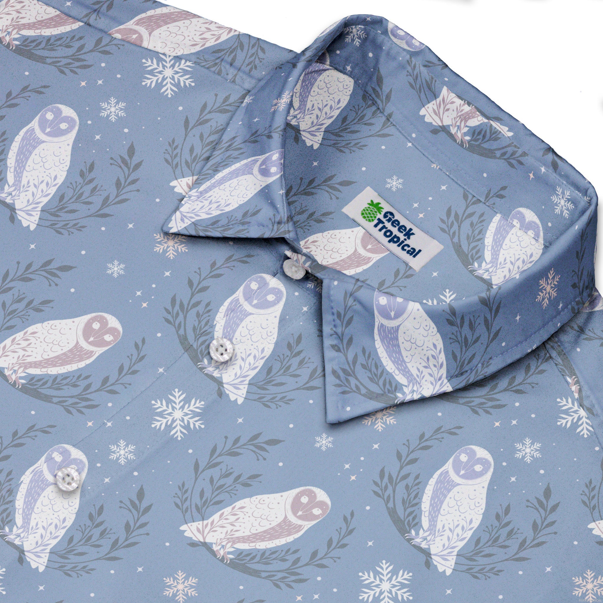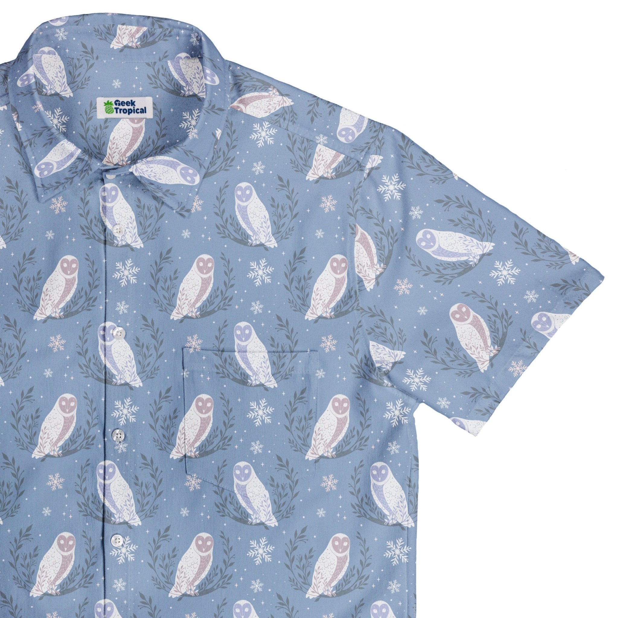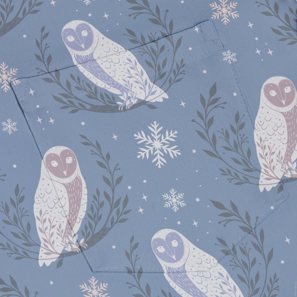 Meet the Snow Owl Moon Button Up Shirt, a winter-night daydream for your torso. Illustrated snowy owls float between pale moons and winter botanicals, with evergreen vibes that nod to the holidays without going full novelty. Designed by Episodic, the artwork aligns cleanly across the placket and optional pocket. Soft, light, and con-ready, it’s printed with eco-conscious inks so your look—and the planet—stay cool.