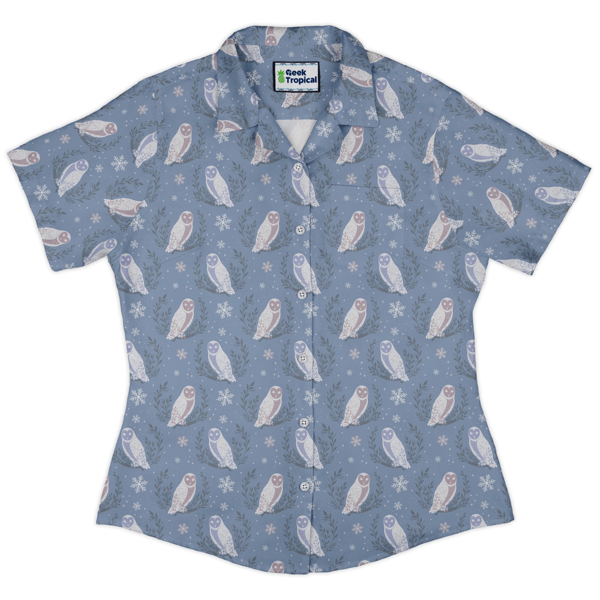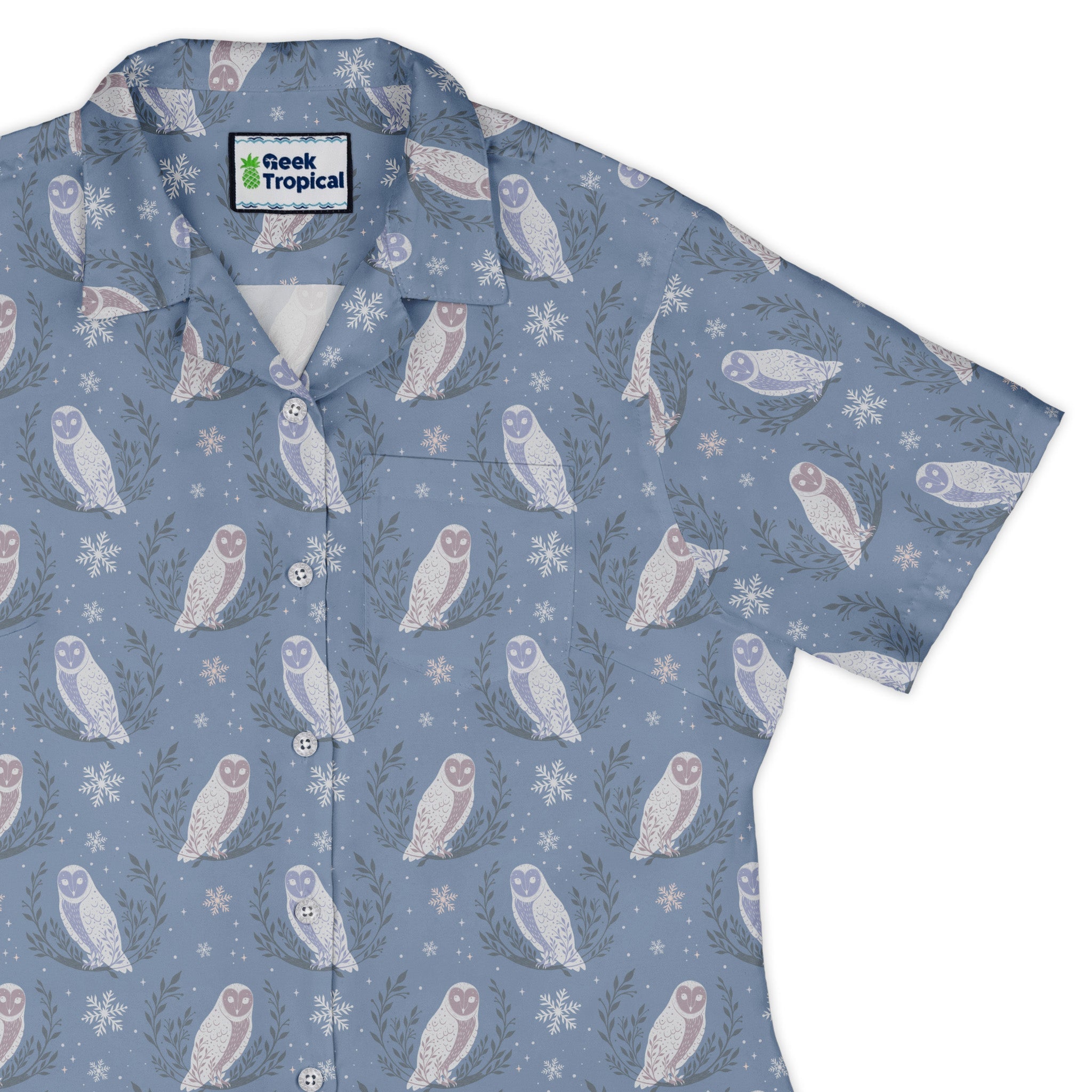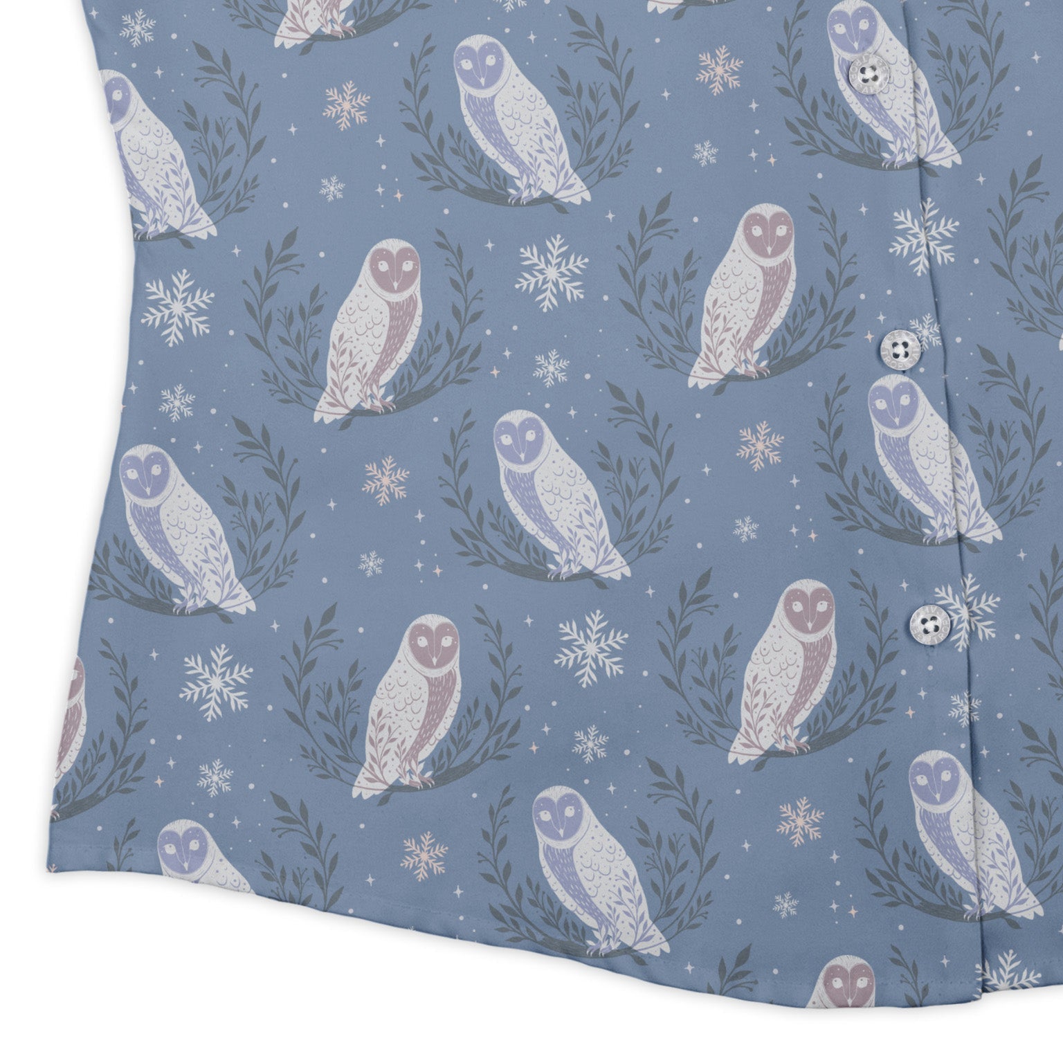 The Snow Owl Moon Curvy Button Up Shirt turns wintry magic into an everyday power move. A snow-white owl meets a luminous moon on a deep night backdrop, with delicate botanicals and a starry scatter, aligned across the placket and pocket. Tailored for curves with a breezy, untuck-friendly hem and sleeves you can style your way. Festive yet timeless, it leans into lunar lore, not kitsch. Designed by Episodic, printed with low-impact inks, and every purchase supports licensed artists.