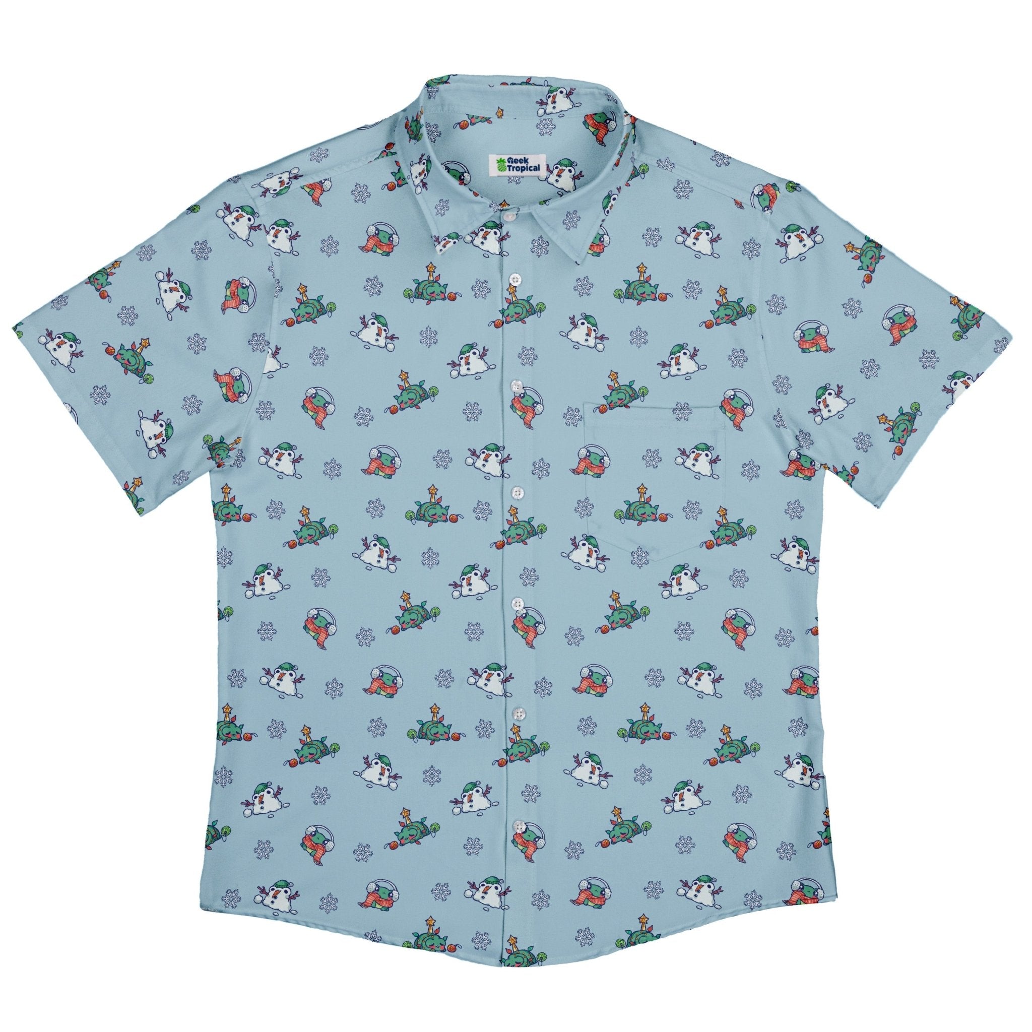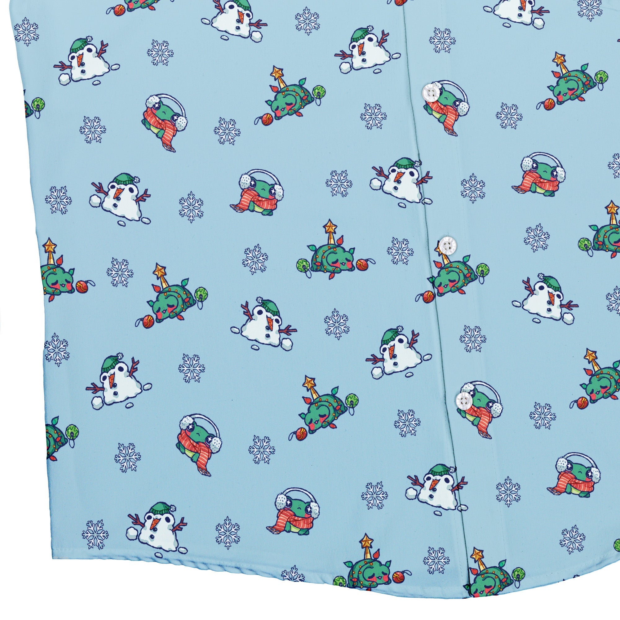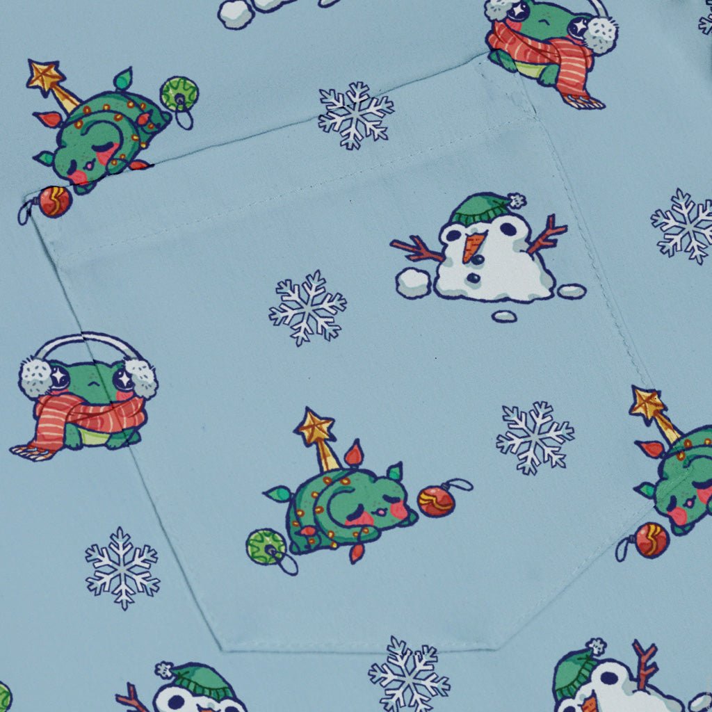 Snowing Frogs Button Up Shirt turns the winter forecast into geeky delight: tiny frogs drifting like snowfall, scattered in lively clusters that pop on a clean, wintry ground. Designed by Ardi Tong, the artwork lines up neatly across the placket and optional pocket for a satisfyingly seamless look. Equal parts holiday cheer and anime energy, it delivers a buttery-soft, breathable feel and eco-conscious inks for style that's playful and kind.