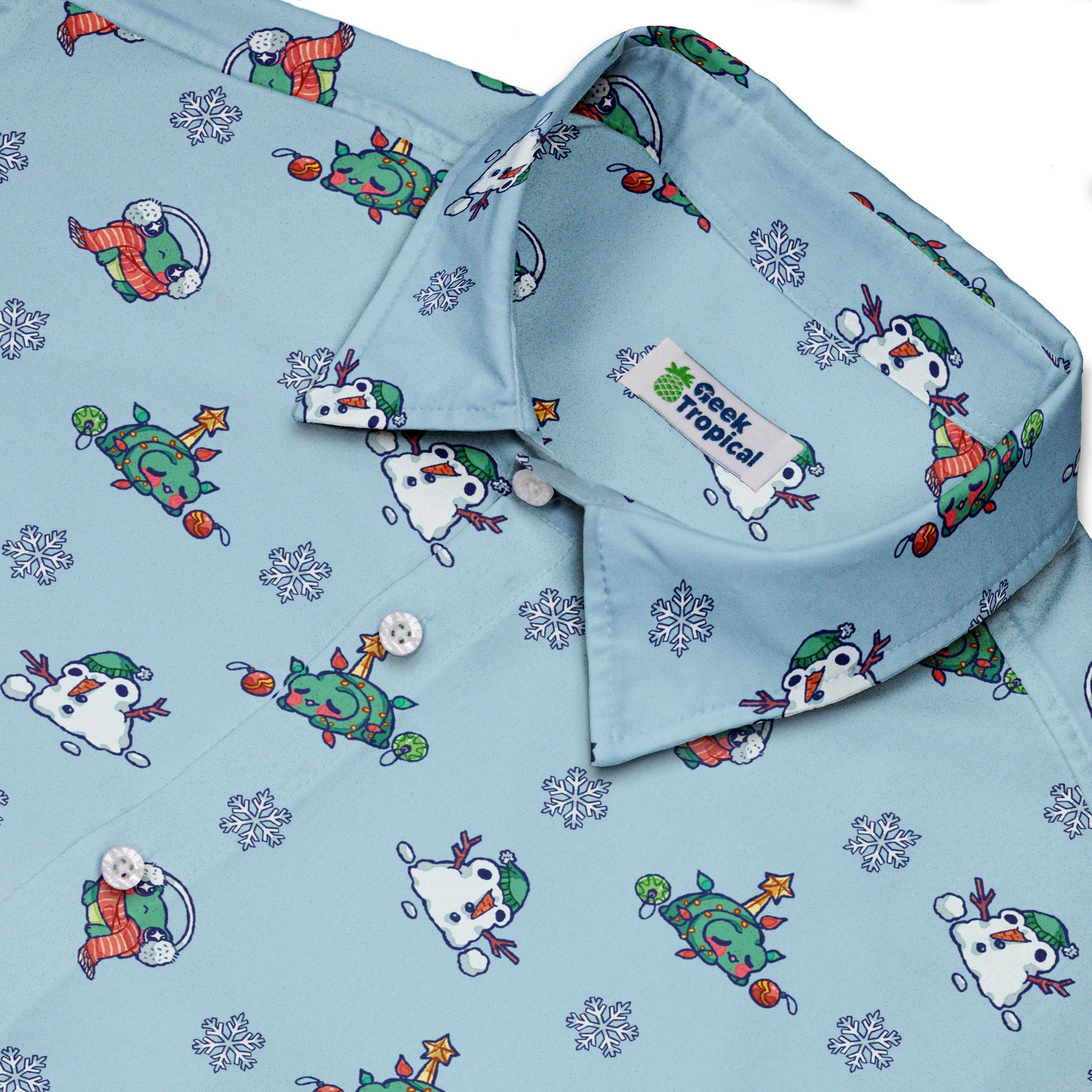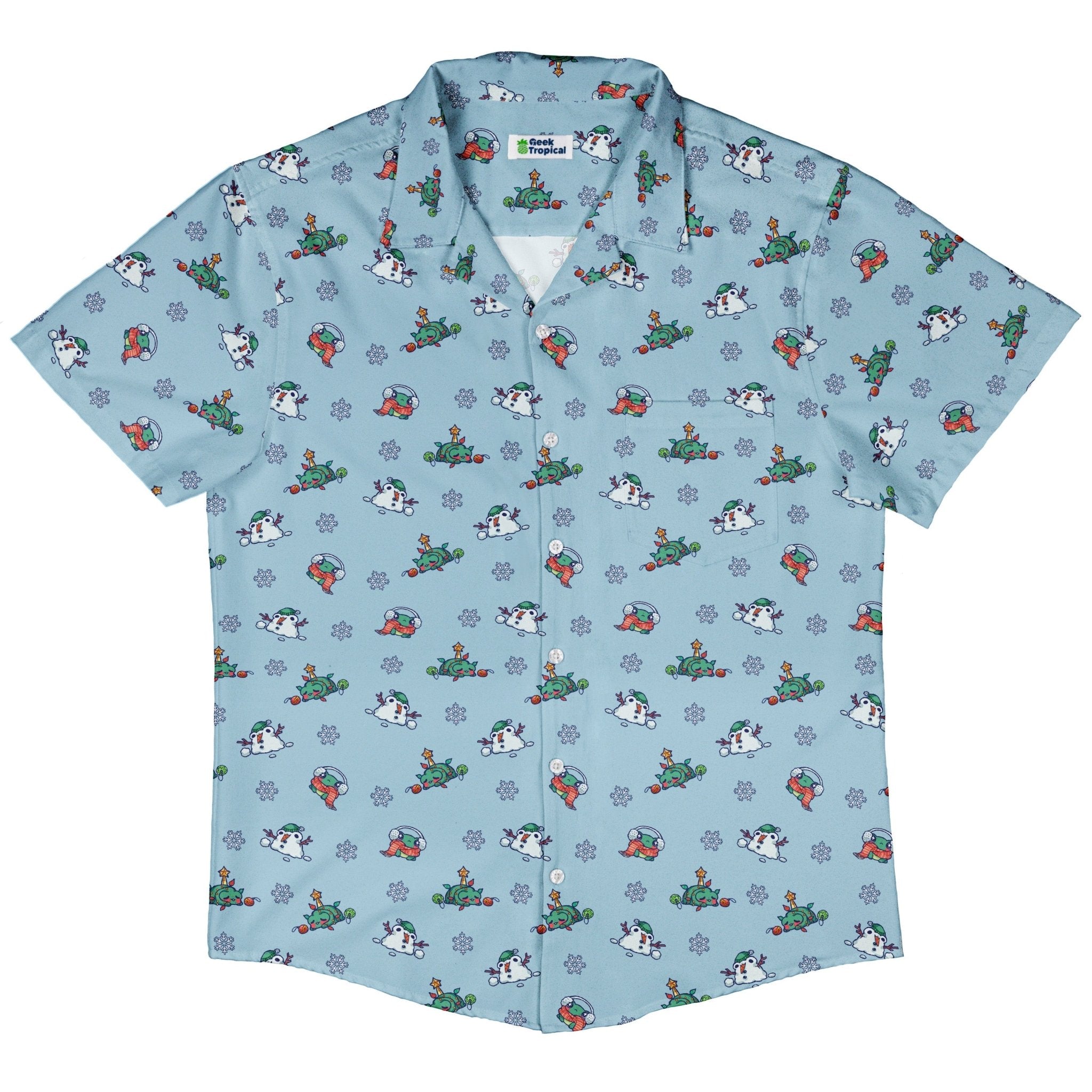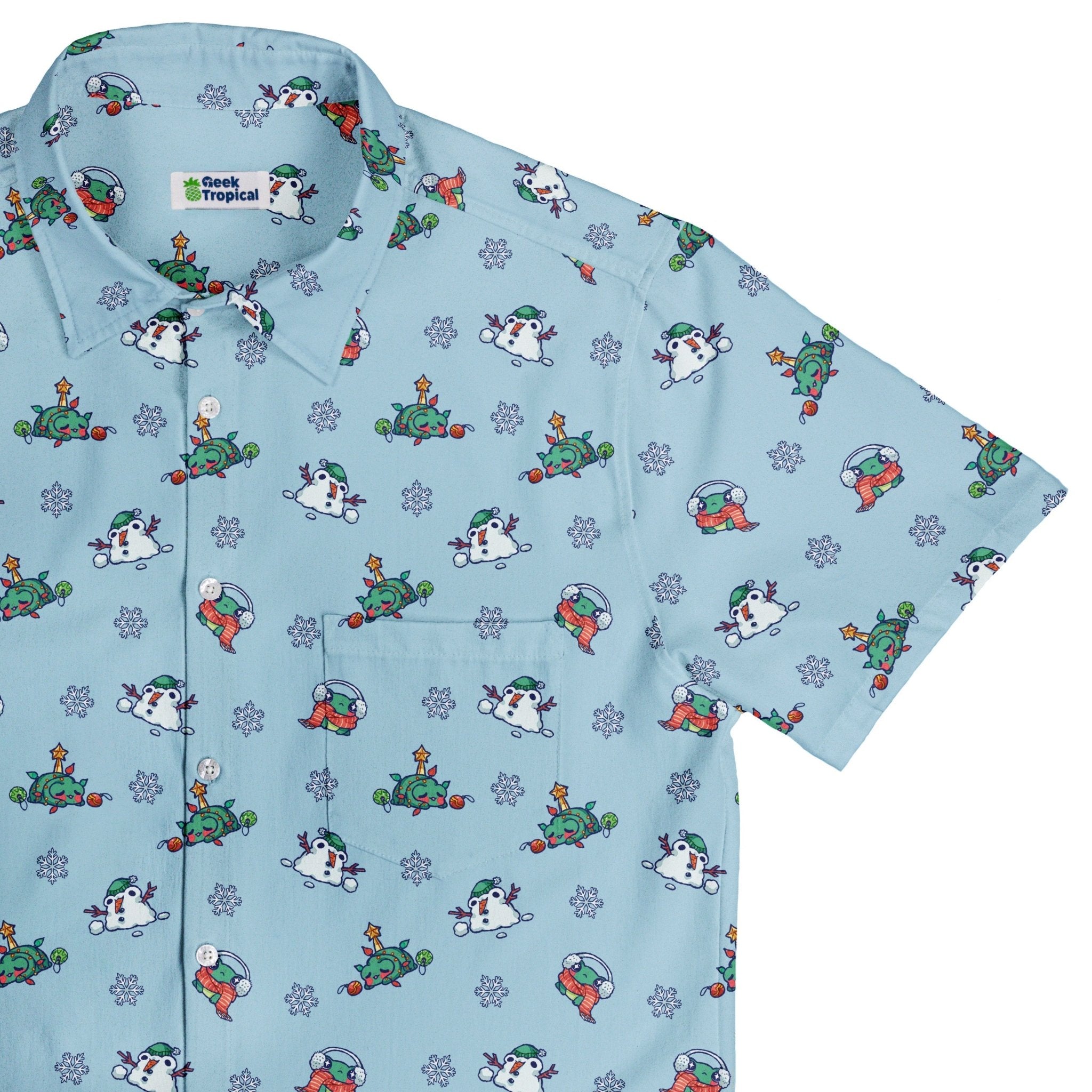 Snowing Frogs Button Up Shirt turns the winter forecast into geeky delight: tiny frogs drifting like snowfall, scattered in lively clusters that pop on a clean, wintry ground. Designed by Ardi Tong, the artwork lines up neatly across the placket and optional pocket for a satisfyingly seamless look. Equal parts holiday cheer and anime energy, it delivers a buttery-soft, breathable feel and eco-conscious inks for style that's playful and kind.